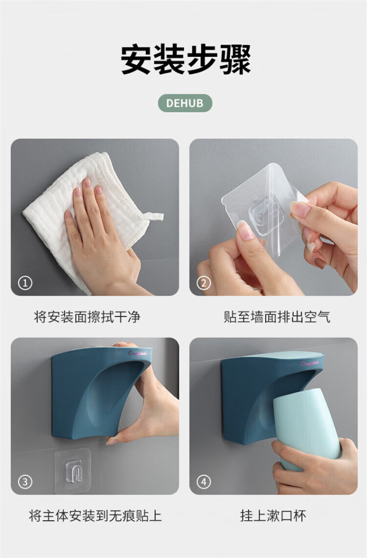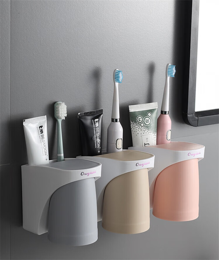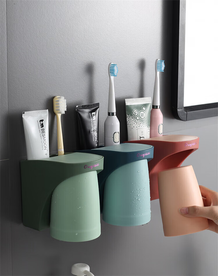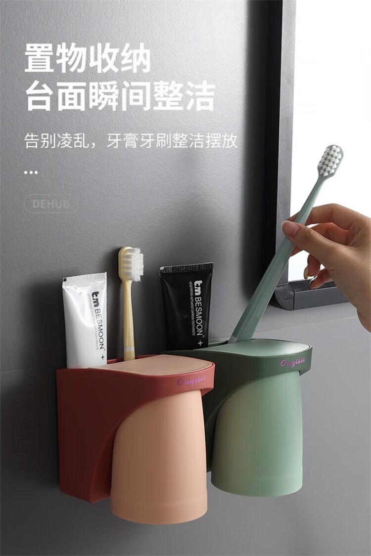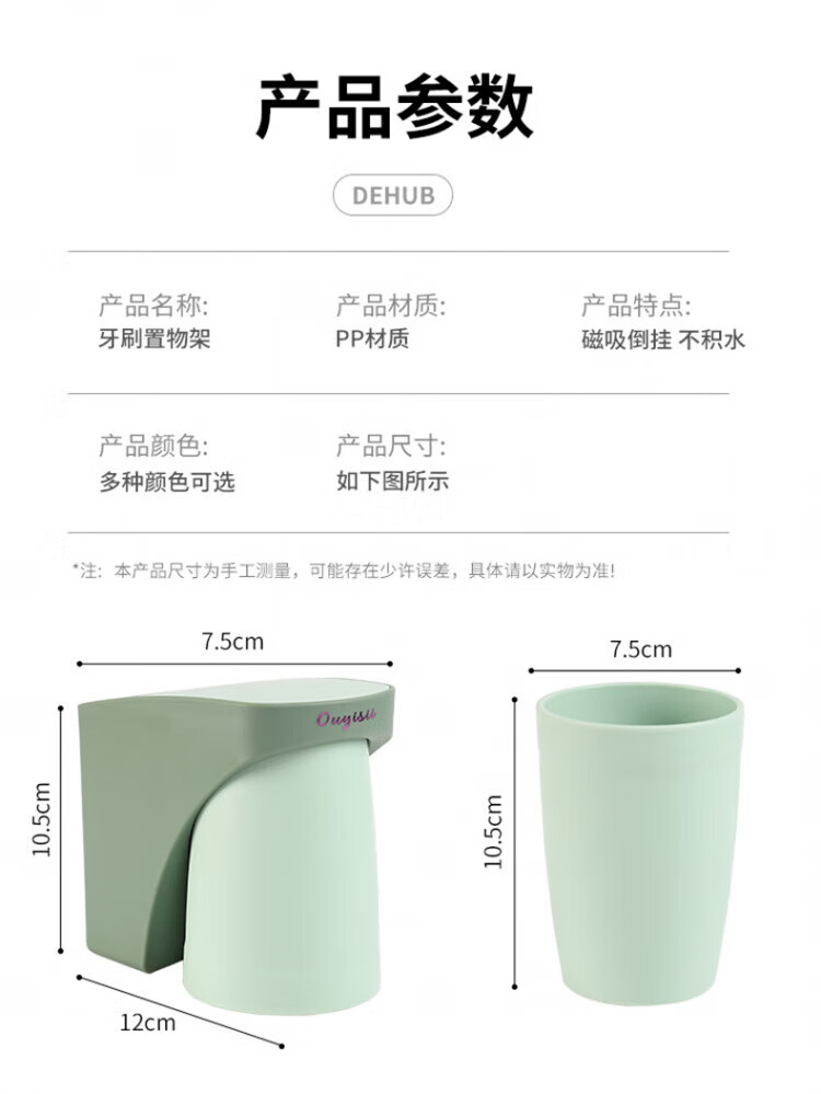 WCZ德国高端磁吸式牙刷置物架卫生间免打孔壁挂墙式牙杯漱口杯牙具收 两个装蓝色+绿色