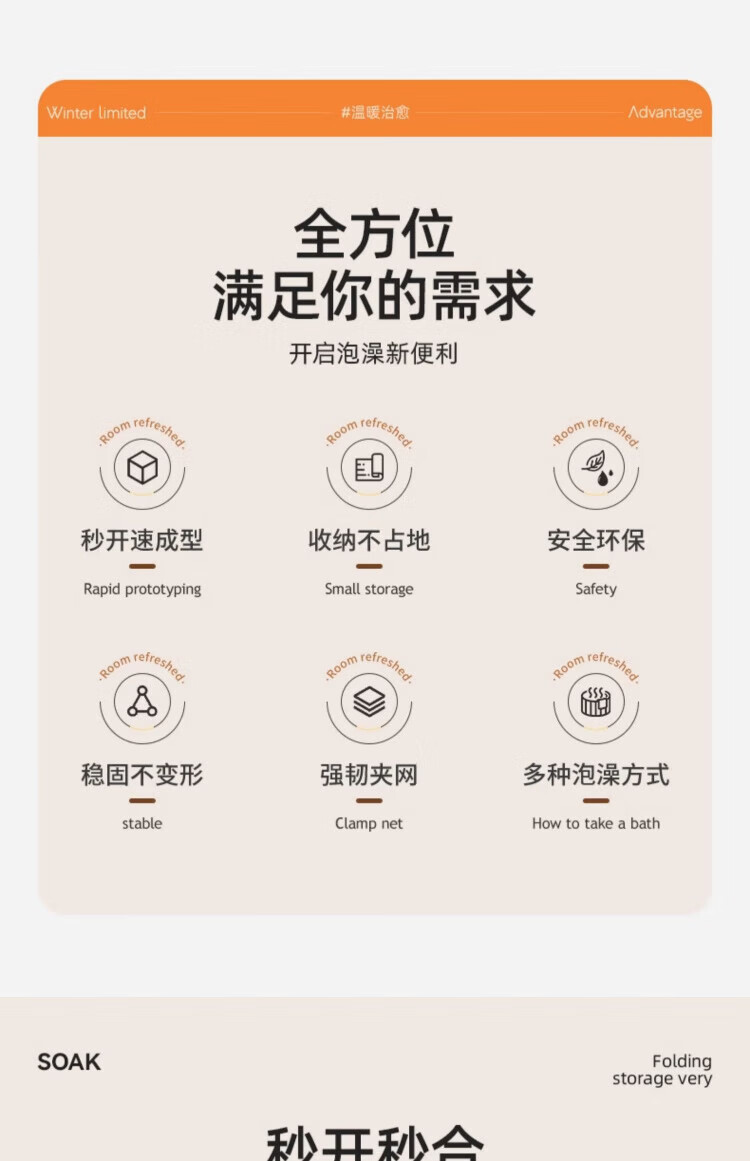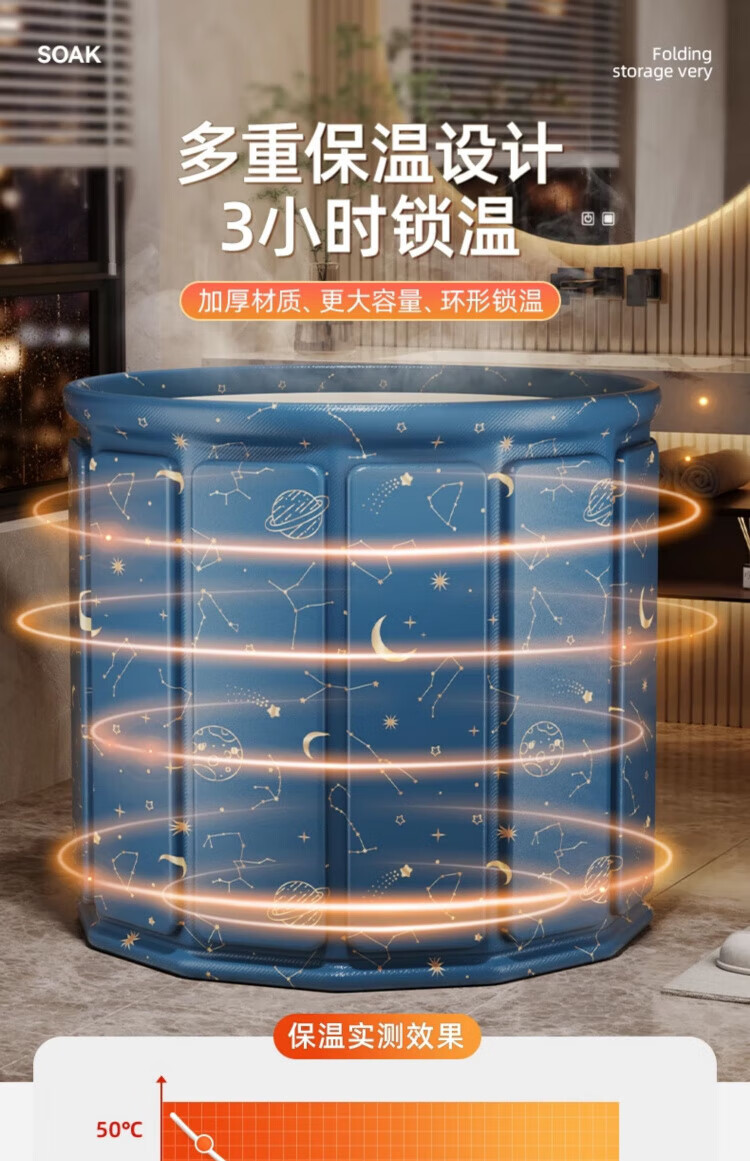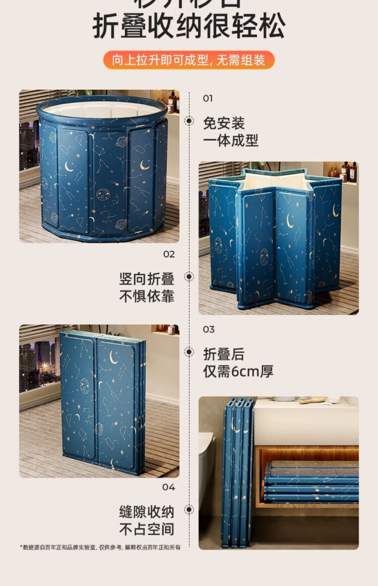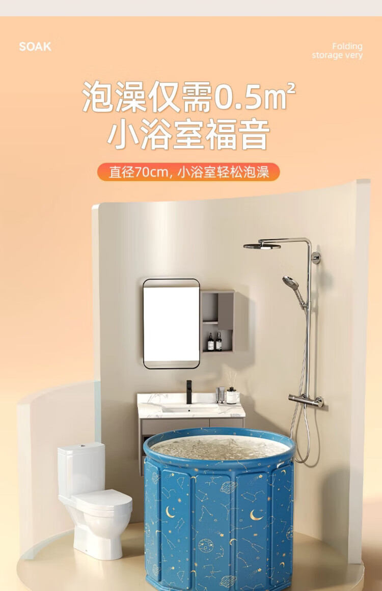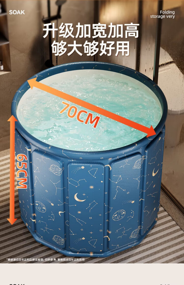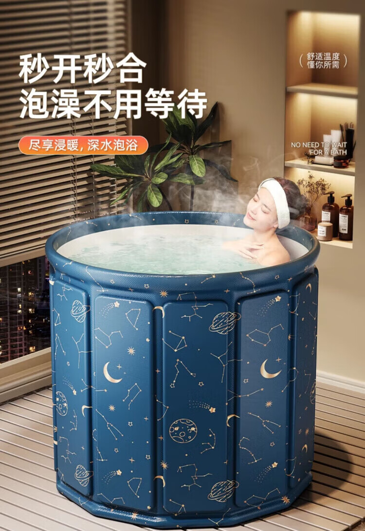 WCZ德国泡澡桶大人折叠儿童洗澡桶冬天成人全身浴桶家用沐浴桶浴缸坐 免安装鎏金星空70cm