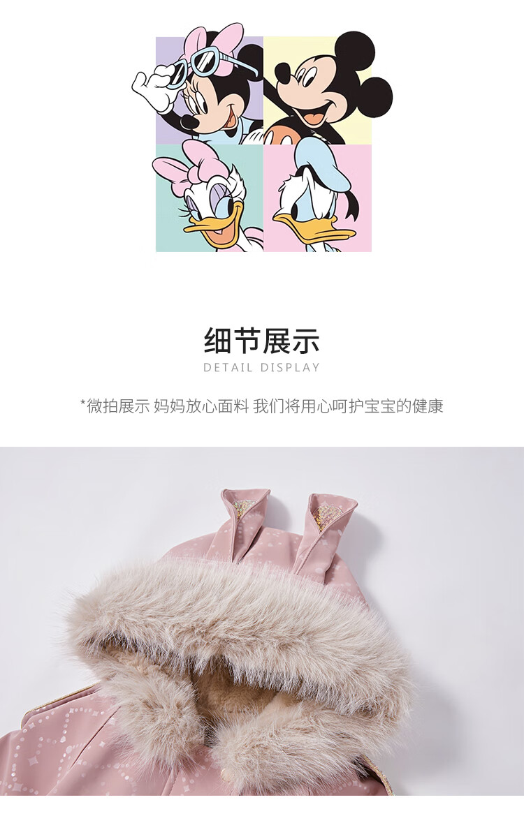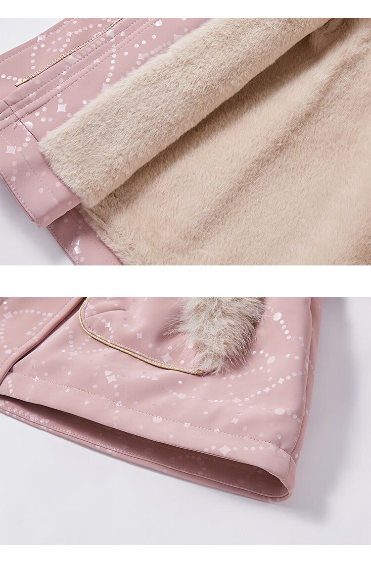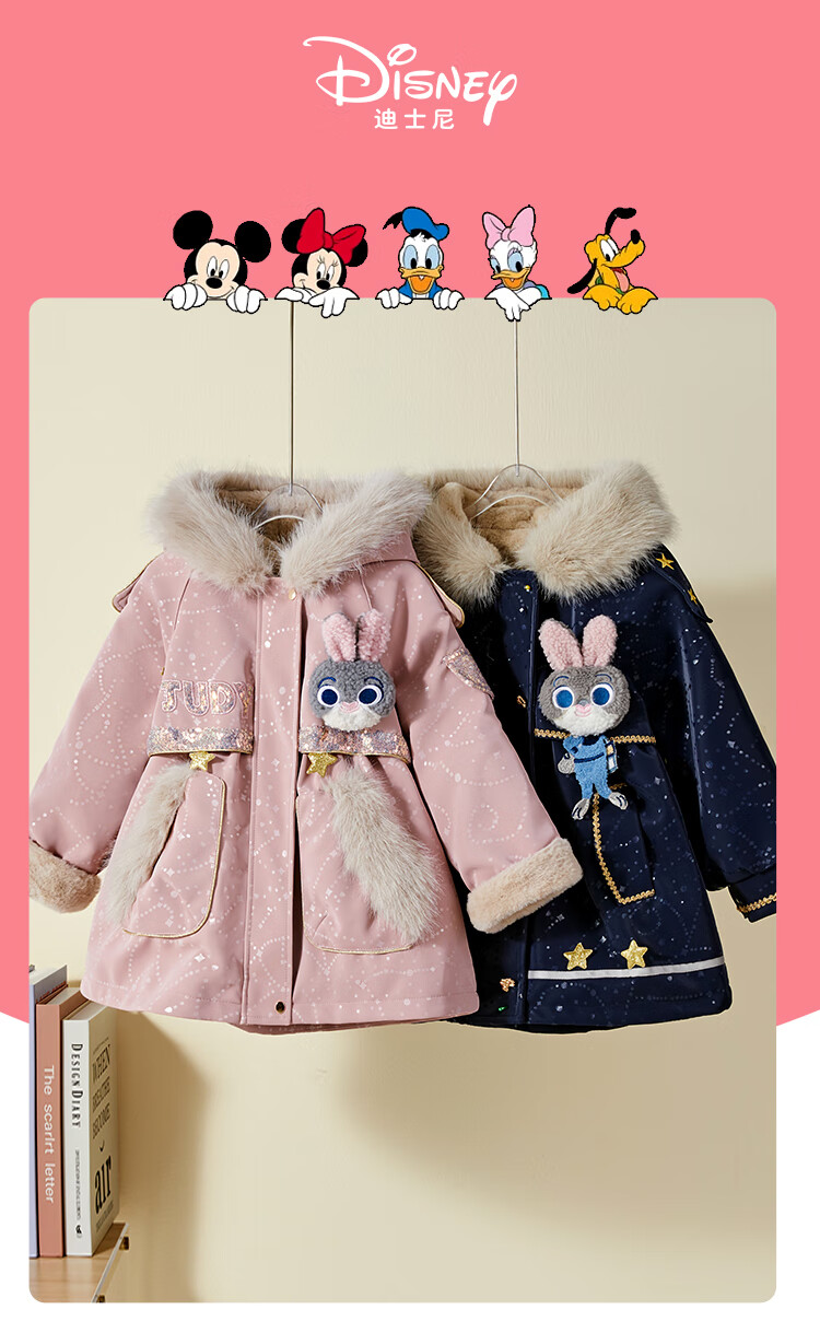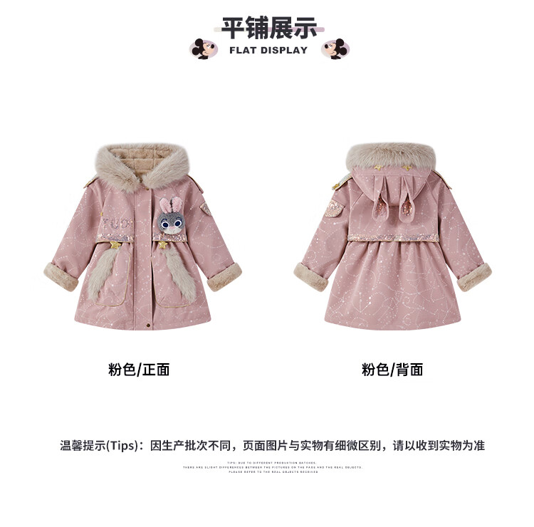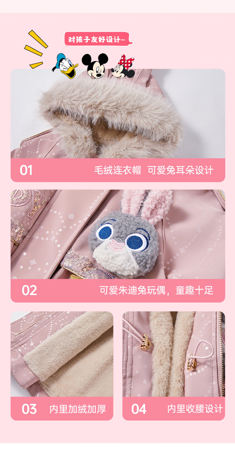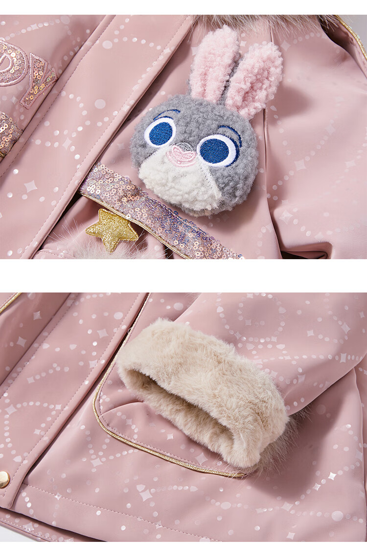 迪士尼(Disney)兔子警官女童加绒加厚连帽外套2025冬季新款收腰保暖加厚派克服 粉色 140