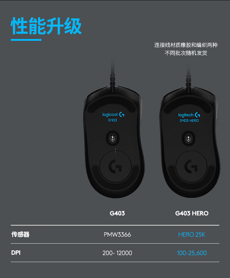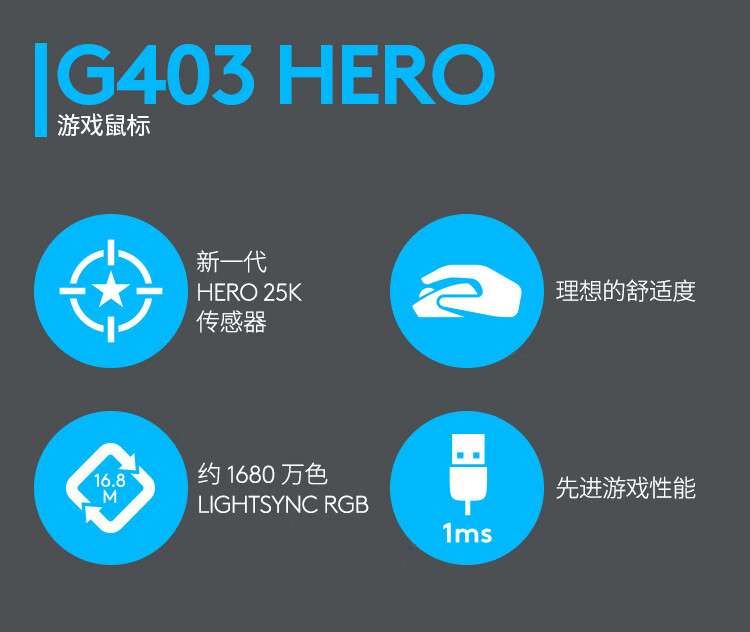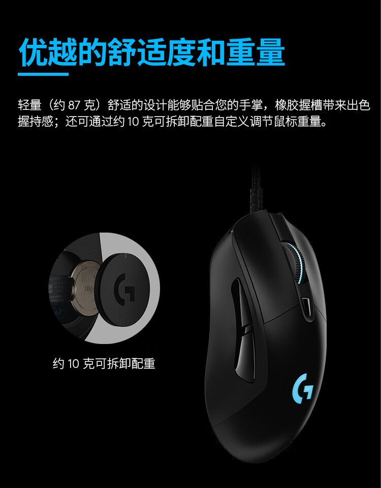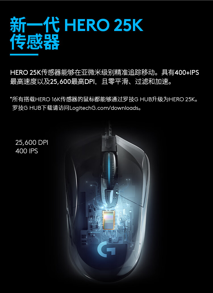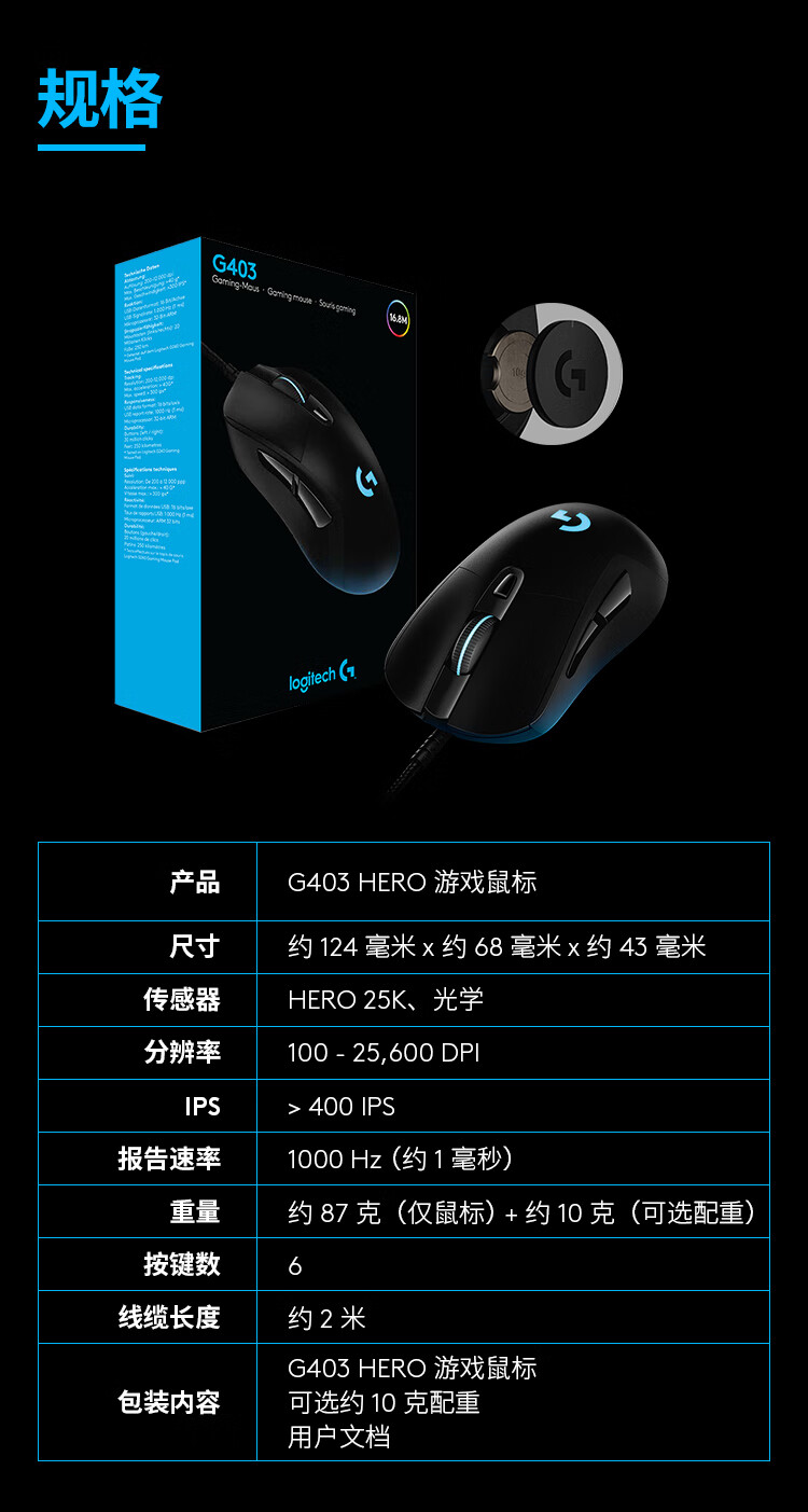罗技G403HERO游戏鼠标RGB有线鼠标电竞人体工学机械配重竞技FPS吃鸡lol宏cf送男生男友礼物 G403HERO升级版