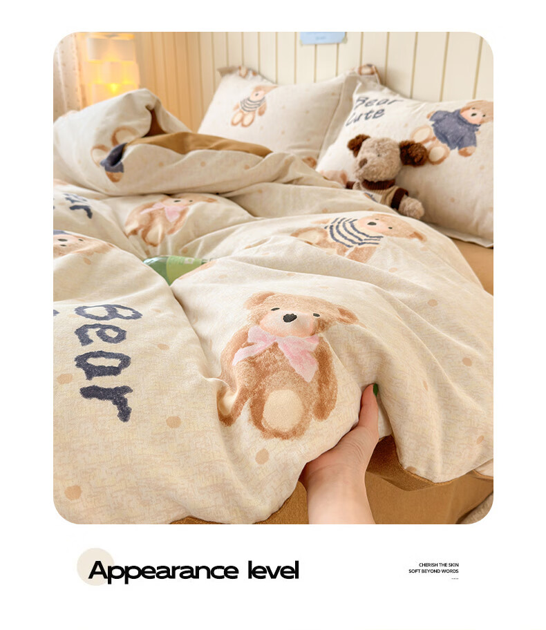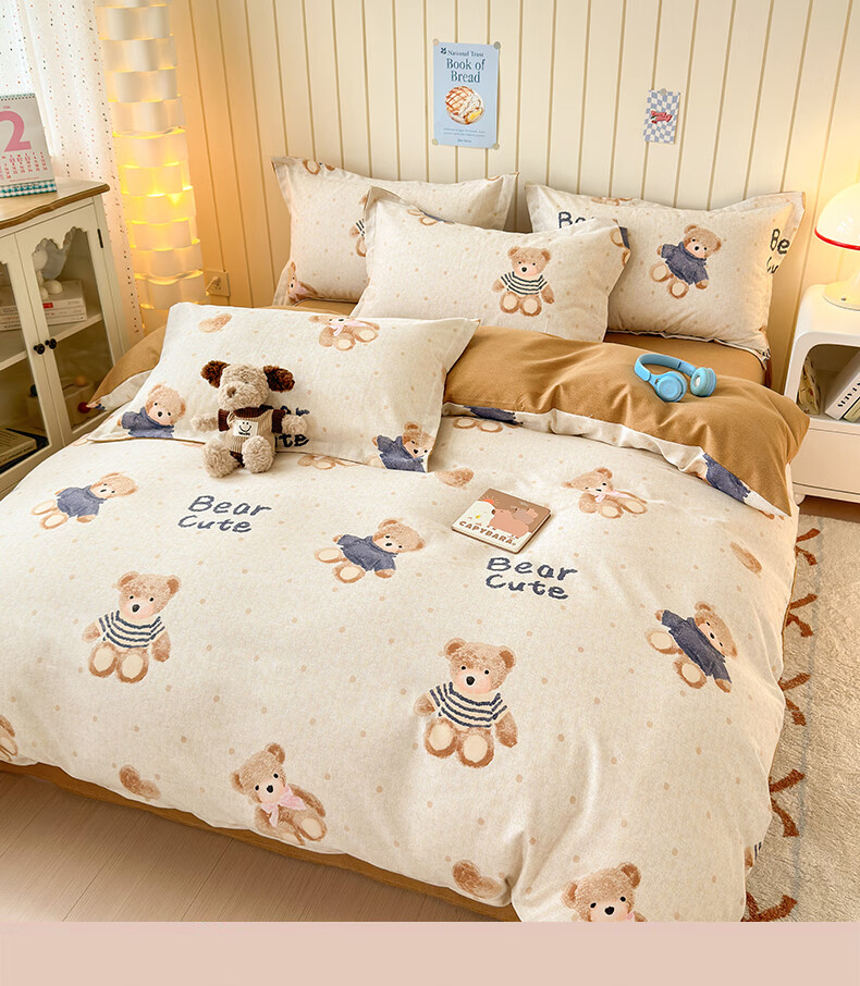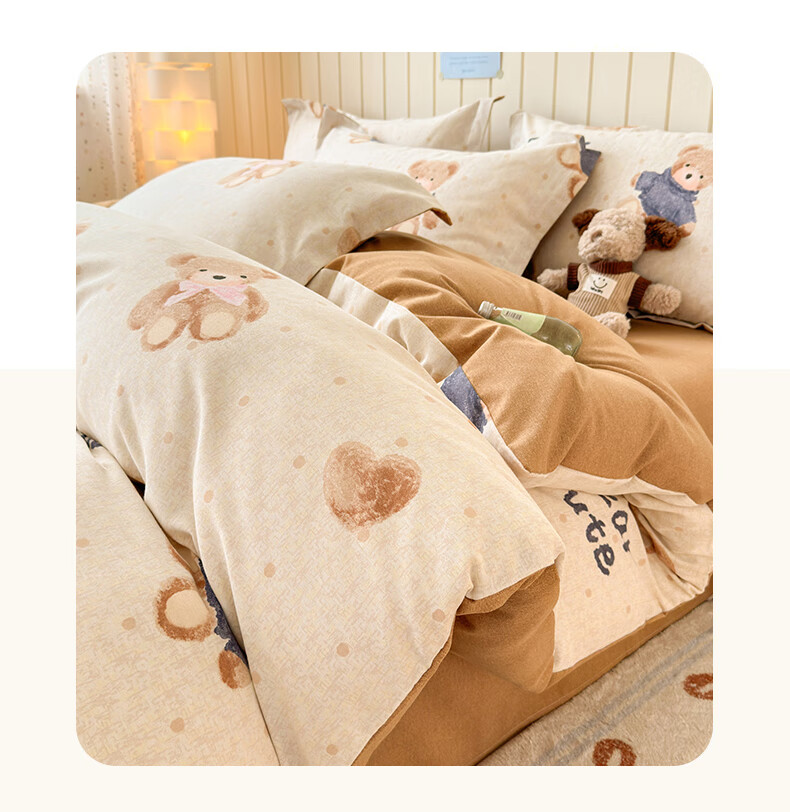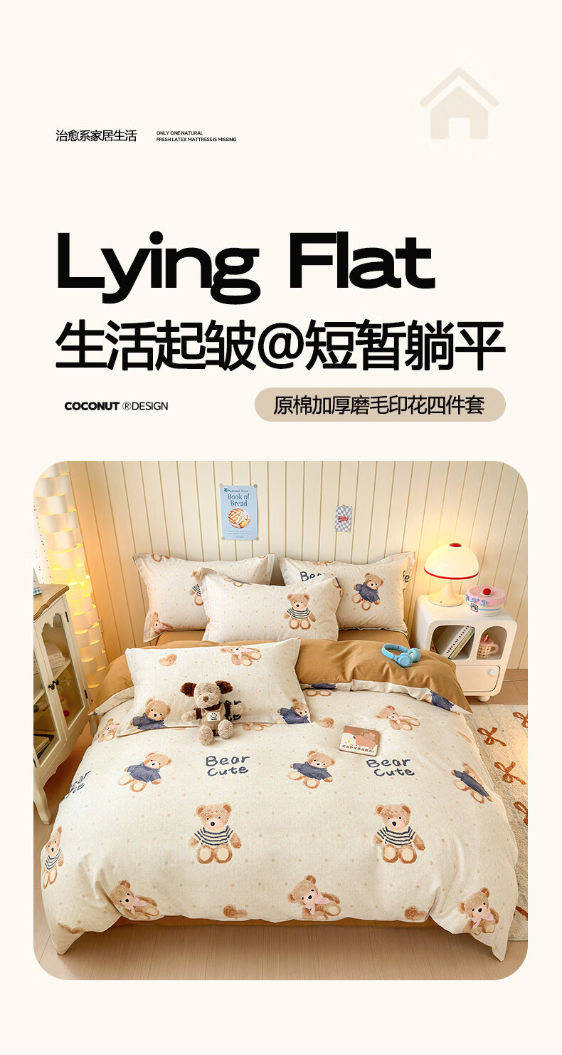 猫人卡通磨毛床上四件套秋冬床单被套2025新款非全棉纯棉宿舍床品 威斯丁【原棉磨毛面料亲肤裸睡】 床单款 1.8m床四件套【适200*230cm被芯】