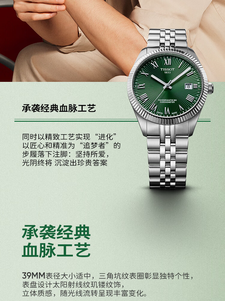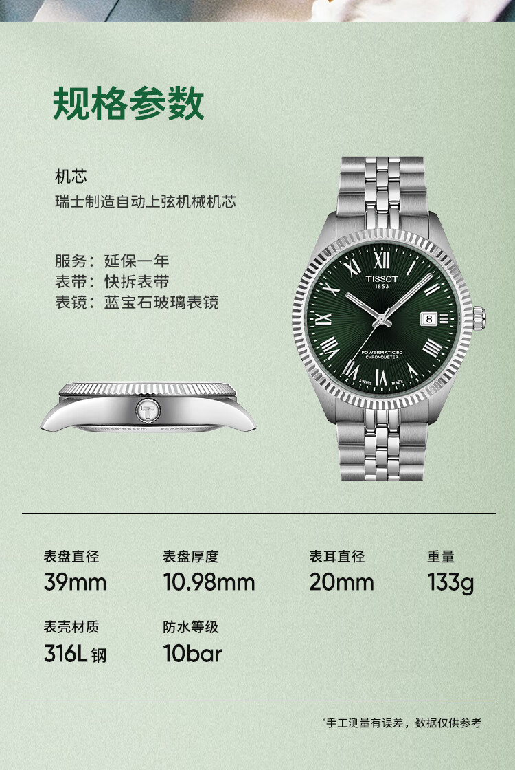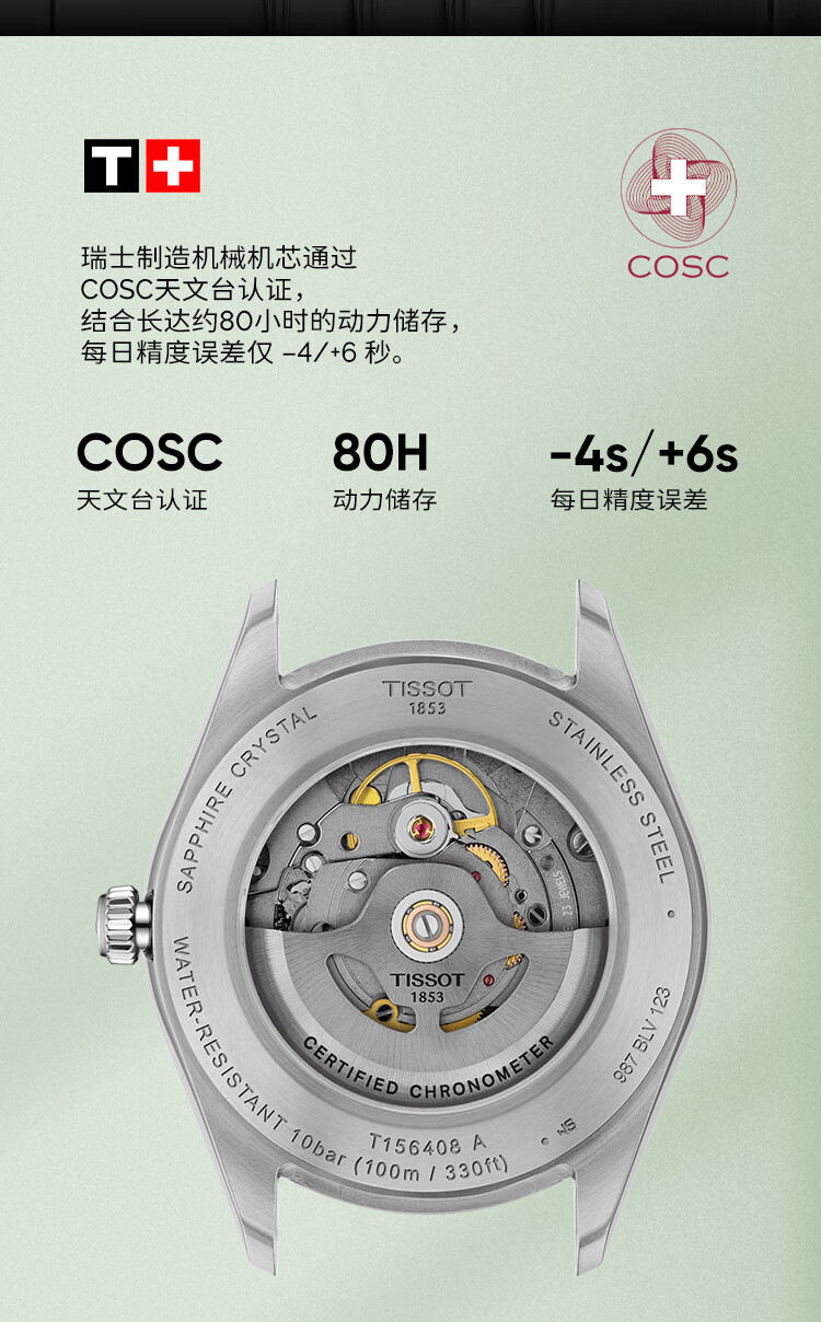 天梭(TISSOT)手表 全新宝环系列龚俊同款男表 瑞士机械男士钢带腕表商务表