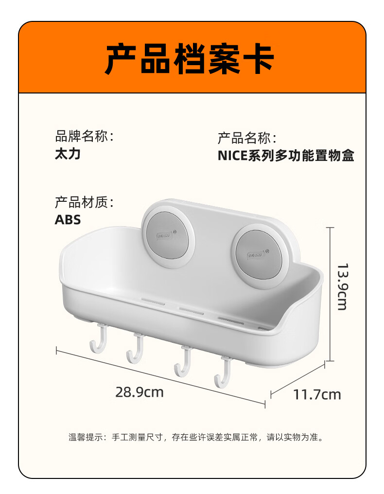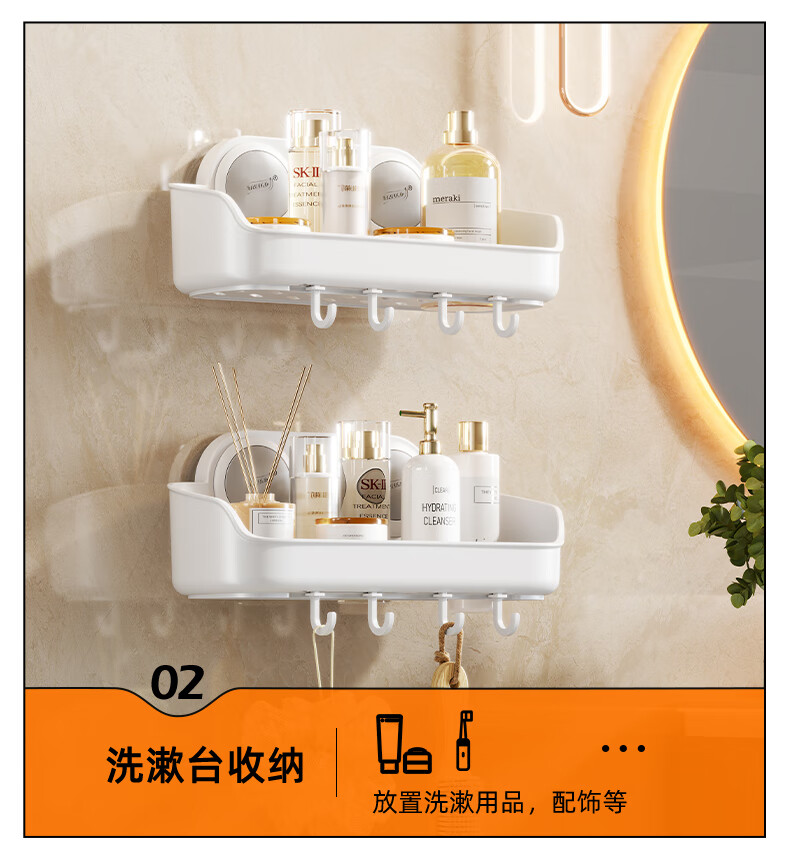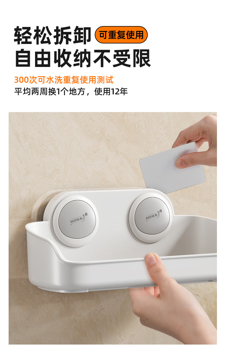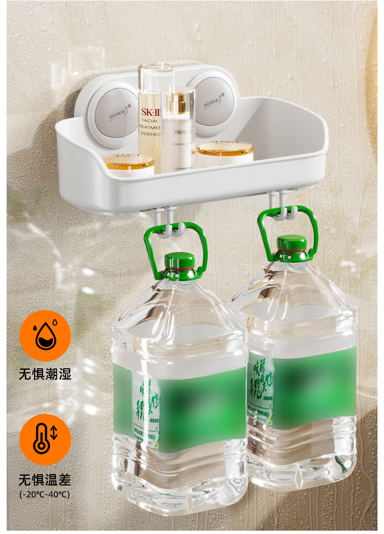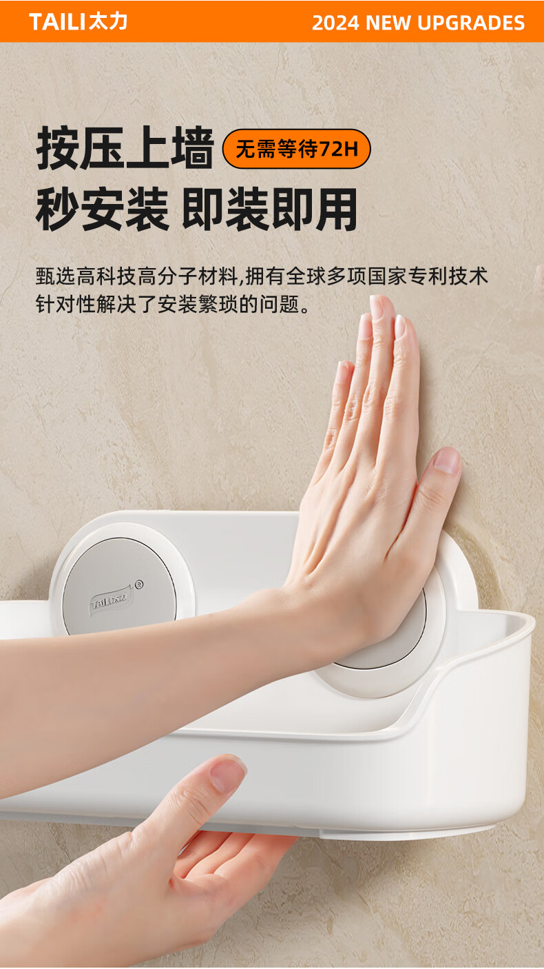 太力吸盘置物架厕所免打孔卫生间厨房置物架壁挂马桶上方浴室置物架 置物架一个装