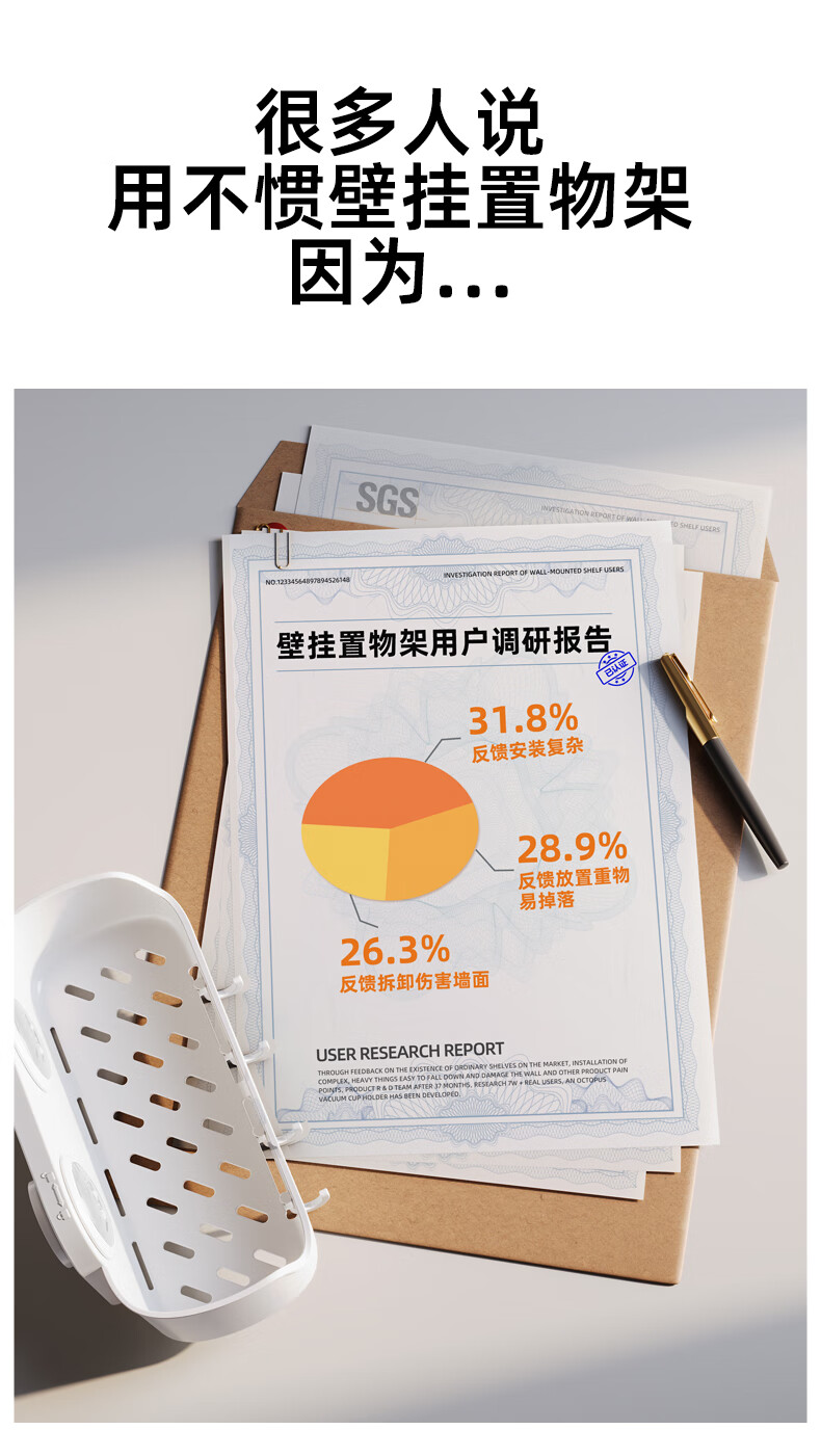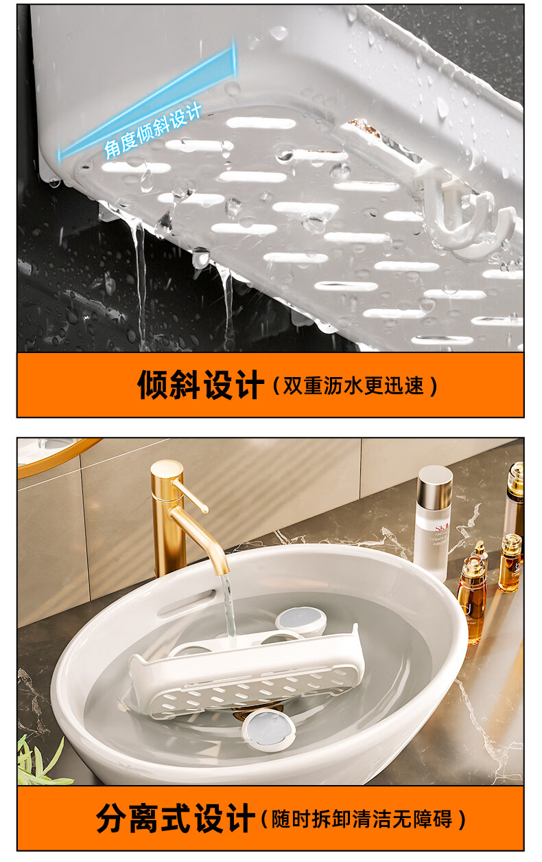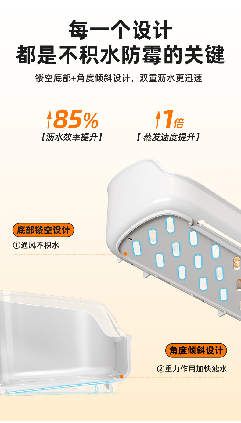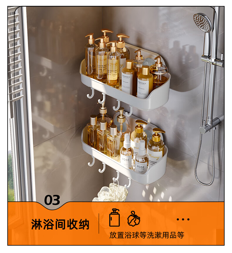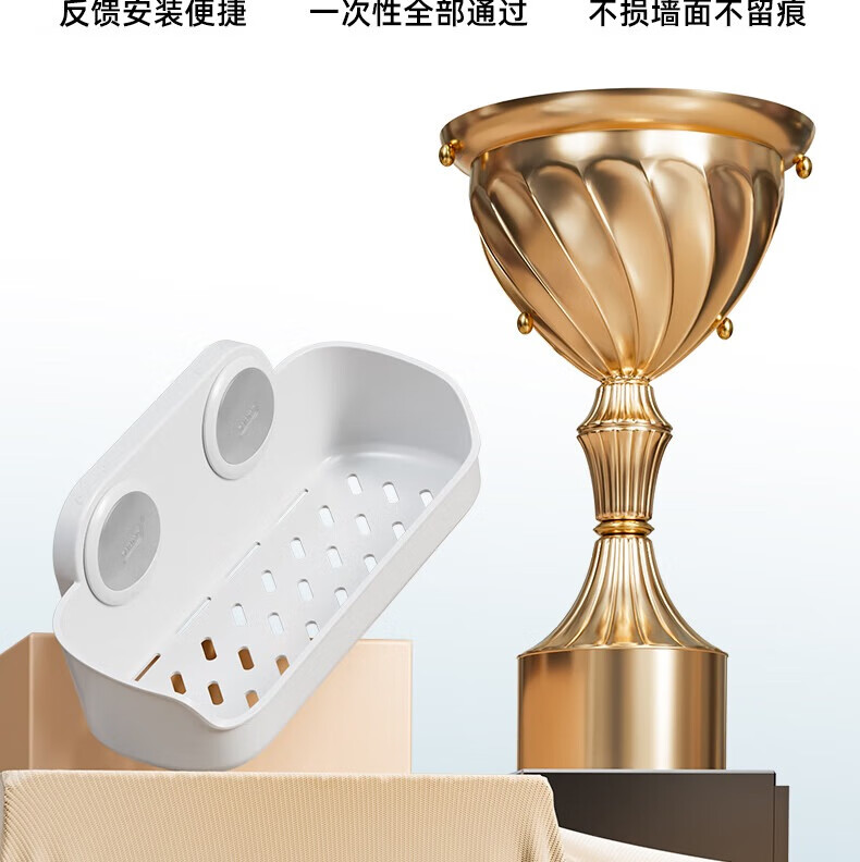 太力吸盘置物架厕所免打孔卫生间厨房置物架壁挂马桶上方浴室置物架 置物架一个装