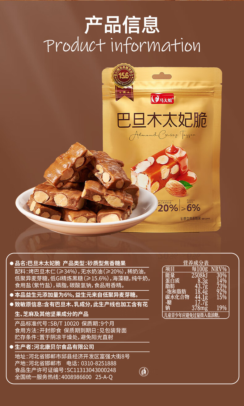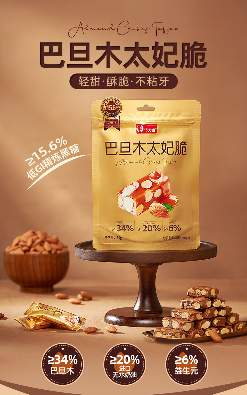 马大姐 糖果 巴旦木太妃糖 60g 万圣节儿童糖 捣蛋糖果 送礼物零食糖