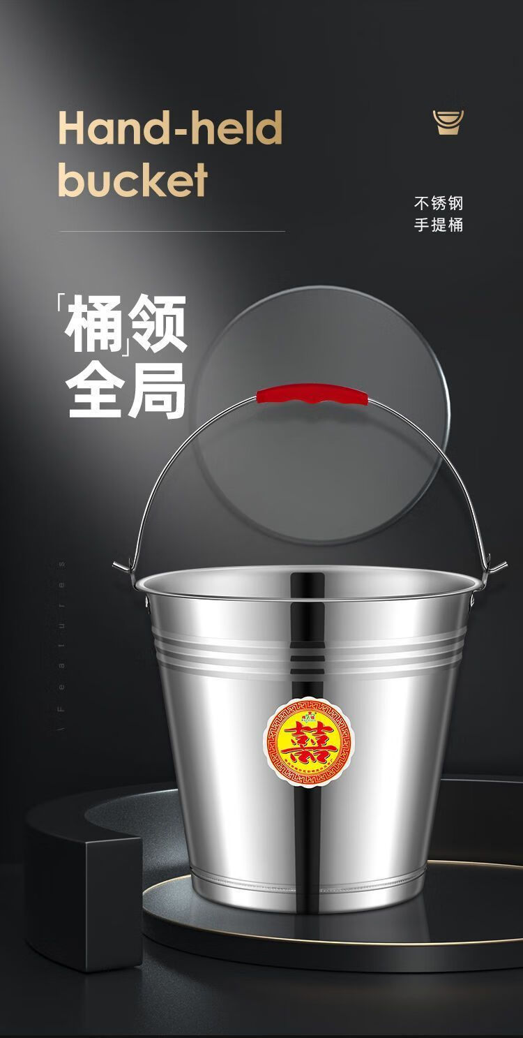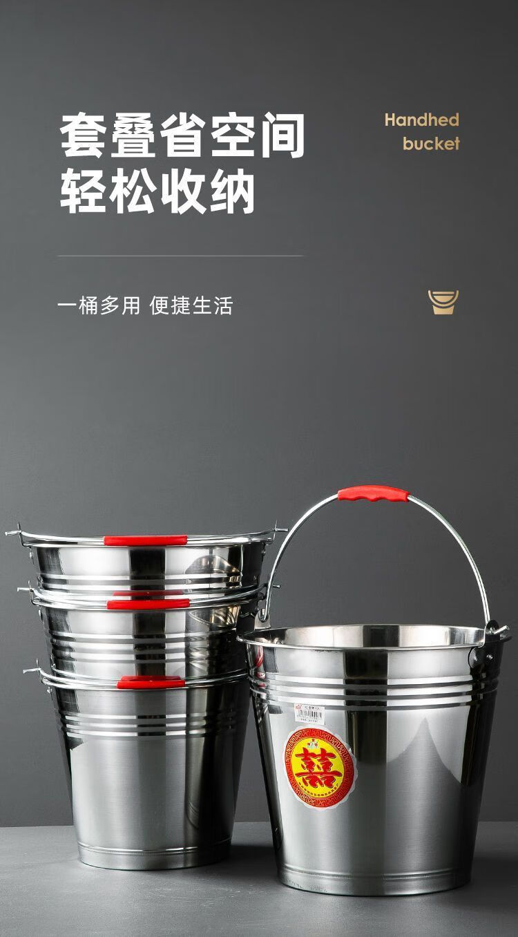 GIOIO特厚不锈钢水桶手提式大容量家用带盖提桶油桶储水酒店餐厅提水桶 316特厚不锈钢【提水桶】 超特厚20cm-4L(约6斤)