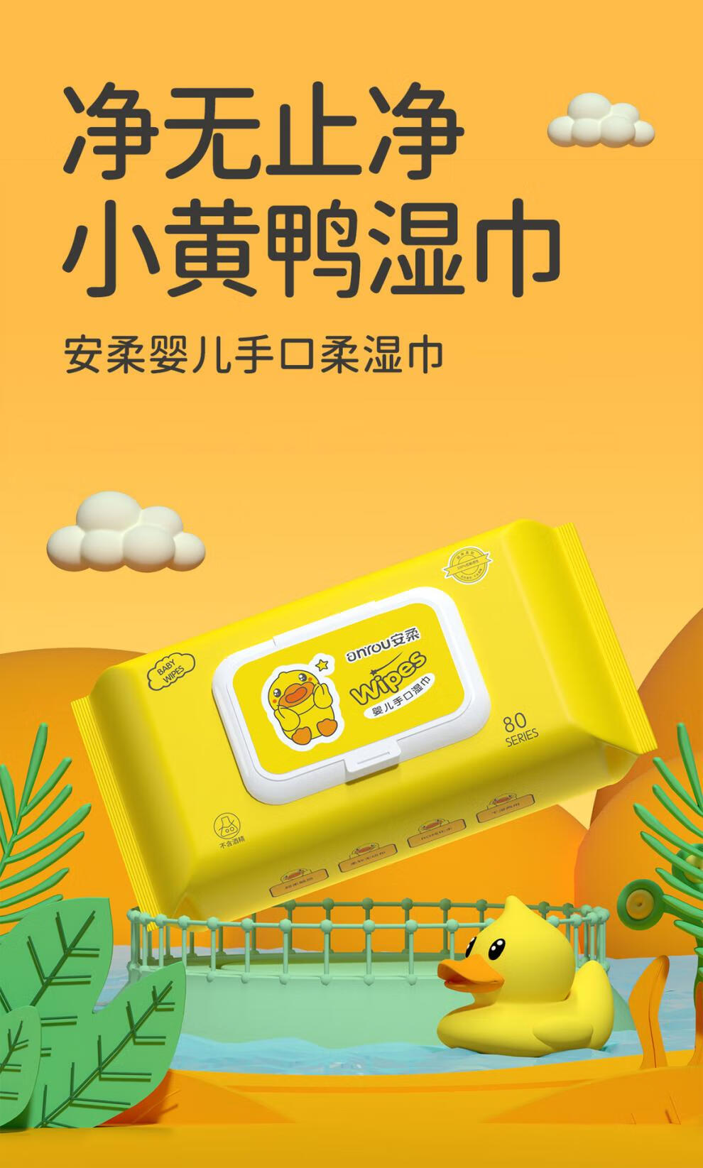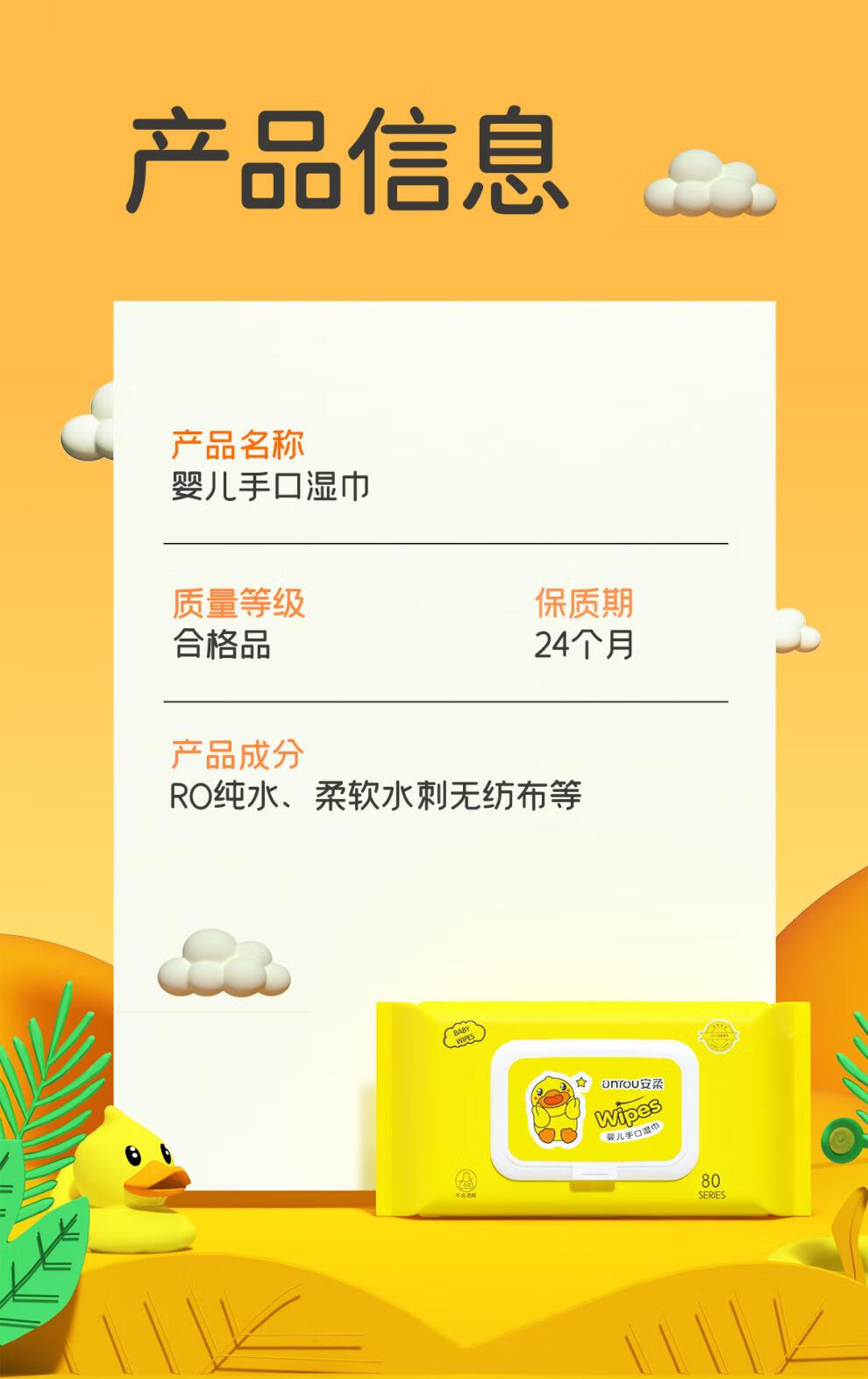 小黄鸭儿湿巾手口宝宝儿一次性湿纸巾家用男女洗脸擦手亲肤 小熊婴儿湿巾【10片]