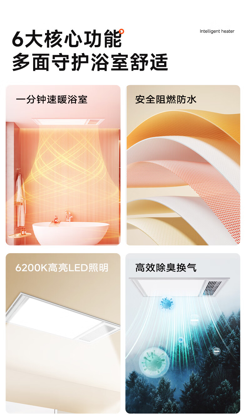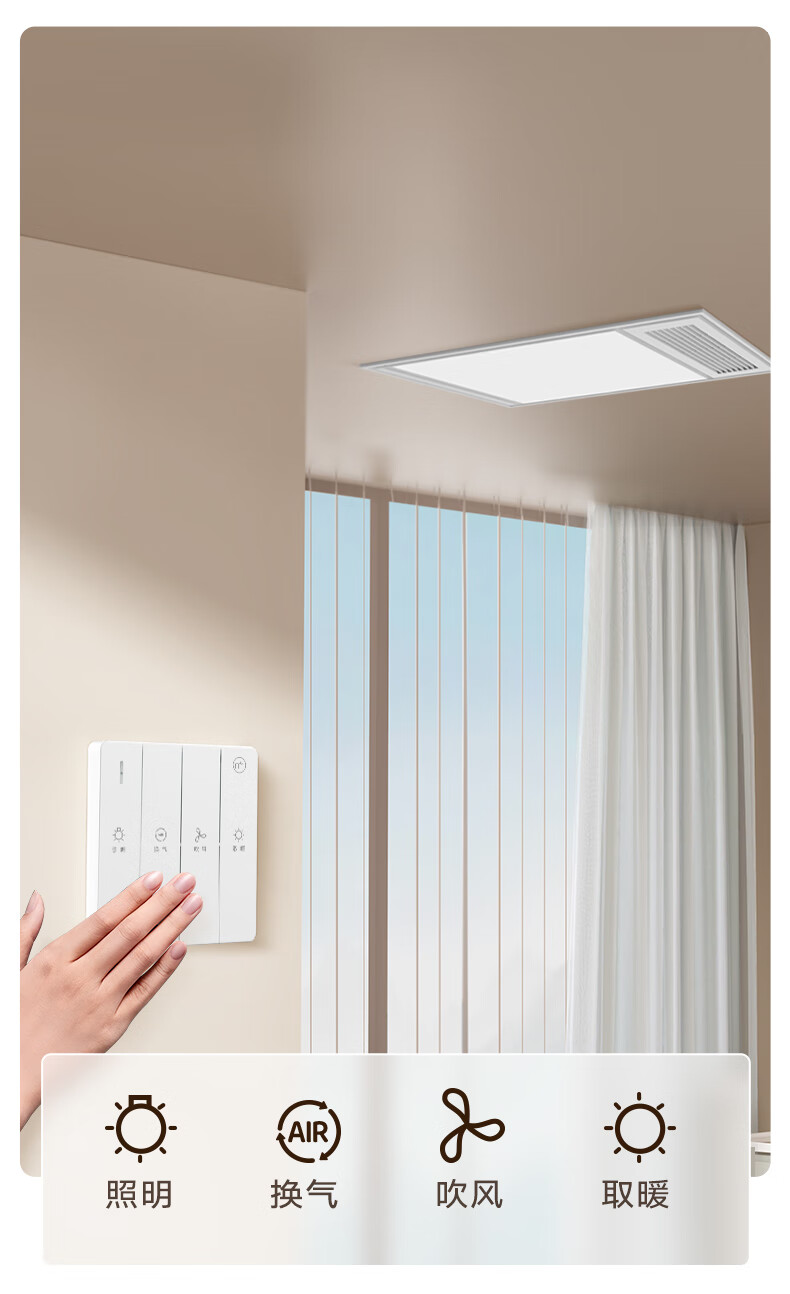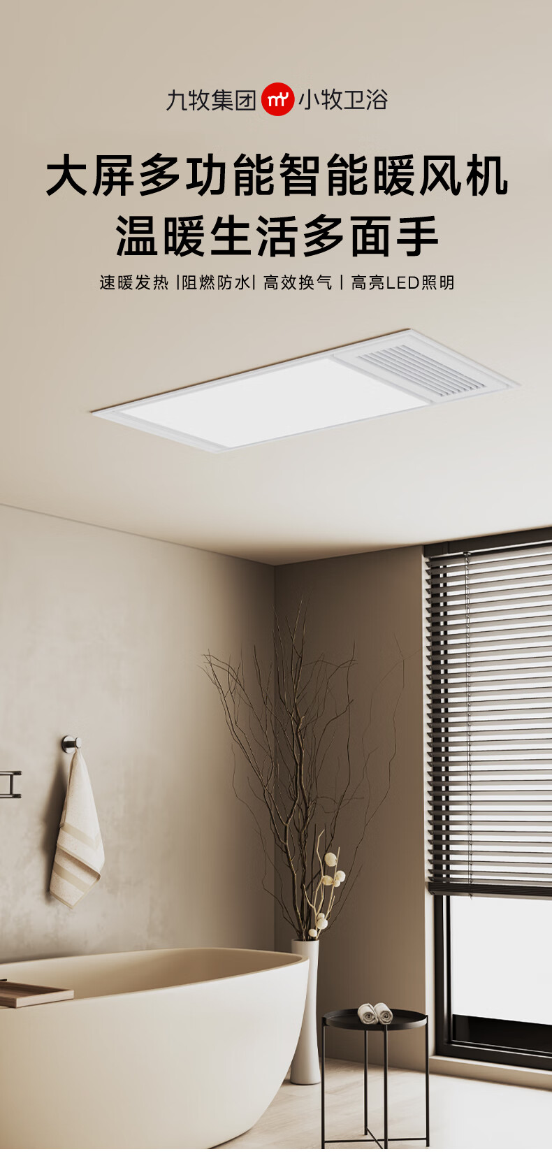 九牧(JOMOO)浴霸小牧卫浴灯集成吊顶暖风暖照明排气三合一智能触控多功能