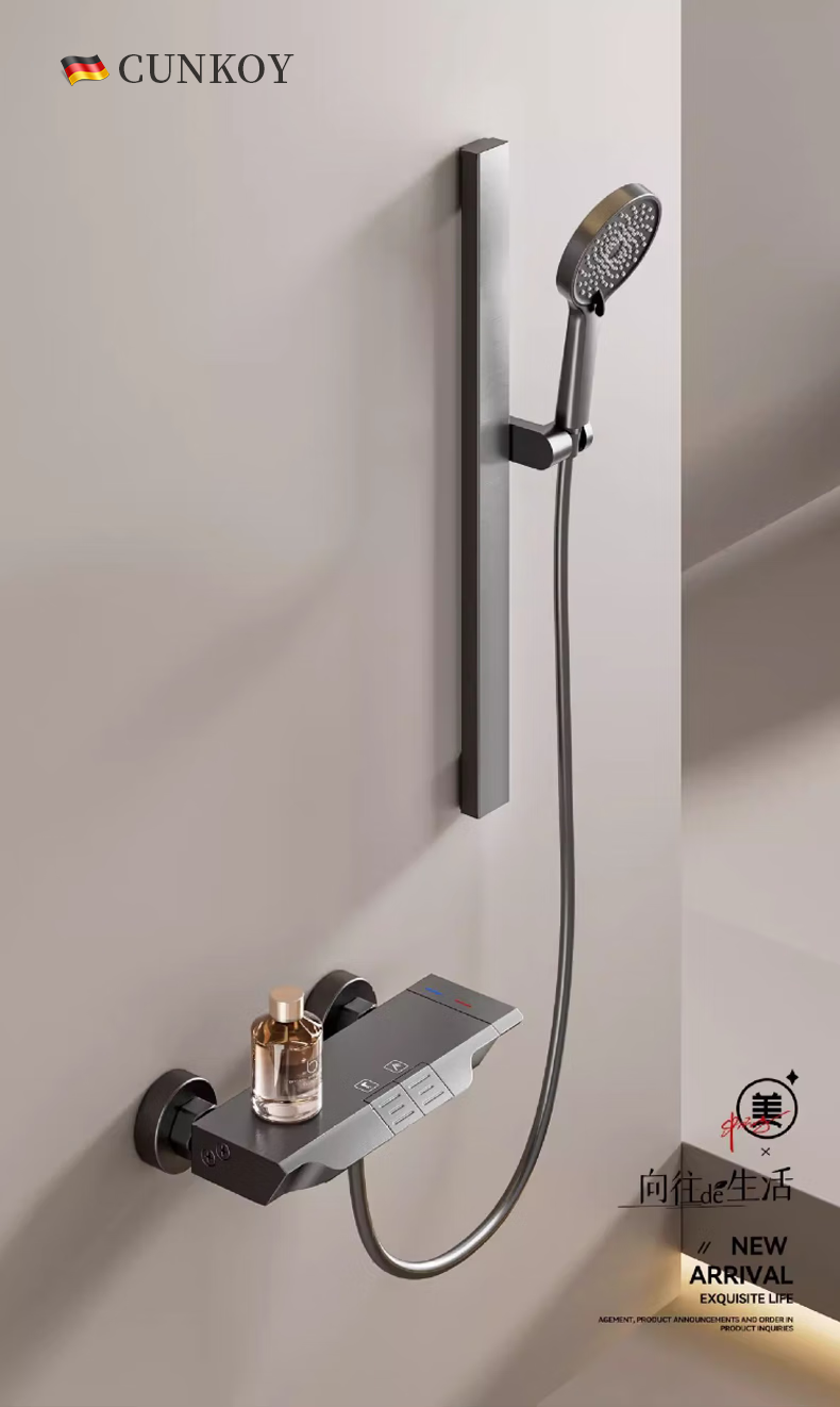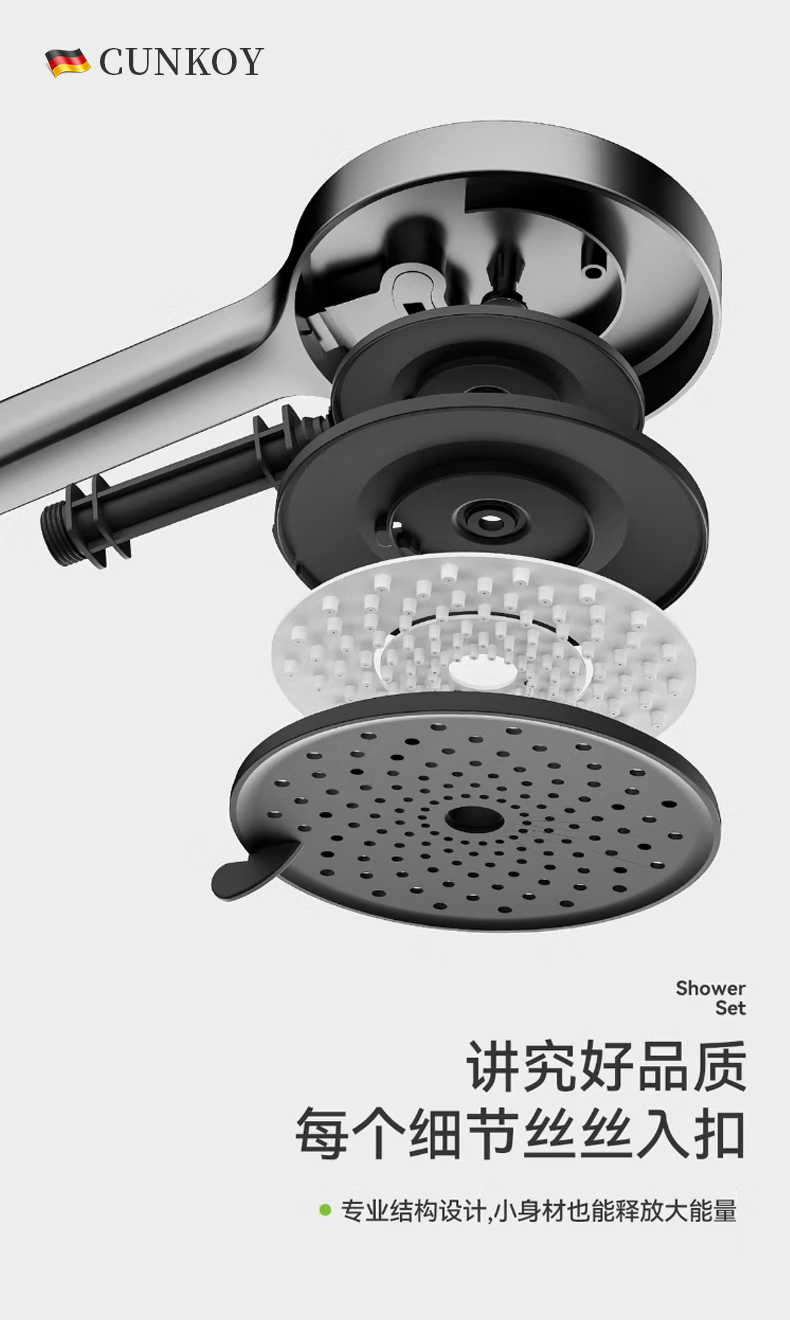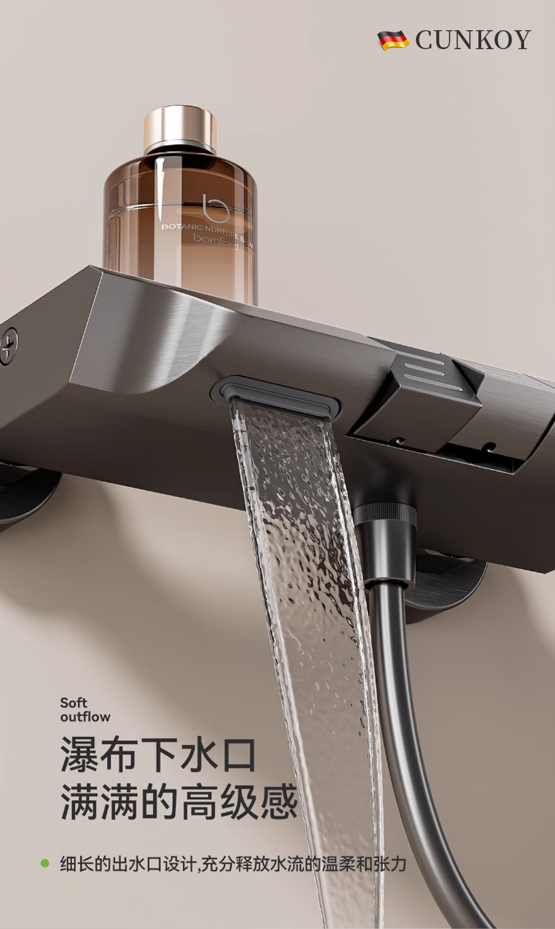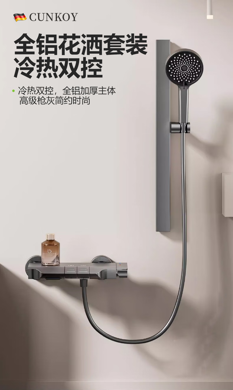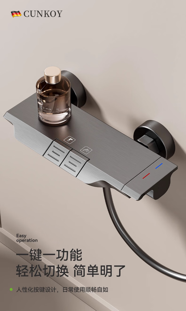 CUNKOY淋浴花洒套装一体冷热增压花洒淋浴全套一整套2025新款 琴键二档花洒套装【奶油白】 分体式安装不占空间丨23cm大置物面板