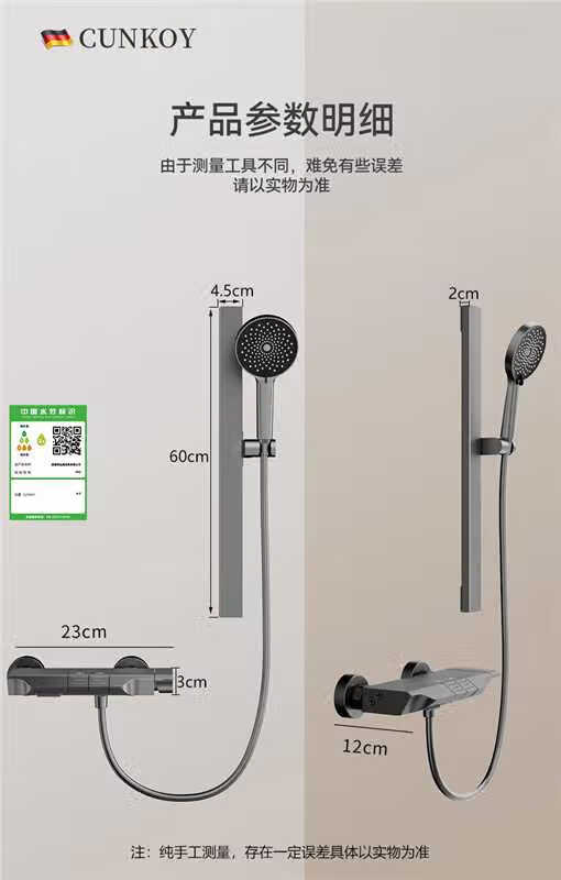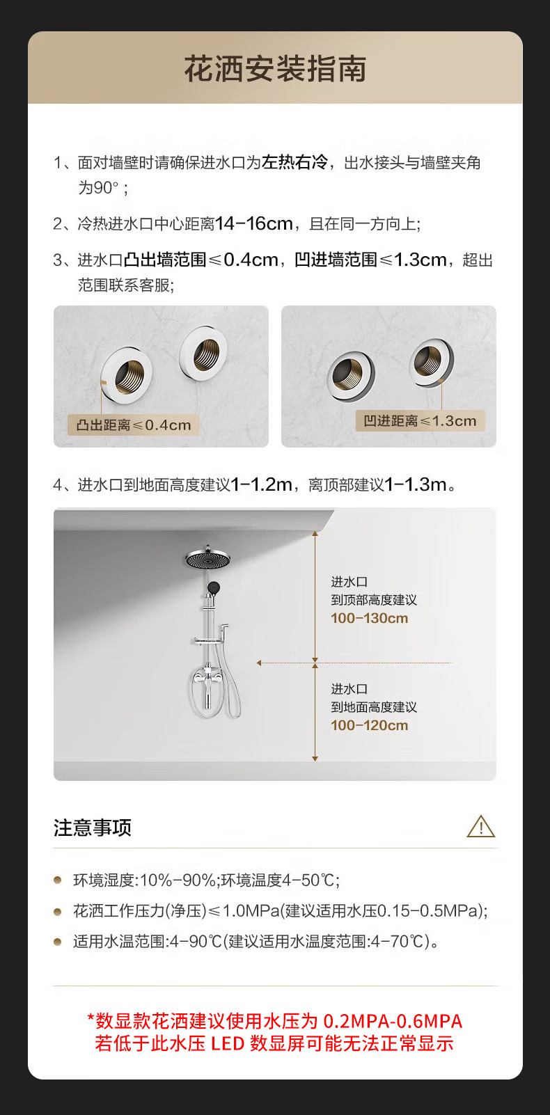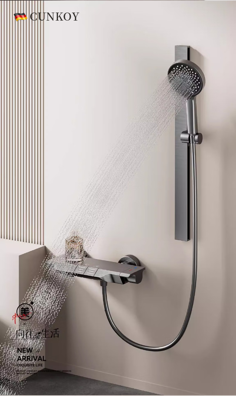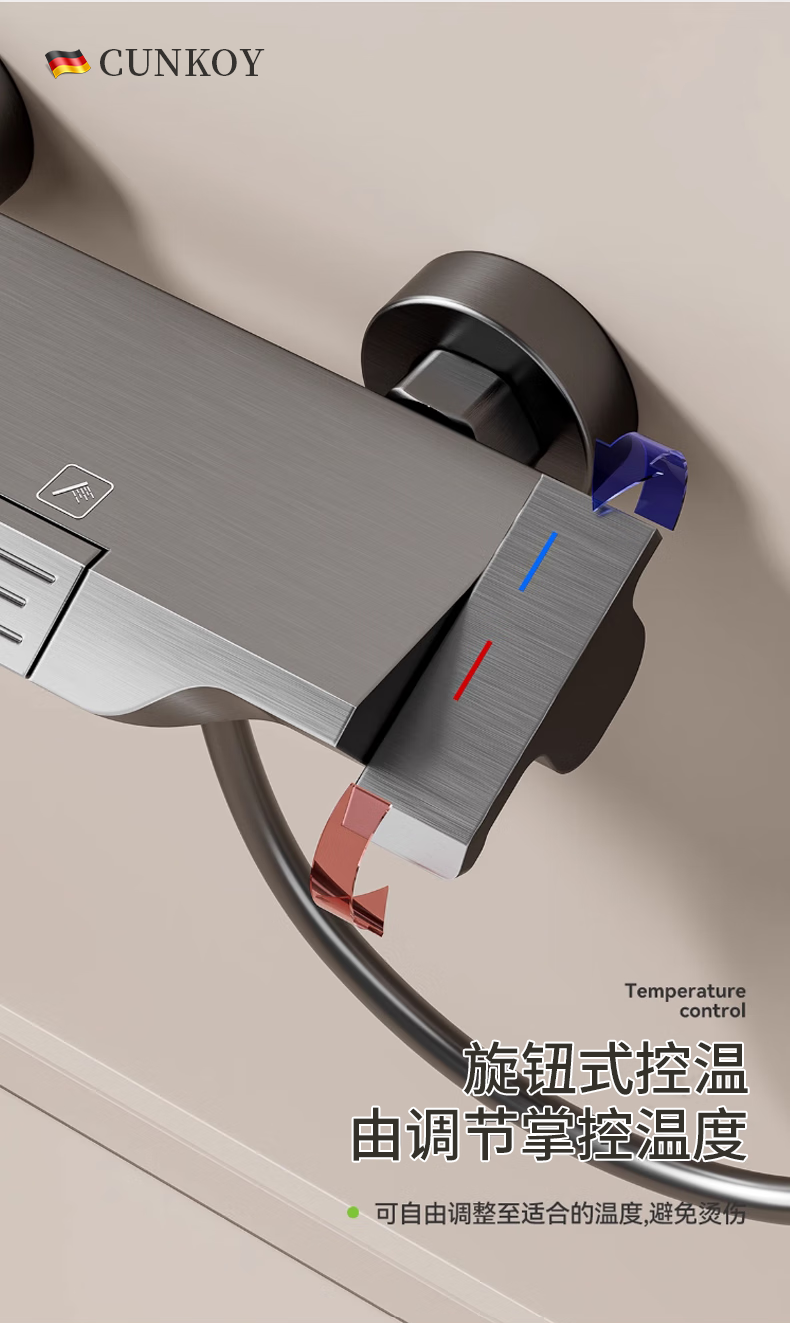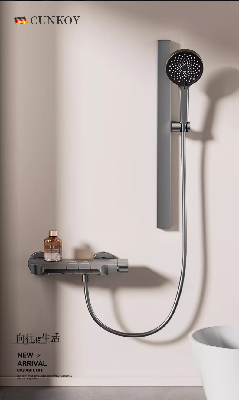 CUNKOY淋浴花洒套装一体冷热增压花洒淋浴全套一整套2025新款 琴键二档花洒套装【奶油白】 分体式安装不占空间丨23cm大置物面板
