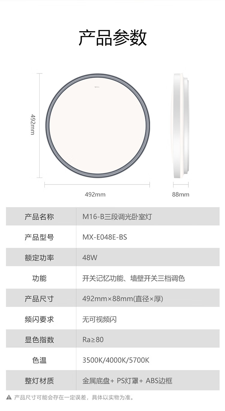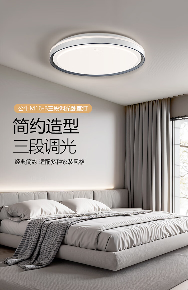 公牛(BULL)LED吸顶灯MX-E048E-BS三段调光卧室灯(M16-B)48W 送安装