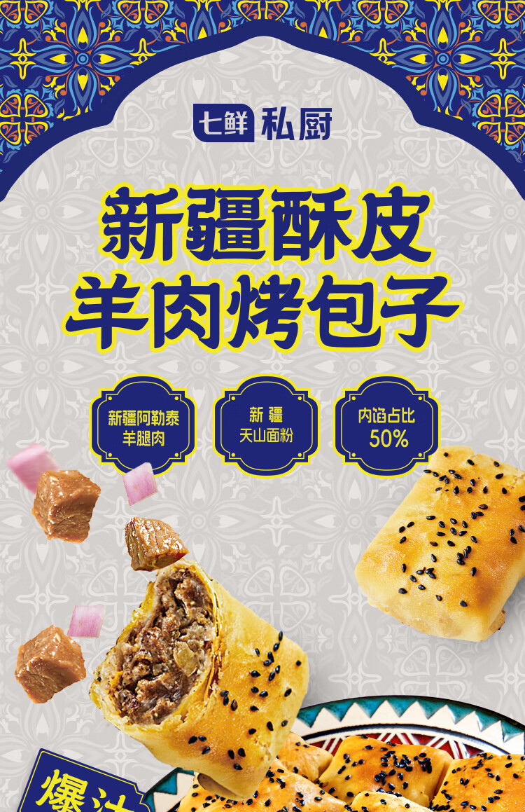 七鲜私厨 新疆酥皮羊肉烤包子400g (8只) 速食特产烧烤半成品早餐