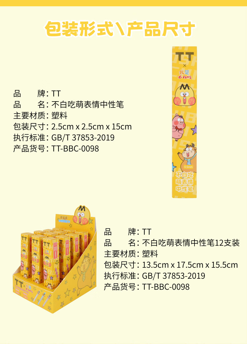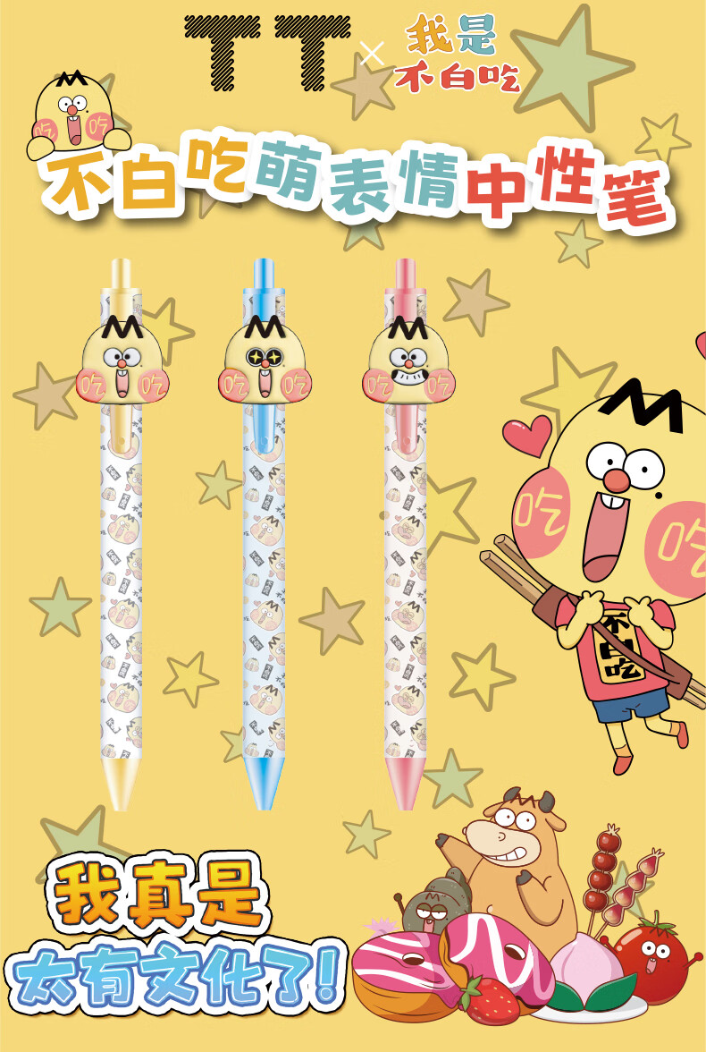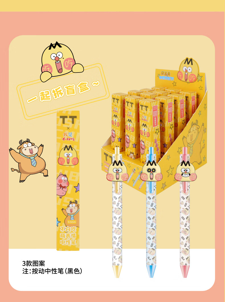TT我是不白吃联名IP文创萌表情黑色中性笔盲盒0.5mm高颜值学生刷题商务办公笔