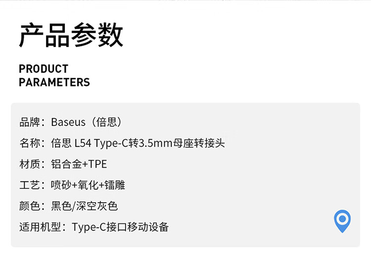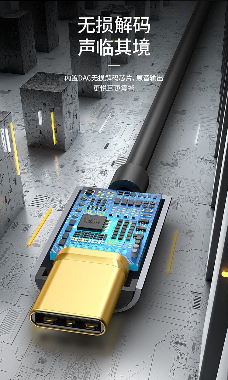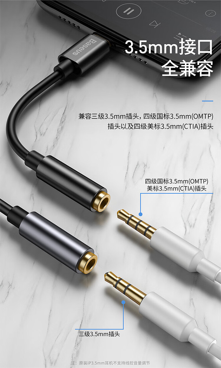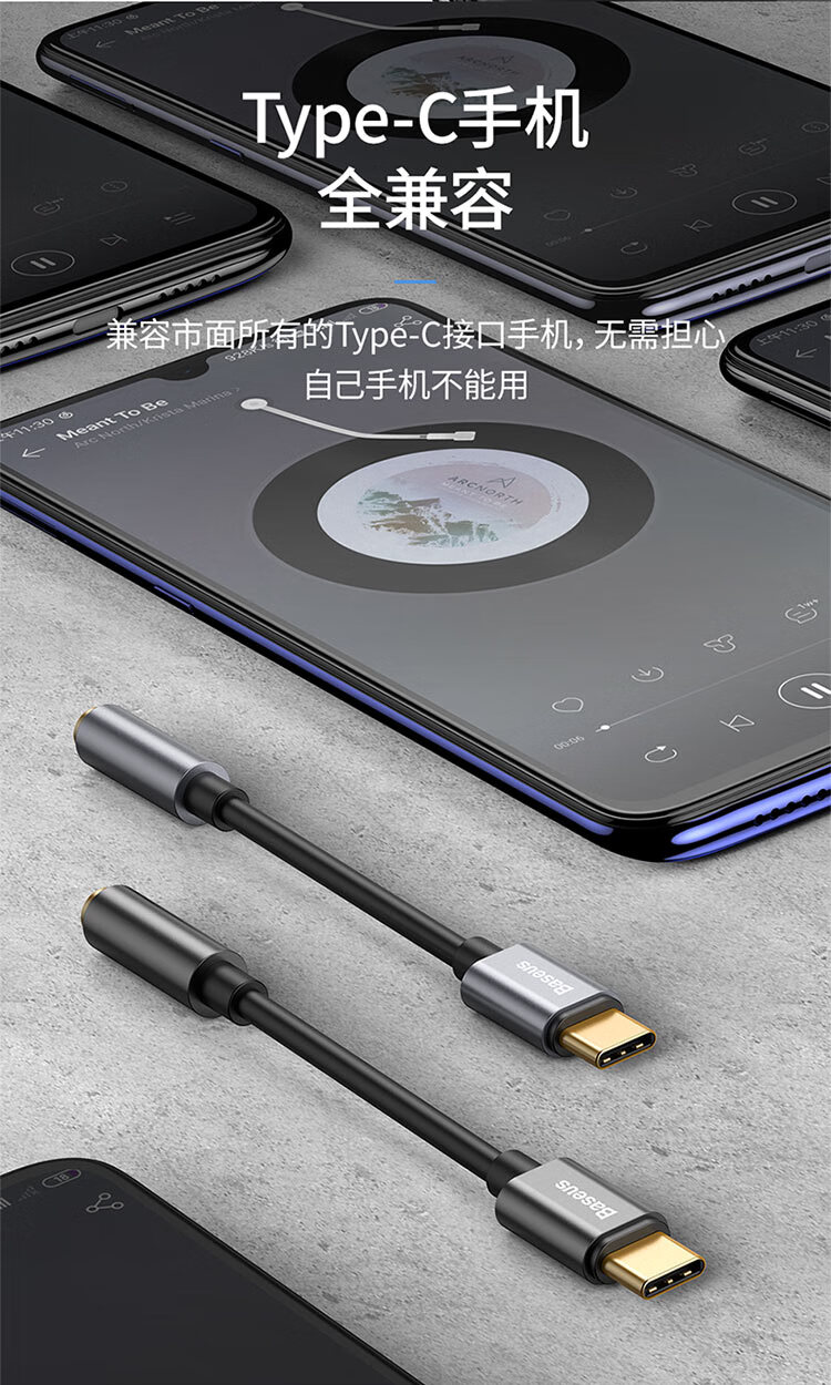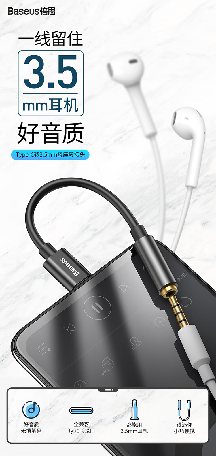 倍思Type-C耳机转接头 3.5mm耳机音频线 USB-C耳机转换器适用苹果15/小米12/11/华为Mate60Pro/P50手机