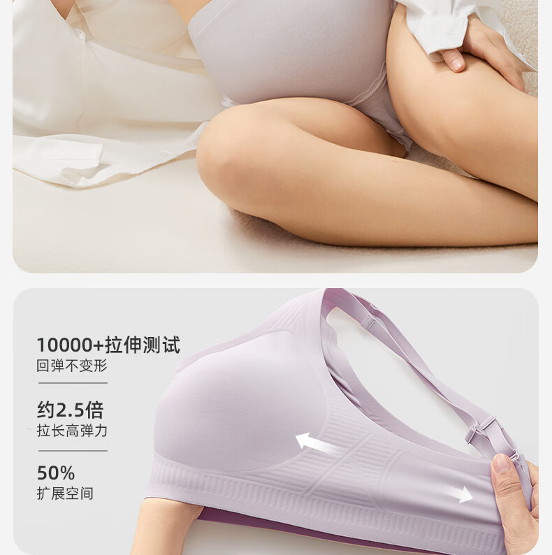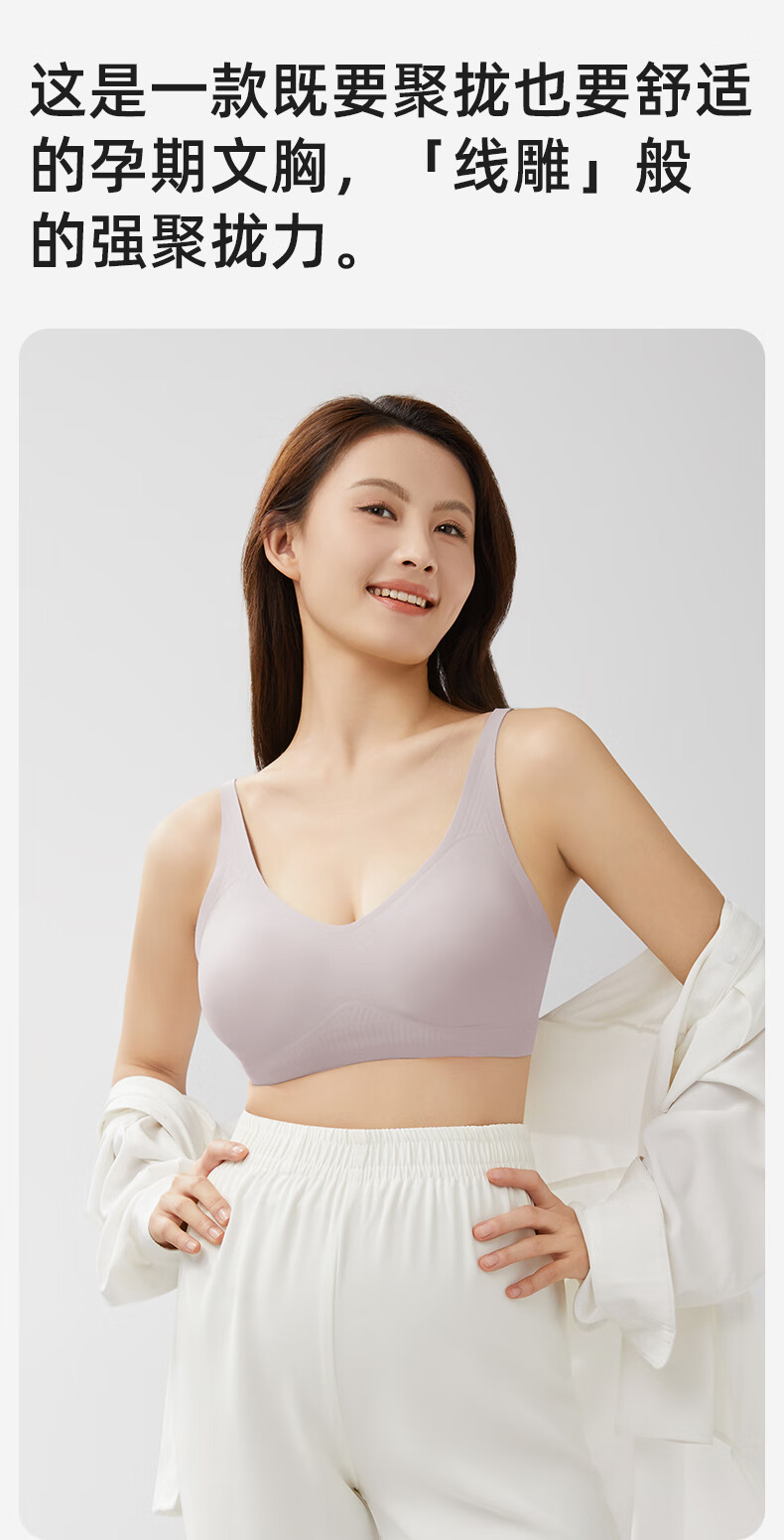 十月结晶孕妇内衣固定杯怀孕期产后线性软聚拢文胸无痕胸罩 2件装【夕岚粉+晴山紫】 M
