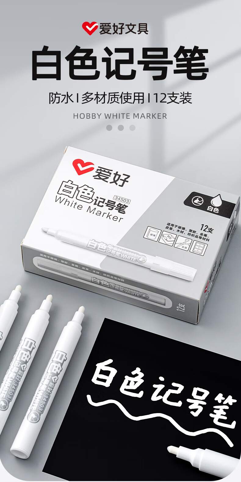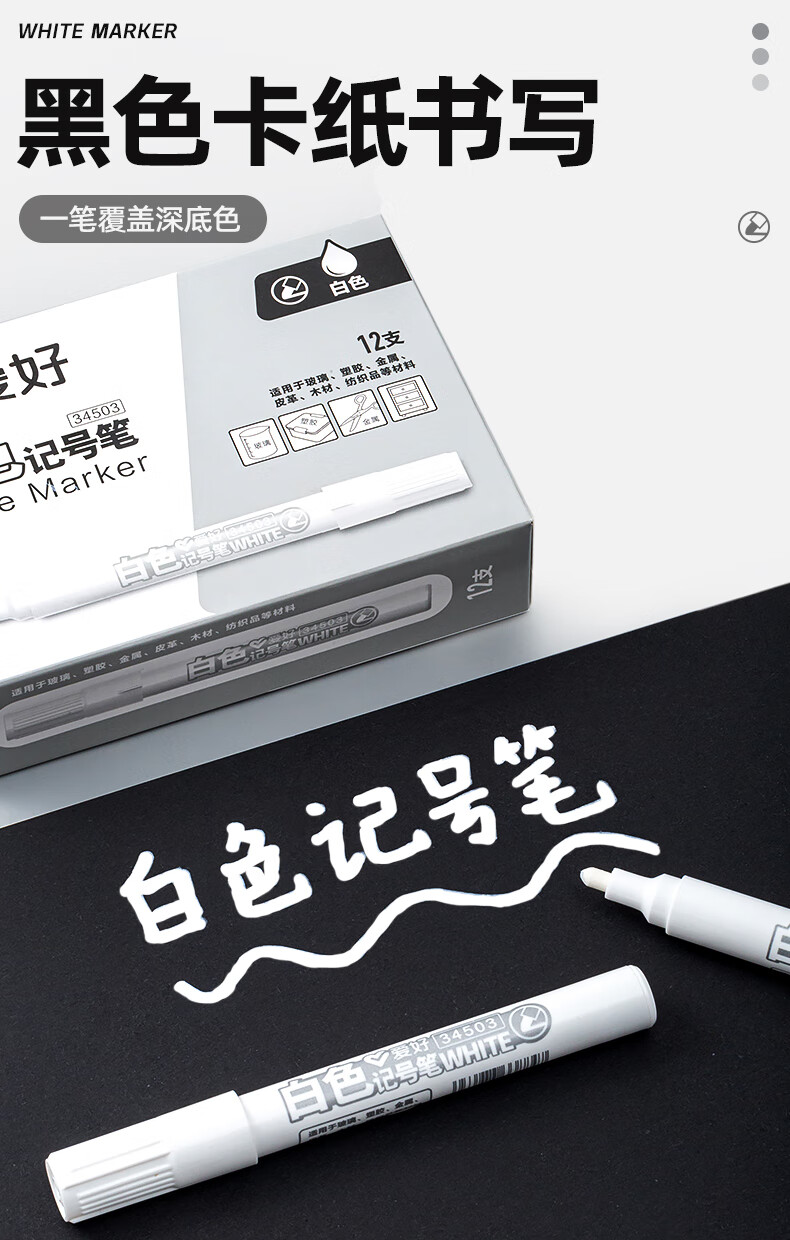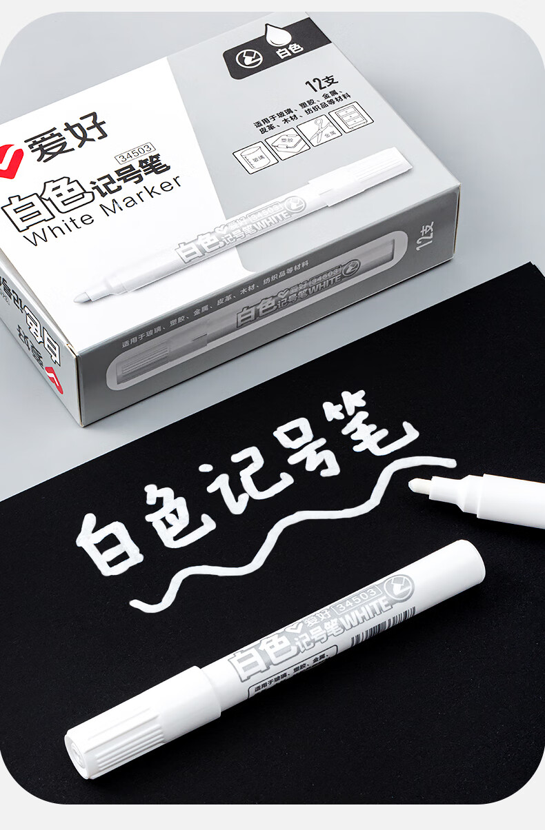 爱好(AIHAO)白色记号笔物流专用大头笔速干防水油性标记笔12支 34503
