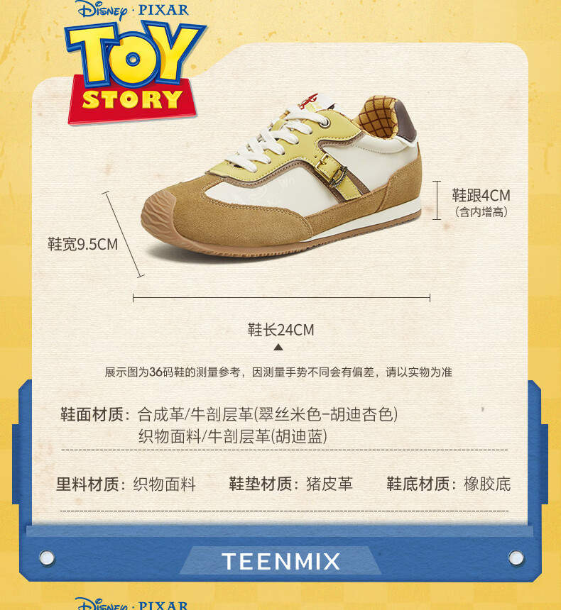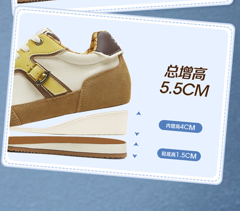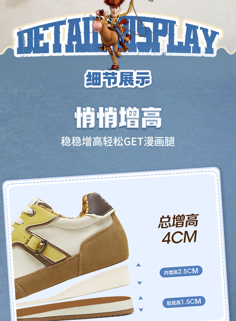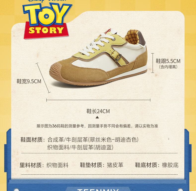 天美意玩具总动员联名胡迪内增高复古德训鞋女小白休闲运动鞋 胡迪杏【4CM跟高】 39