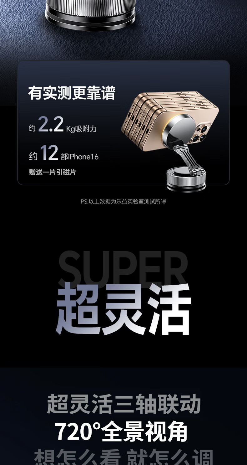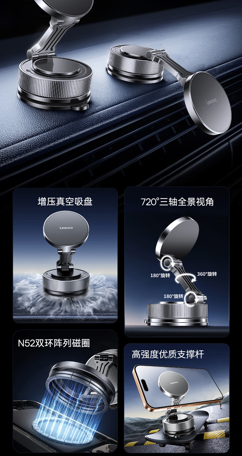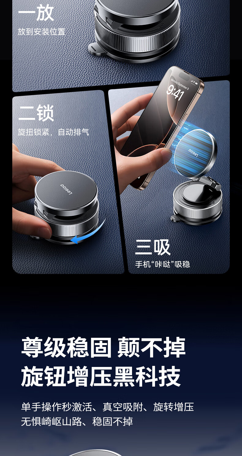 乐益磁吸车载手机支架真空吸附吸盘式汽车专用导航适用特斯拉2025新款