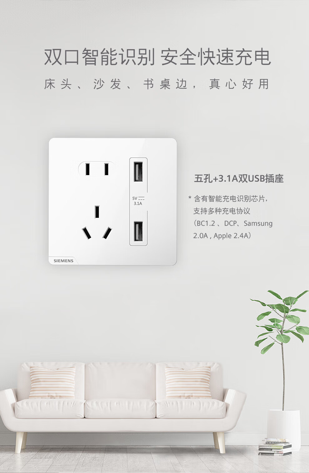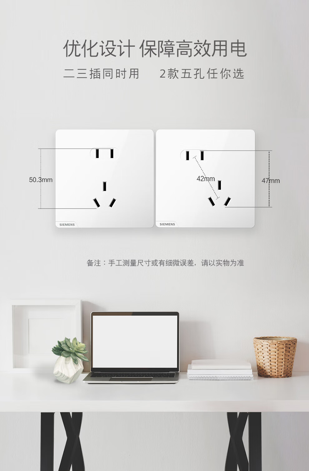 西门子(SIEMENS)开关插座面板 灵煜系列白色WJ 斜五孔插座