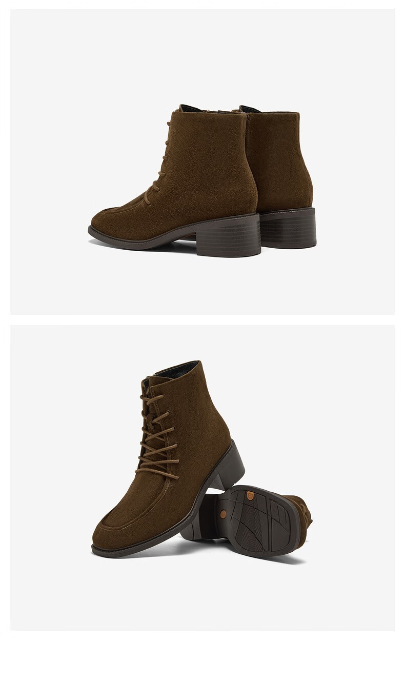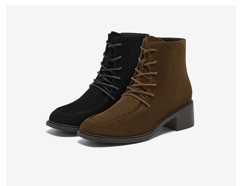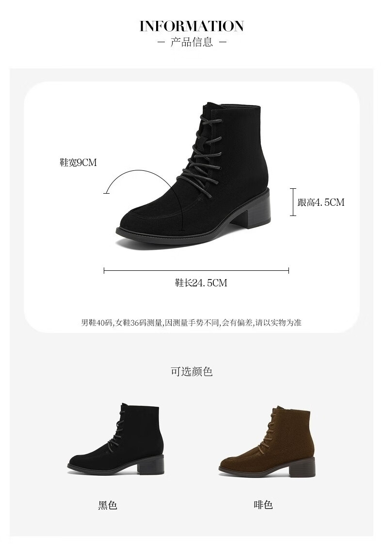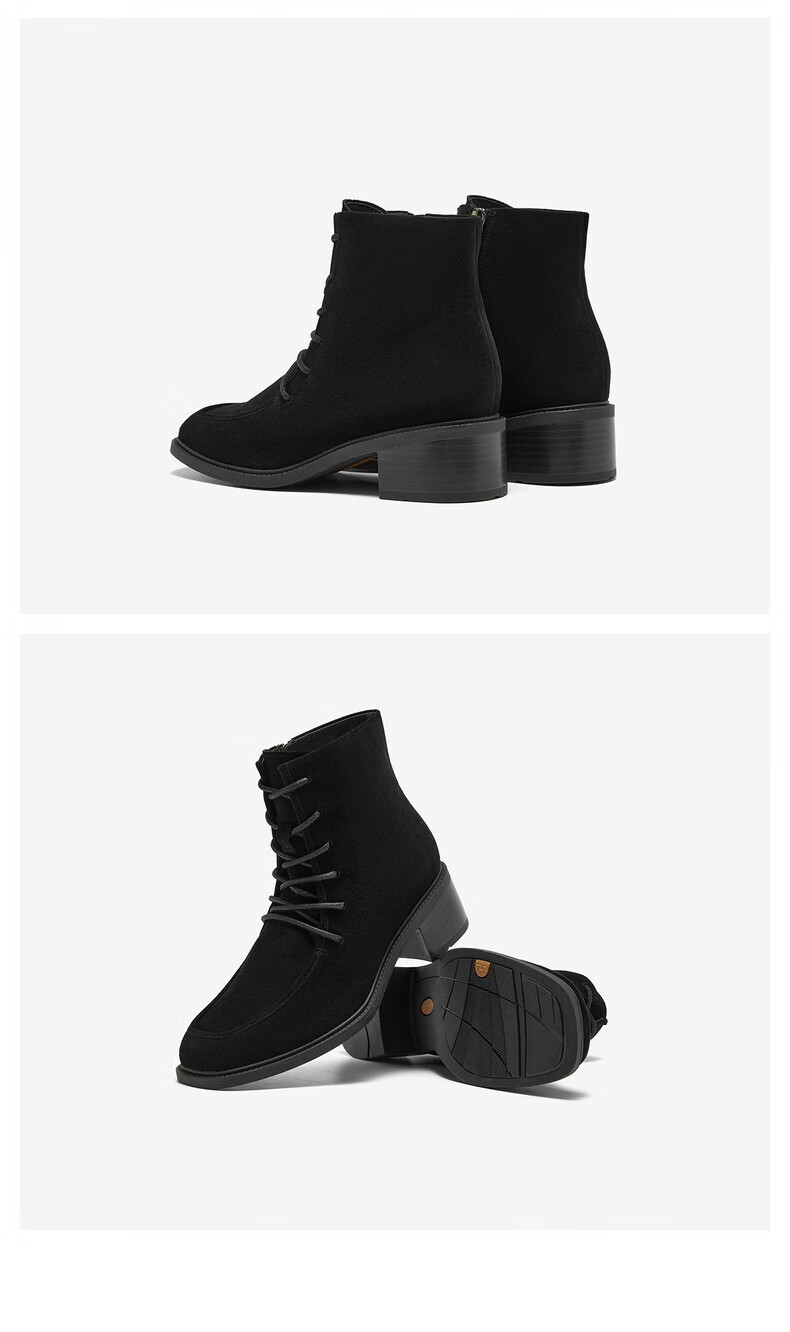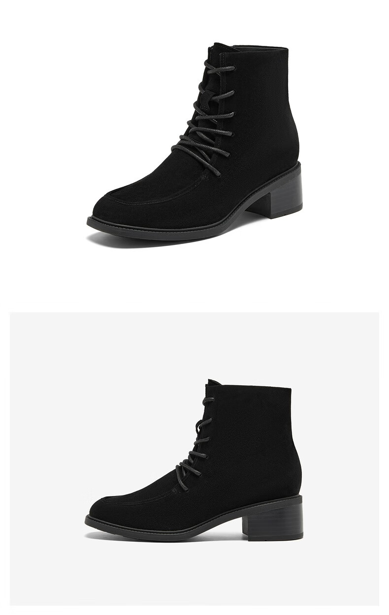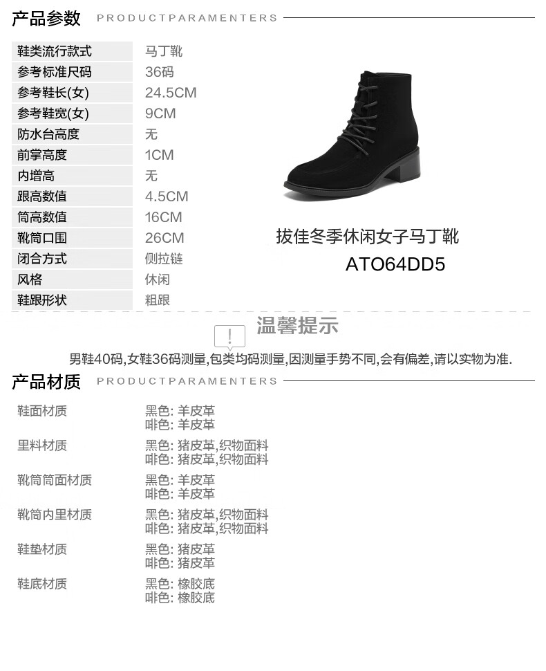 Bata马丁靴女2025冬季新款羊皮英伦风复古粗跟时装短靴ATO64DD5 黑色 32