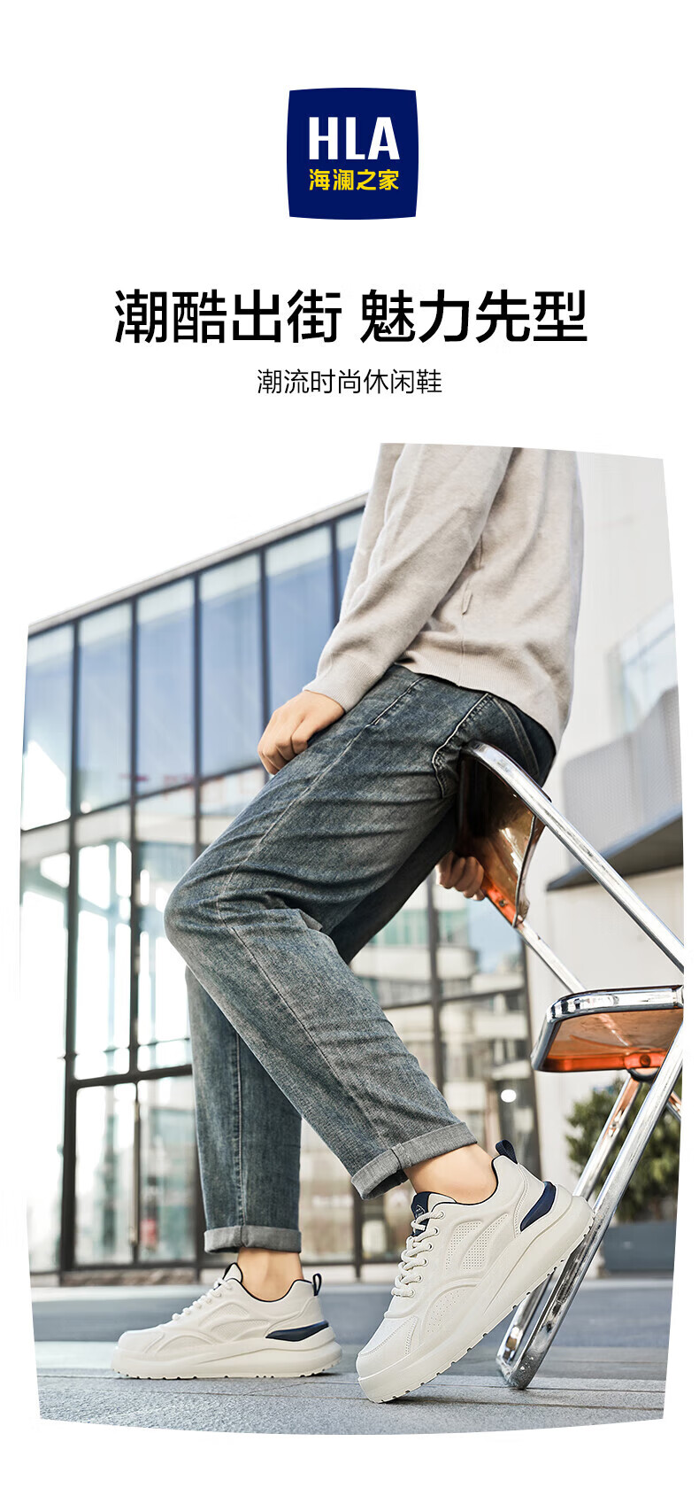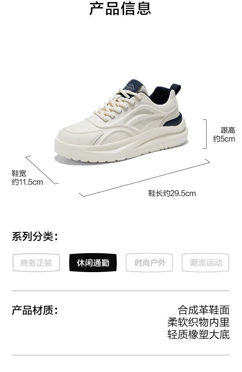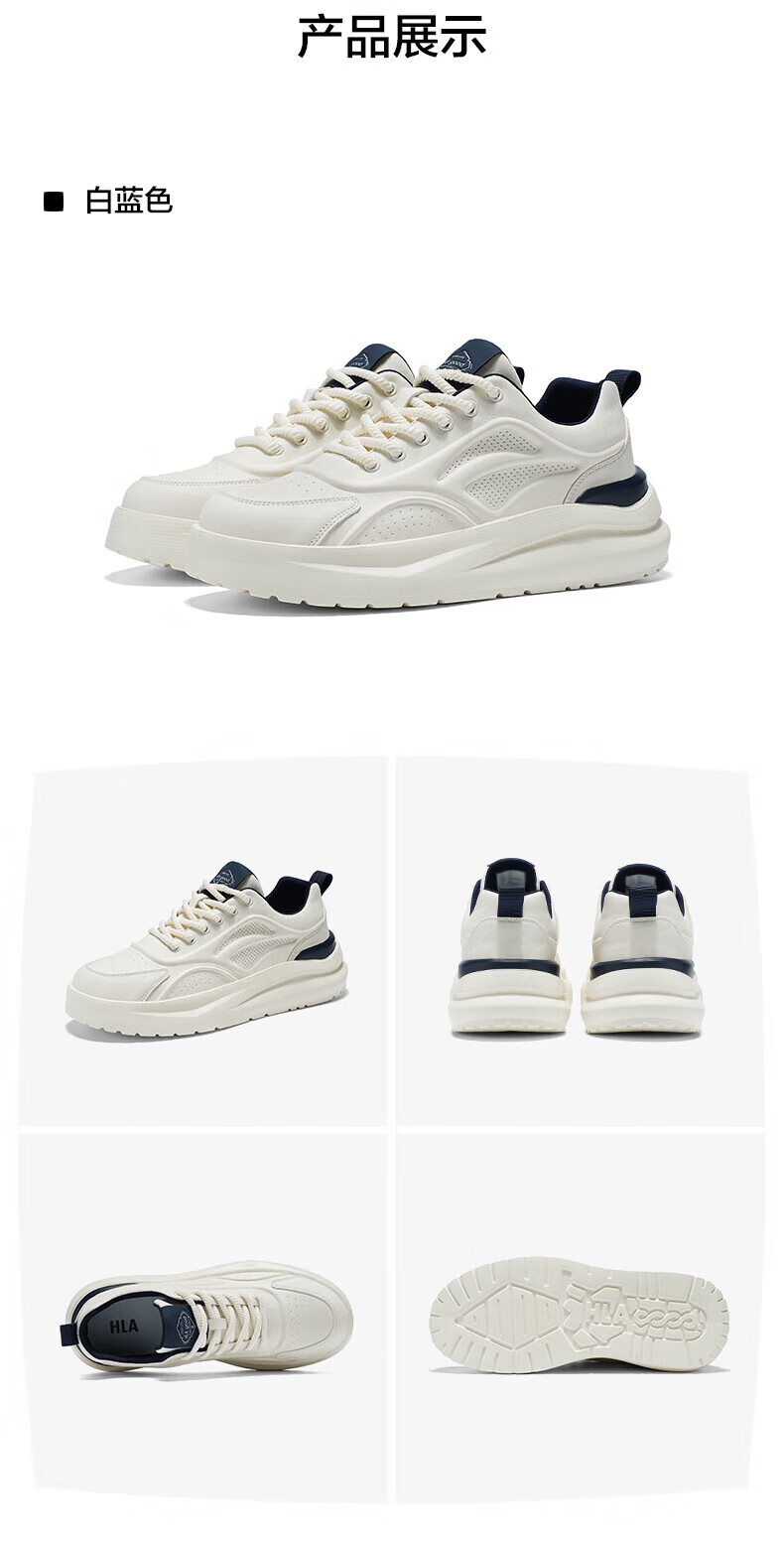 海澜之家(HLA)男鞋新款简约时尚百搭板鞋舒适柔软厚底通勤休闲小白鞋 白蓝色 39