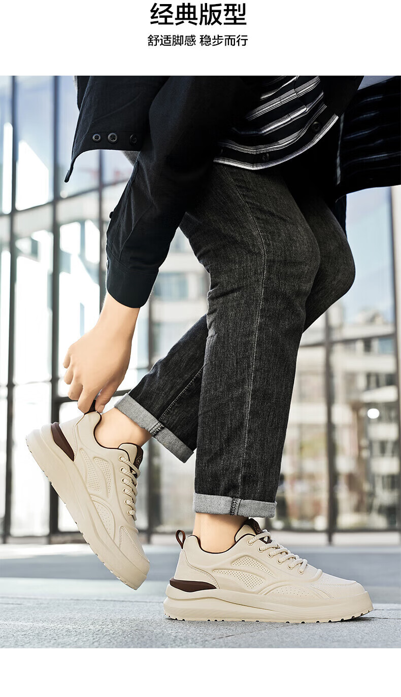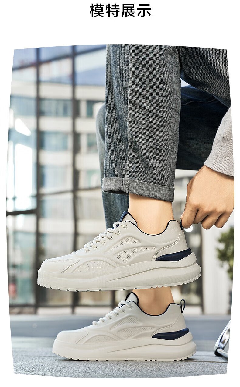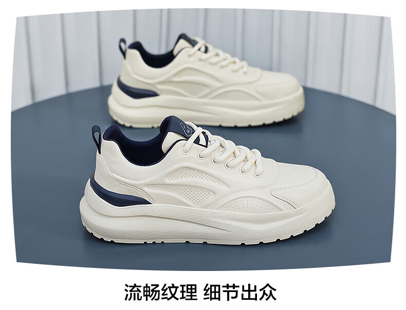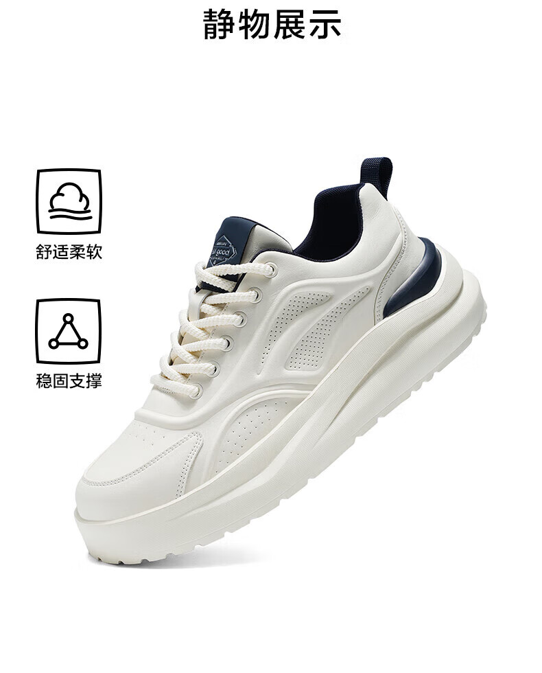 海澜之家(HLA)男鞋新款简约时尚百搭板鞋舒适柔软厚底通勤休闲小白鞋 白蓝色 39