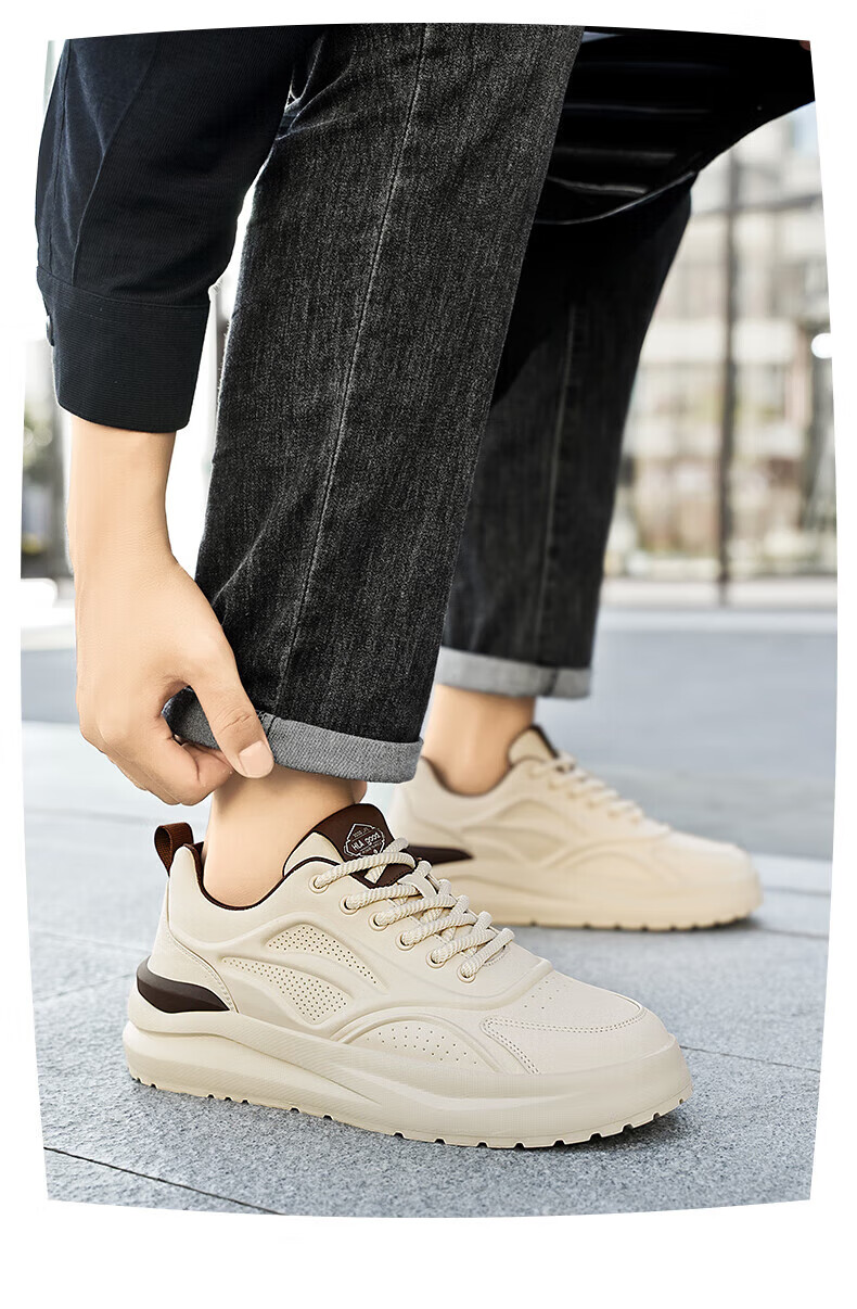 哆啦A梦男鞋秋季新款复古百搭厚底板鞋男士低帮透气运动休闲鞋子男款潮鞋 栗子棕 44