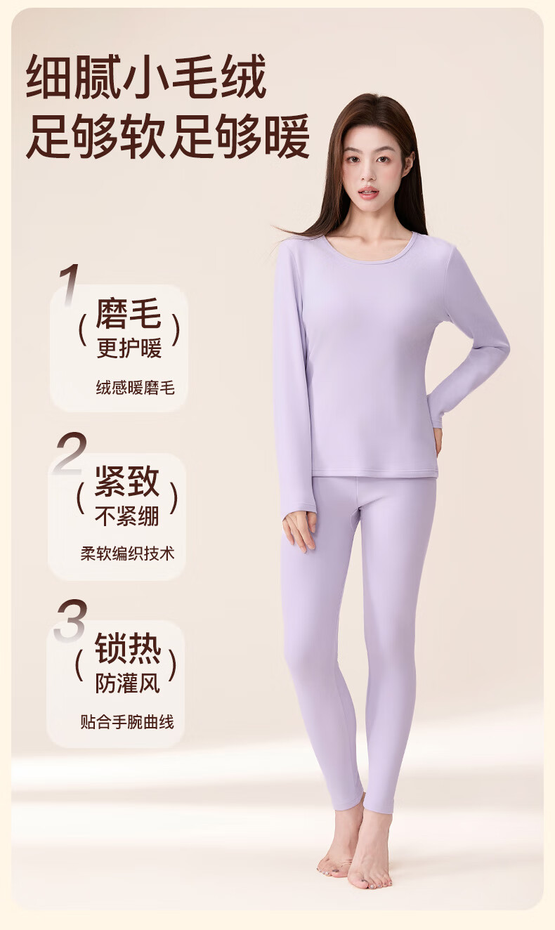 芬腾保暖内衣女2025秋恒暖阳离子温暖软绒圆领弹力套装打底衣秋衣秋裤 肤色 M