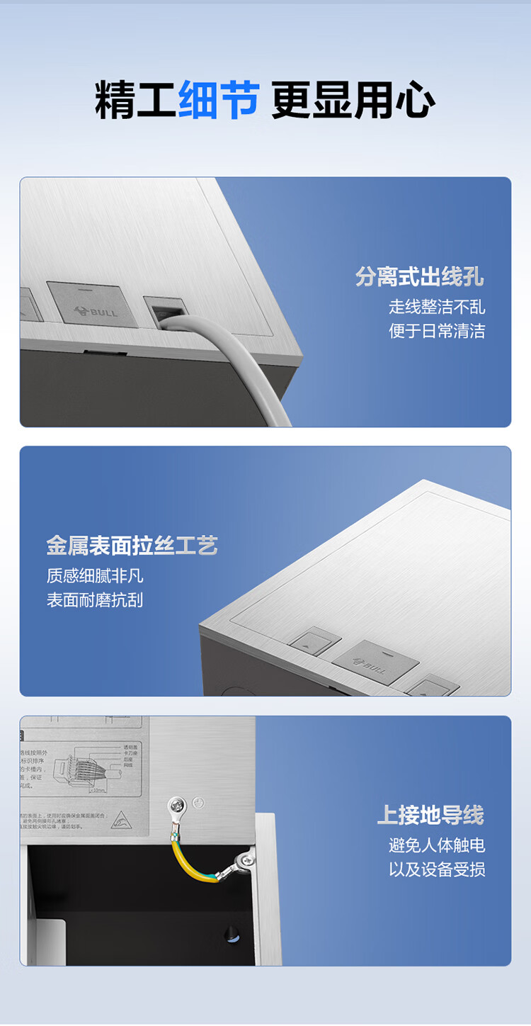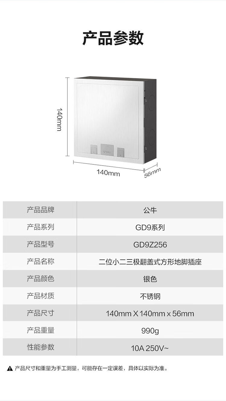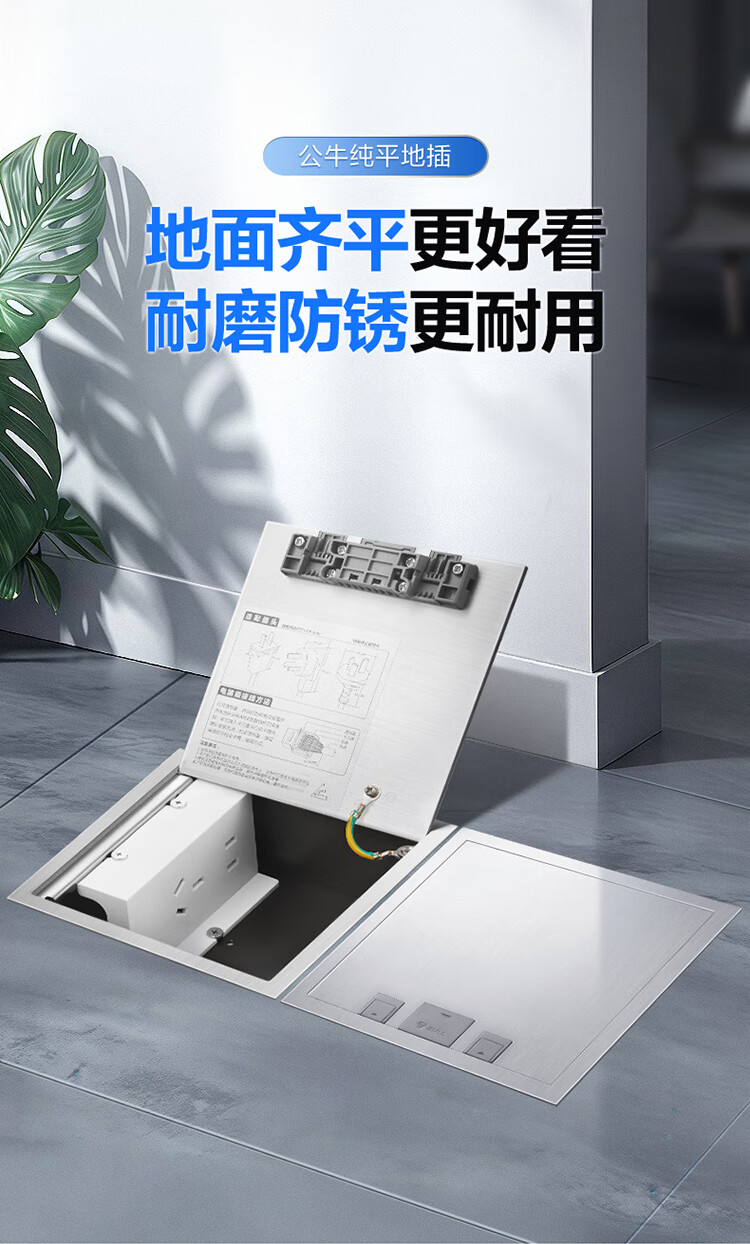 公牛(BULL)地插开关插座 五孔/十孔 不锈钢纯平 隐藏式地插 插座隐形GD9 【五孔防绊地插】GD9Z223