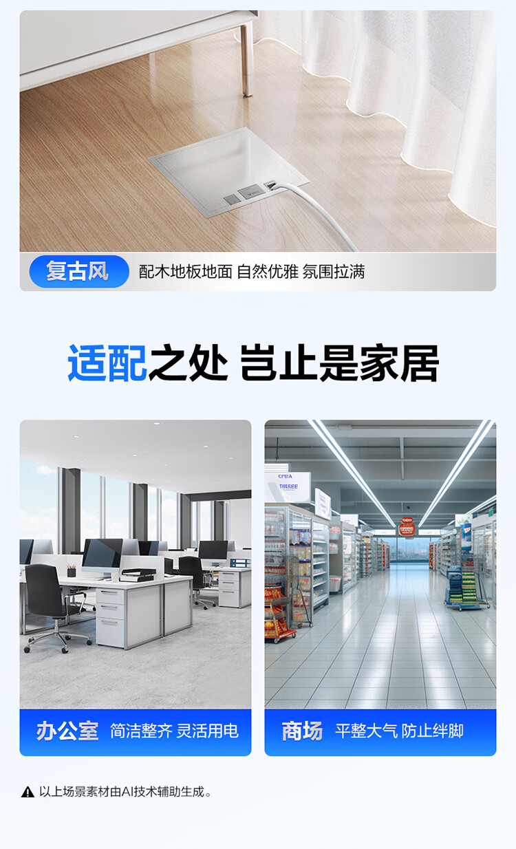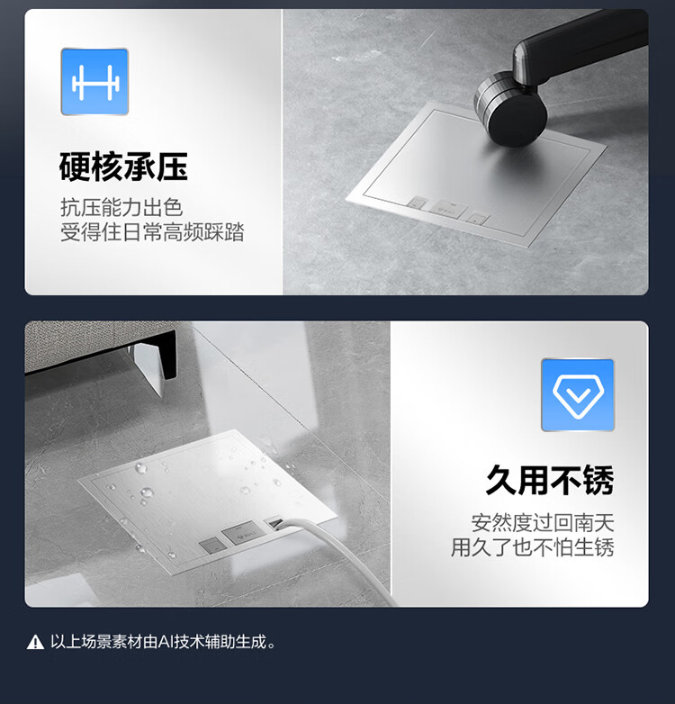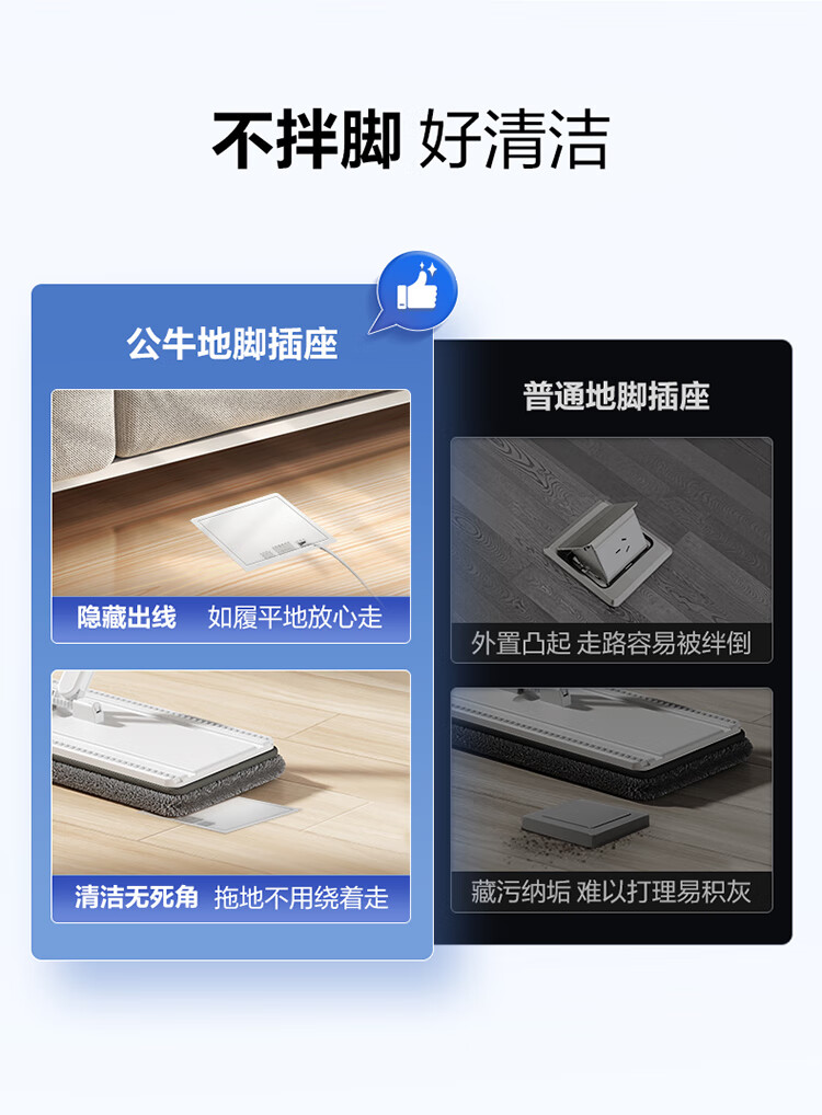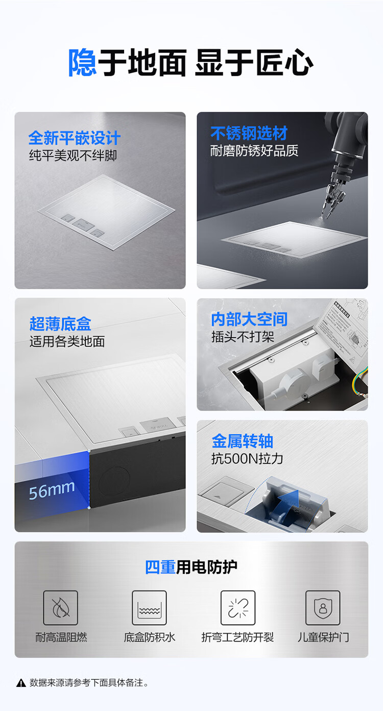 公牛(BULL)地插开关插座 五孔/十孔 不锈钢纯平 隐藏式地插 插座隐形GD9 【五孔防绊地插】GD9Z223
