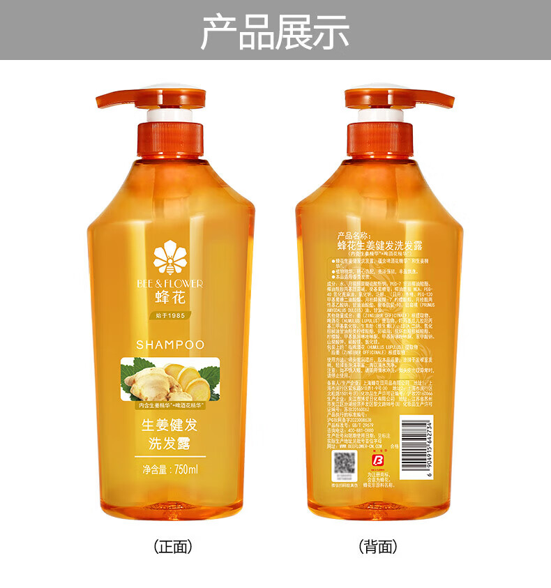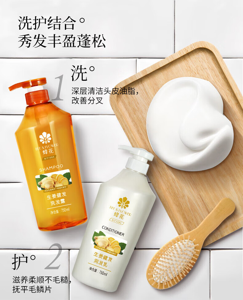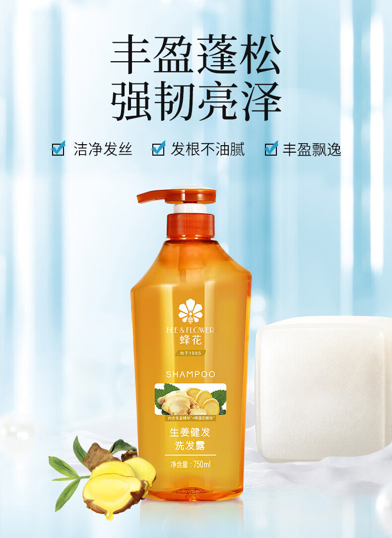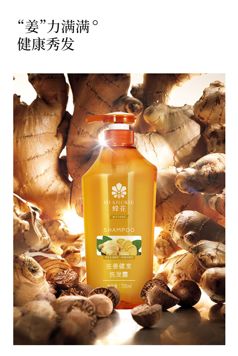 蜂花生姜洗发水无硅油健发防断发洗发露柔顺留香洗头膏男女通 生姜健发洗发露750ml+防脱洗40ml