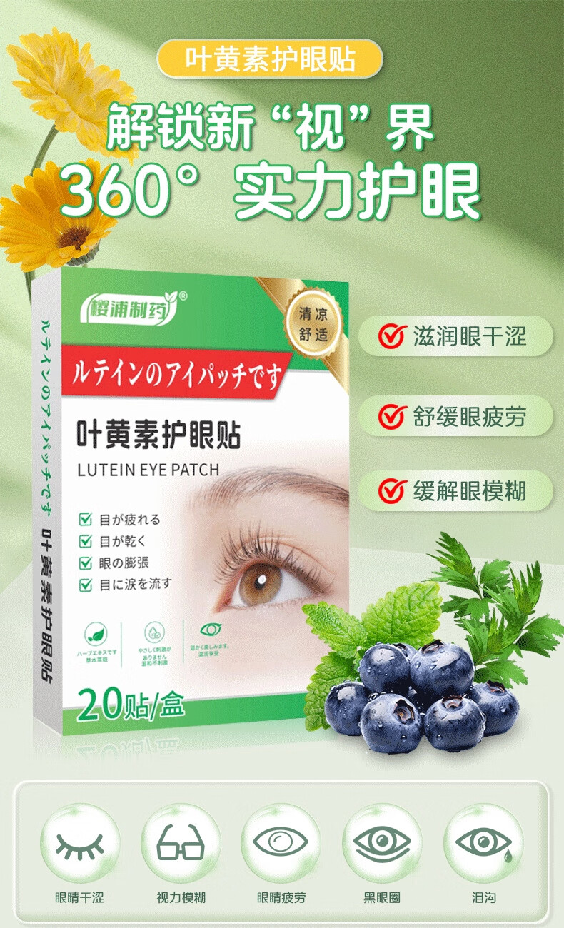 樱浦制药叶黄素护眼贴冷敷冰敷眼罩缓解眼疲劳眼睛干涩视力儿童青少年改善 5盒【工作学习必备,保护双眼】