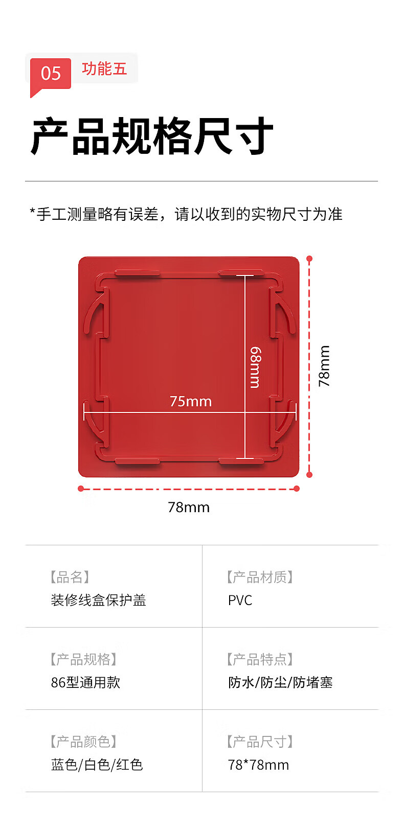 国际电工86型防水电工线盒盖板保护盖免螺丝开关底盒卡扣盖板暗盒封堵 红色 86型线盒免螺丝自扣盖板【100片