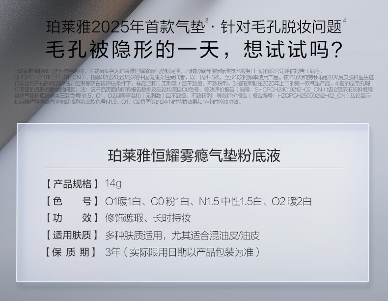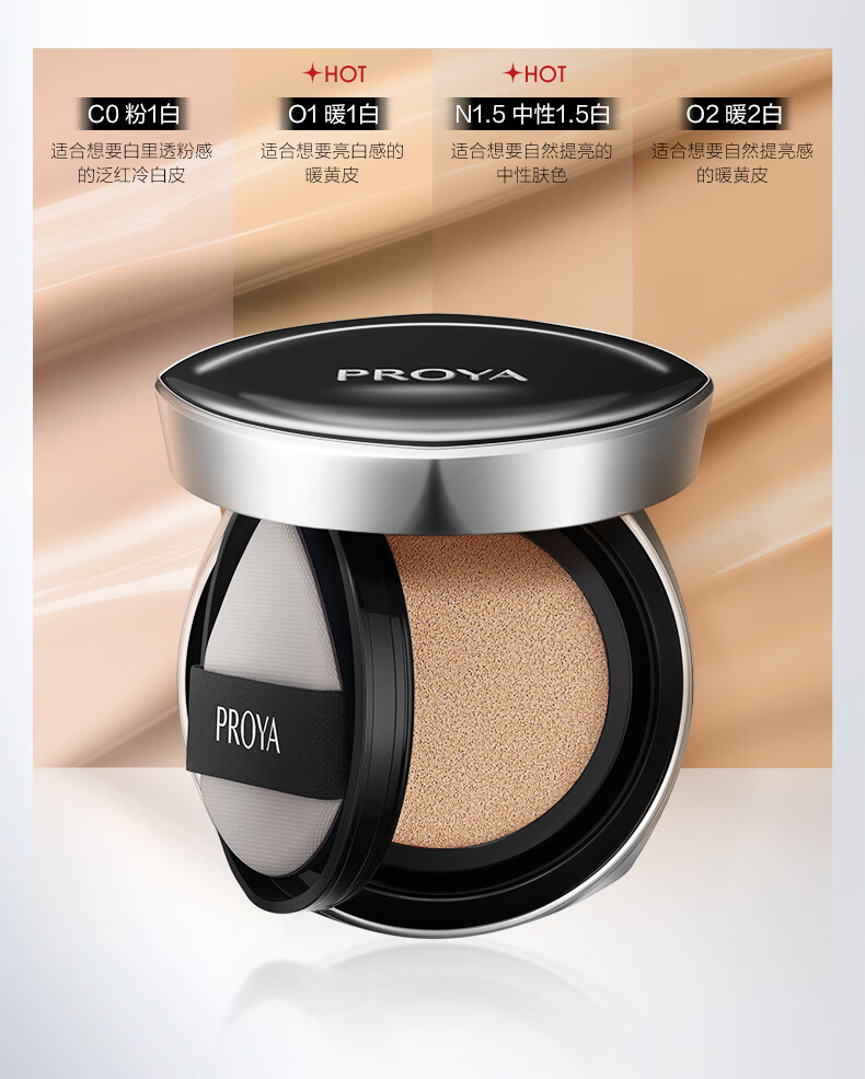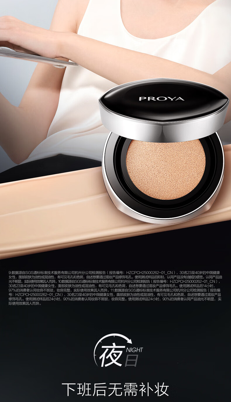 珀莱雅(PROYA)恒耀雾瘾气垫O1亮白色油皮遮瑕气垫粉底液14g生日礼物送女友