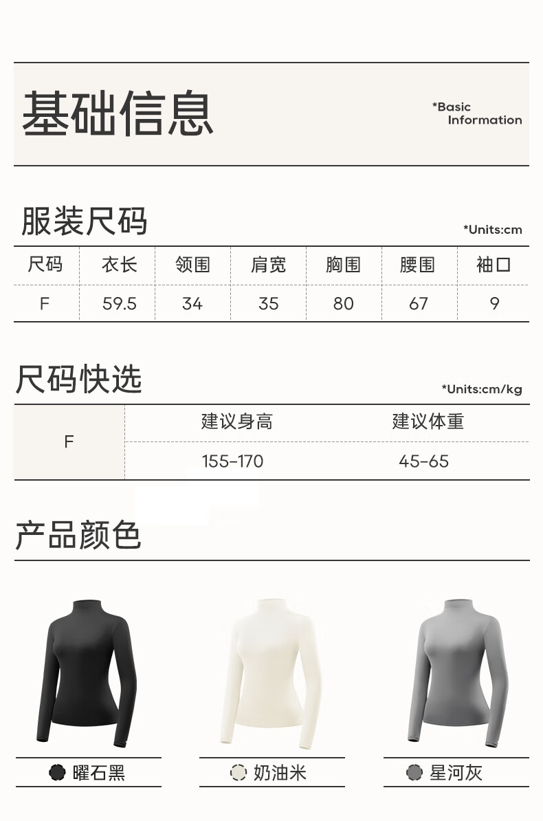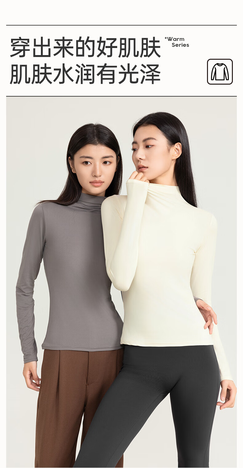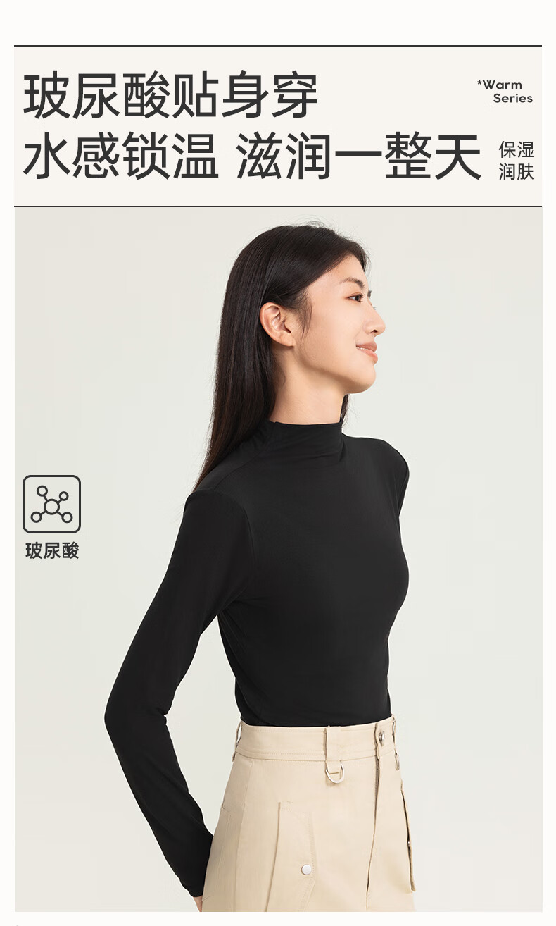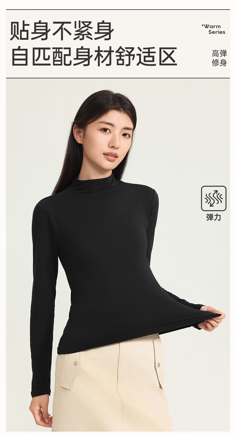 VVC打底衫女秋冬新款半高领修身长袖保暖内搭透气玻尿酸肌底衣曜石黑