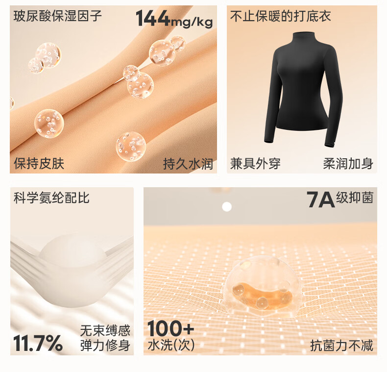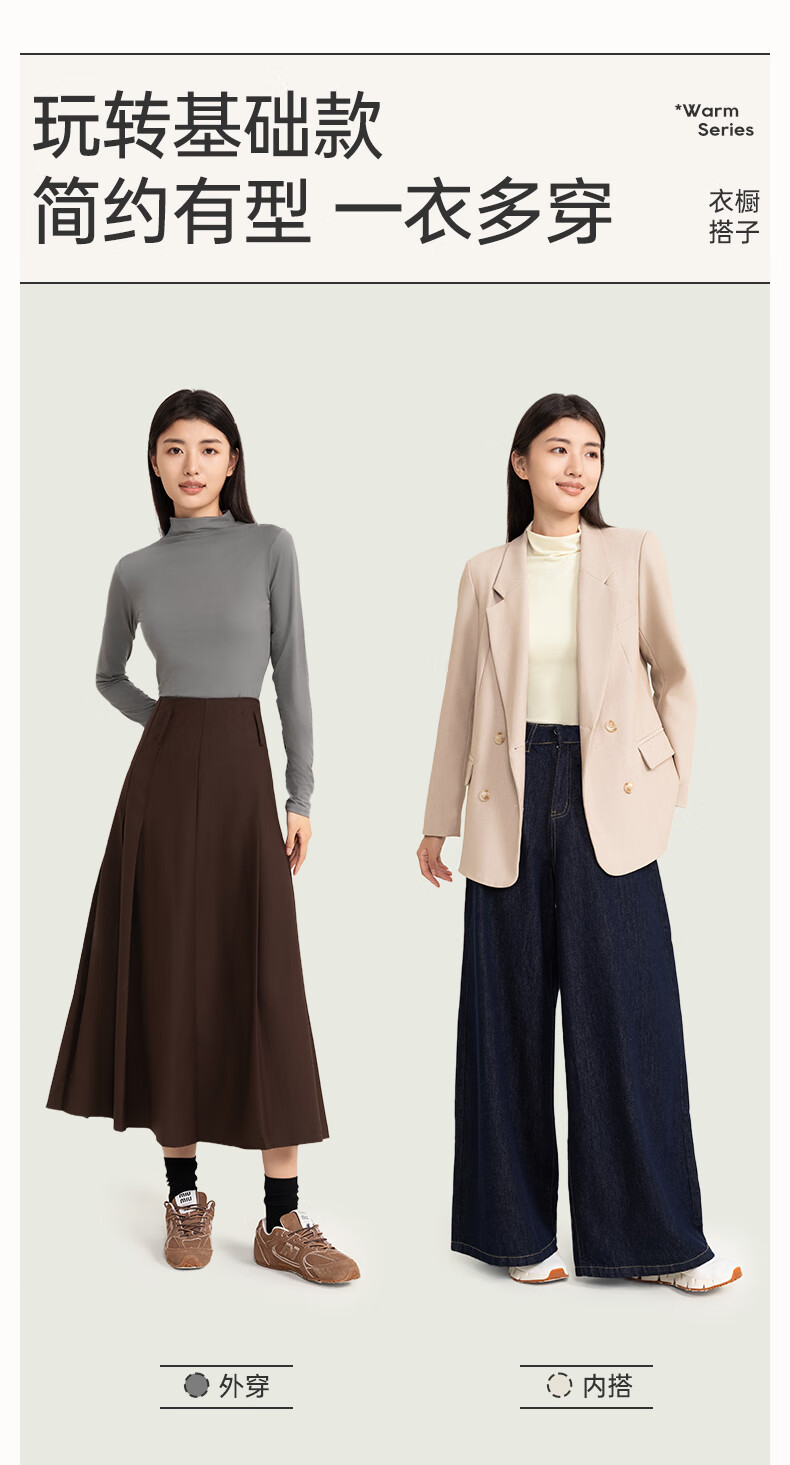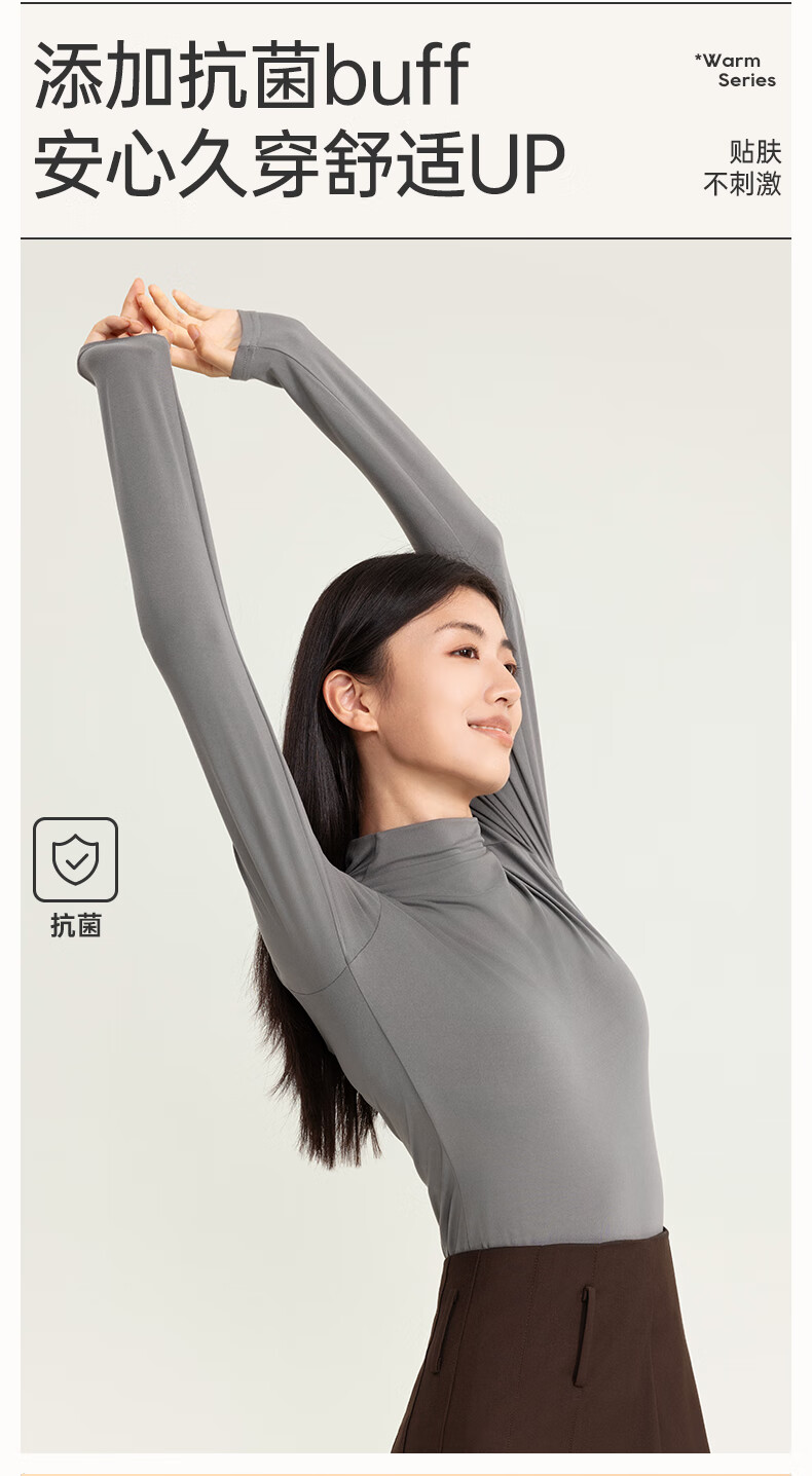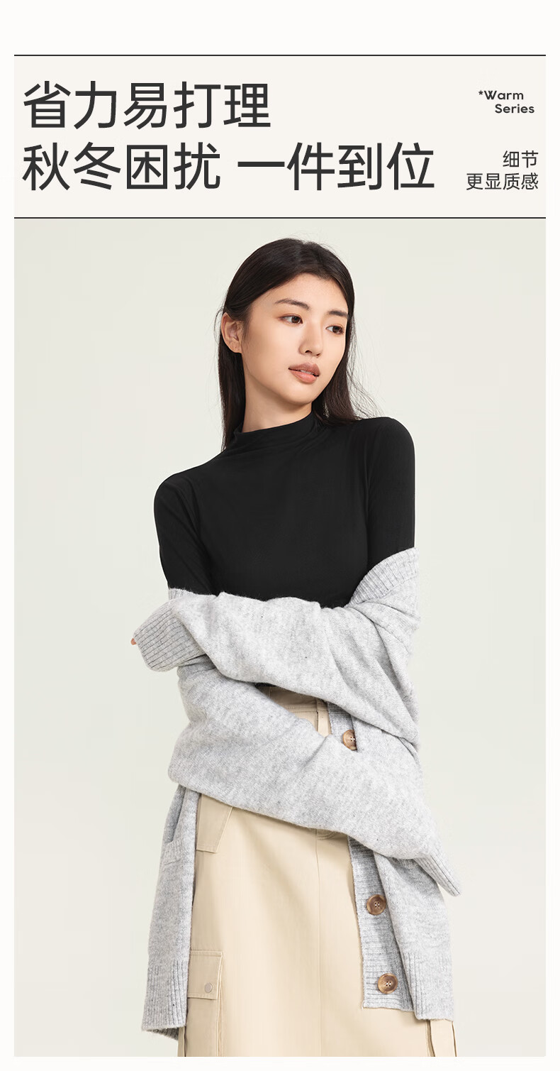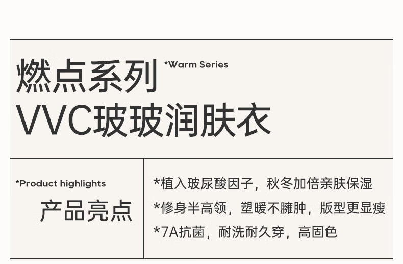 VVC打底衫女秋冬新款半高领修身长袖保暖内搭透气玻尿酸肌底衣曜石黑