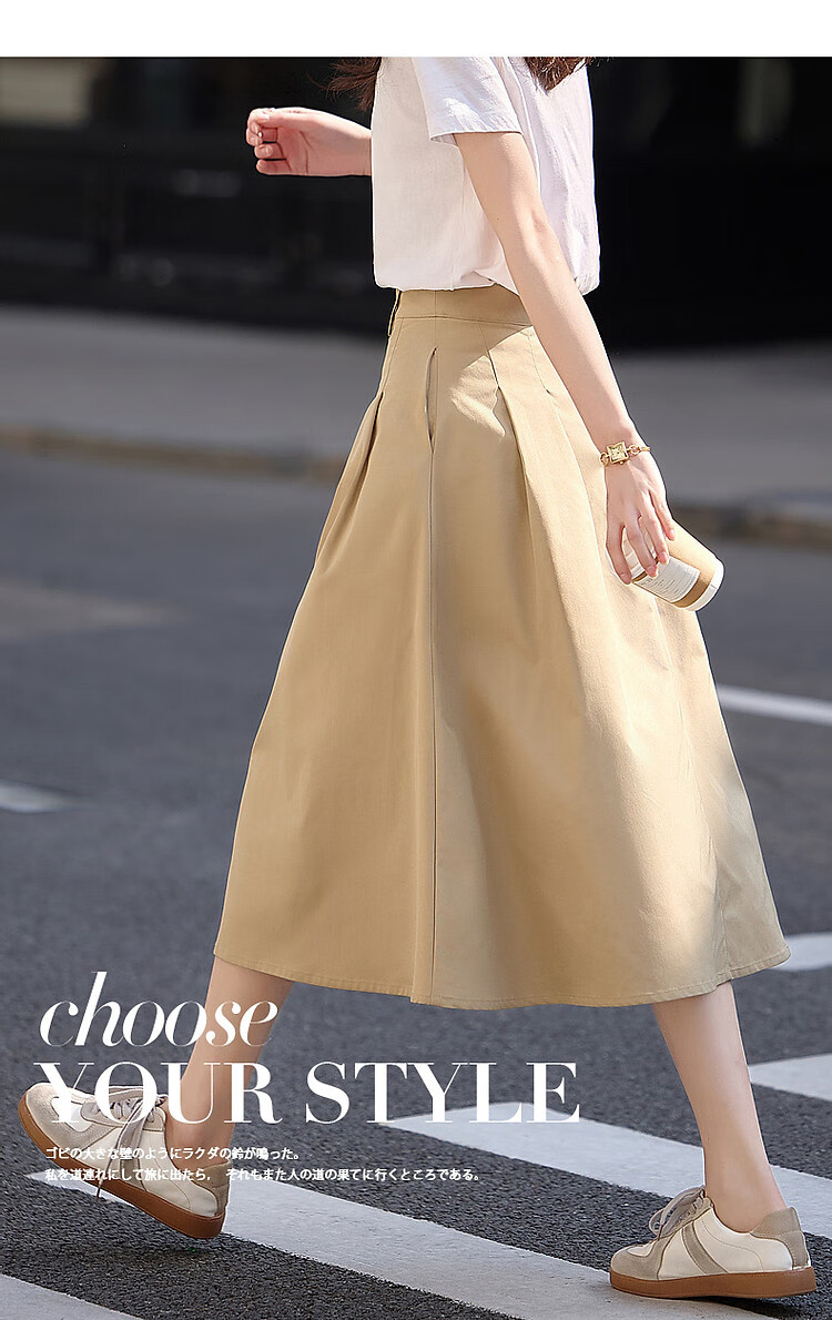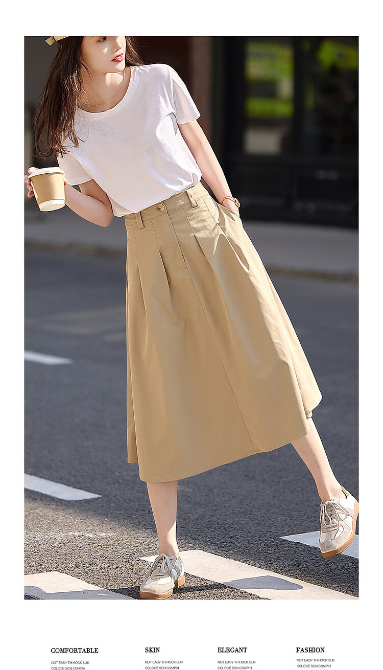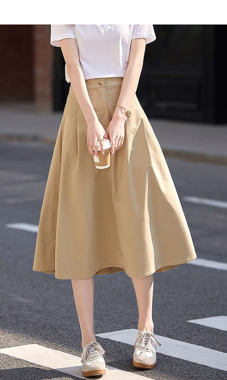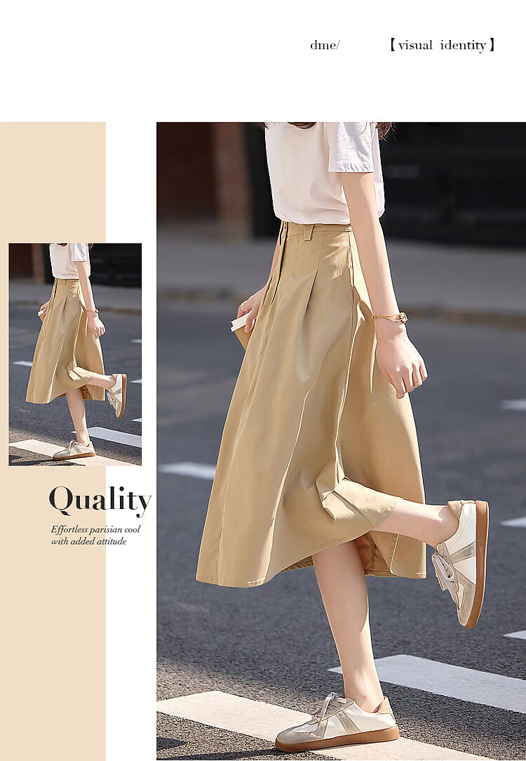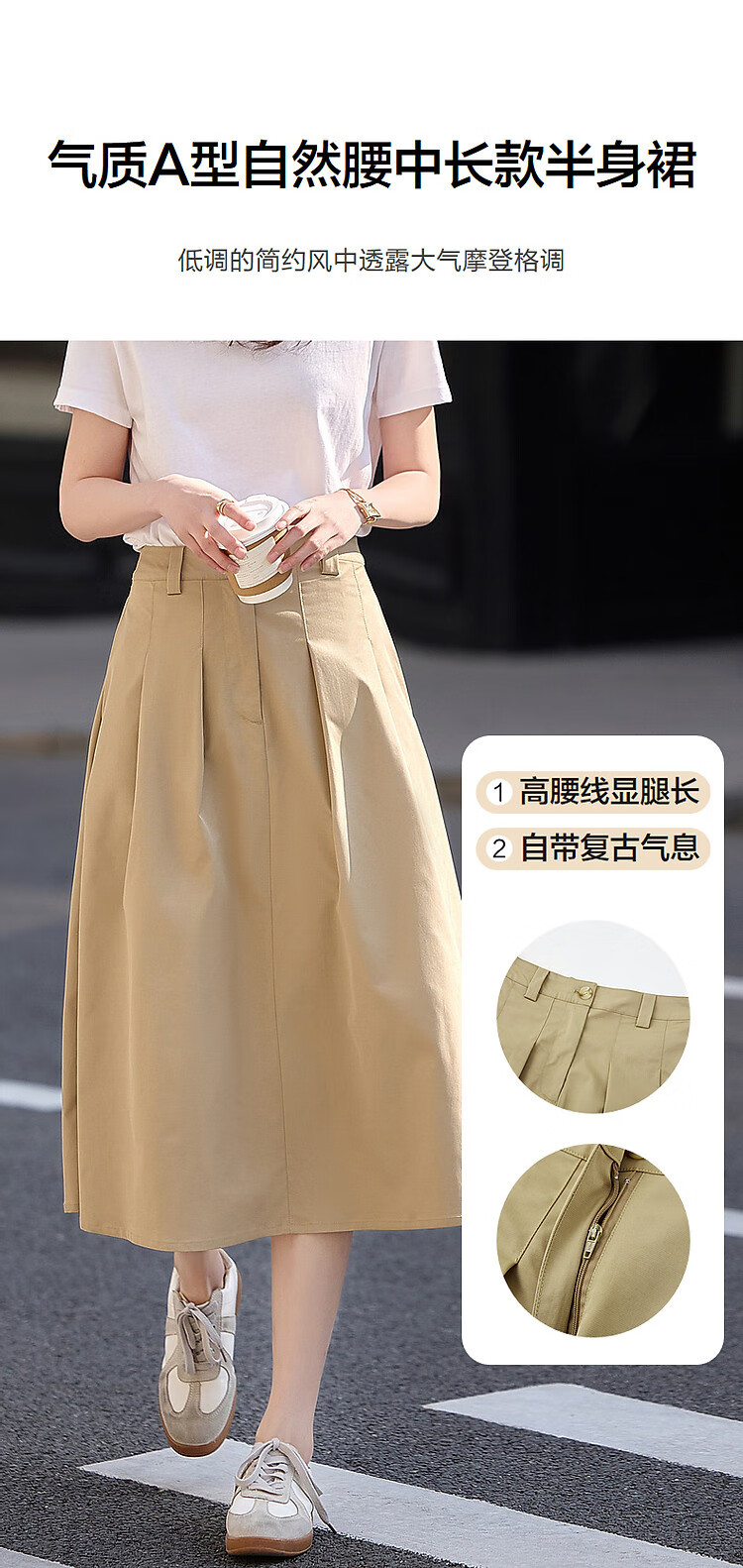 德玛纳【高质美貌赫本风】春秋季通勤中腰a字女裙气质半身裙女中长款