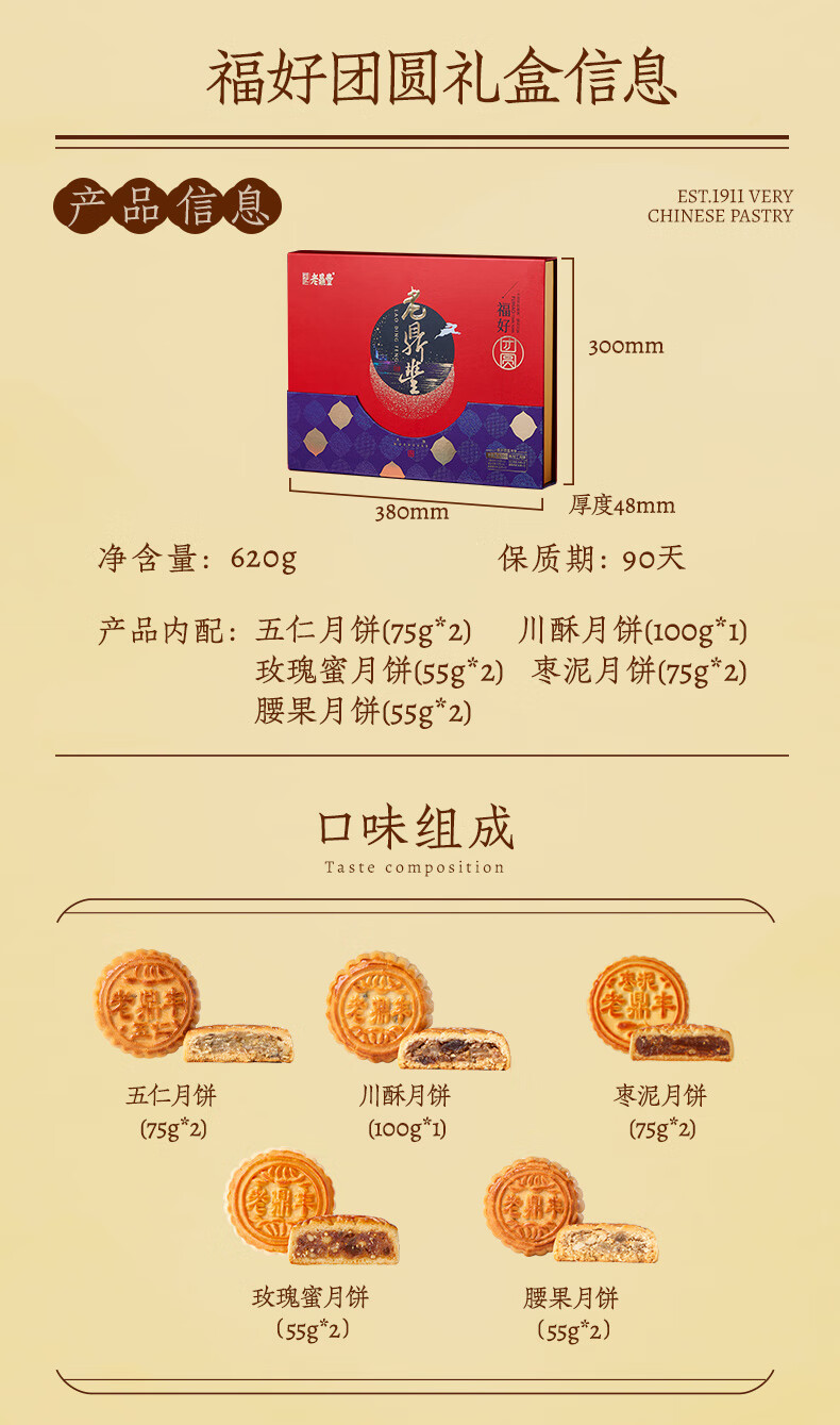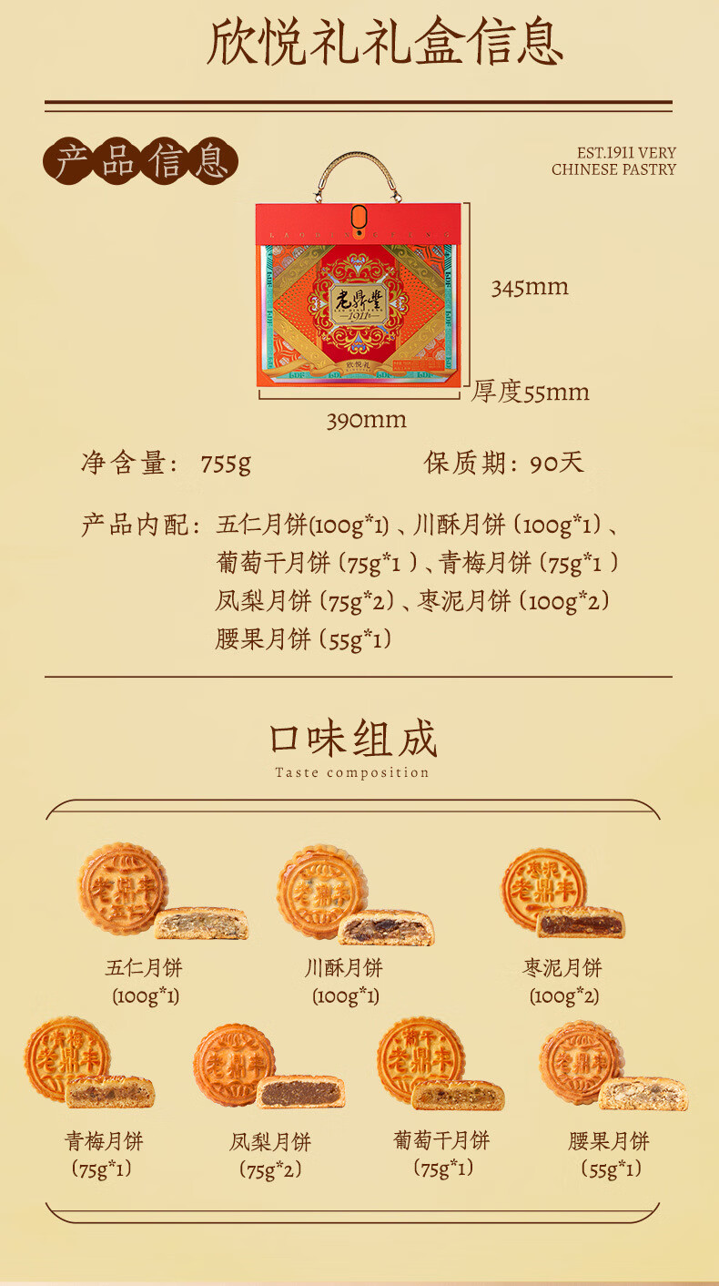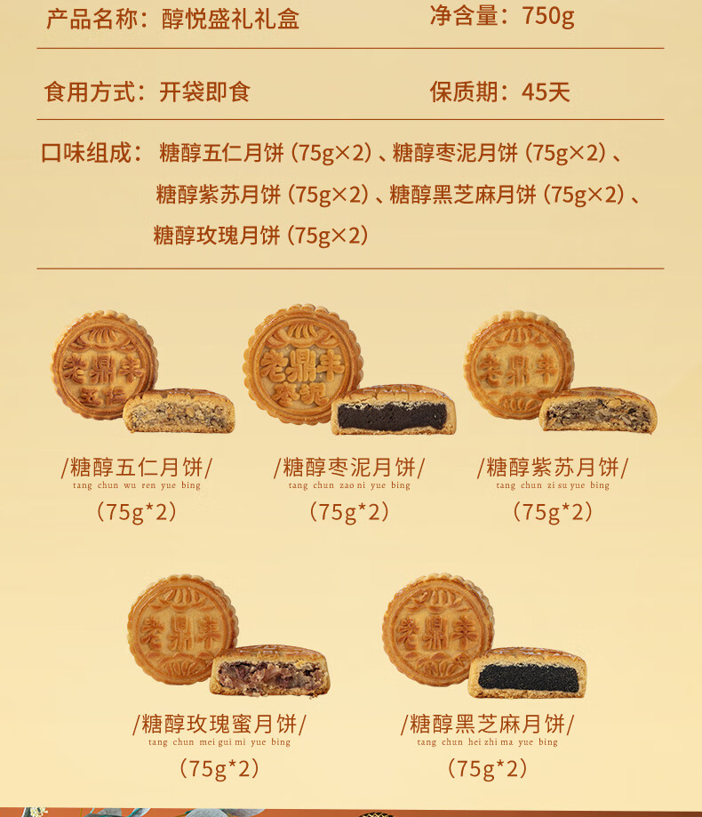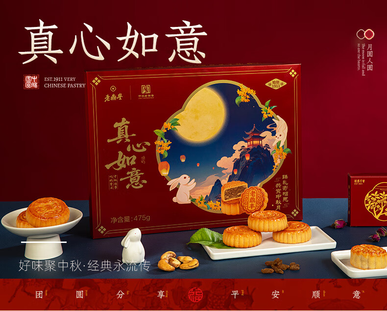 老鼎丰月饼礼盒 中秋月饼大礼包中华老字号糕点中秋礼盒员工福利团购 【皓月千里】(12饼6味)600g