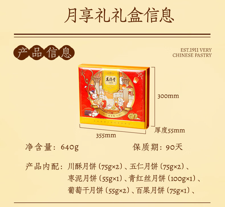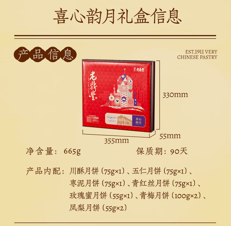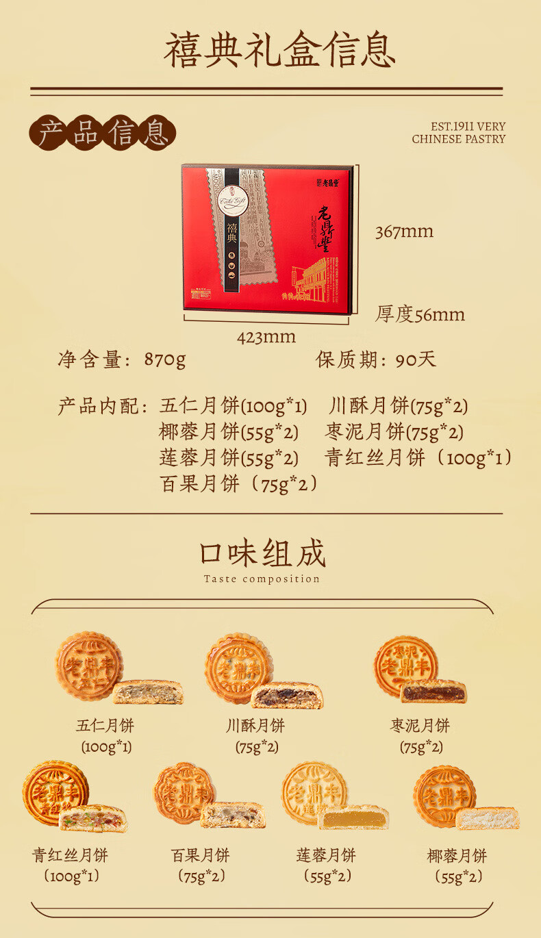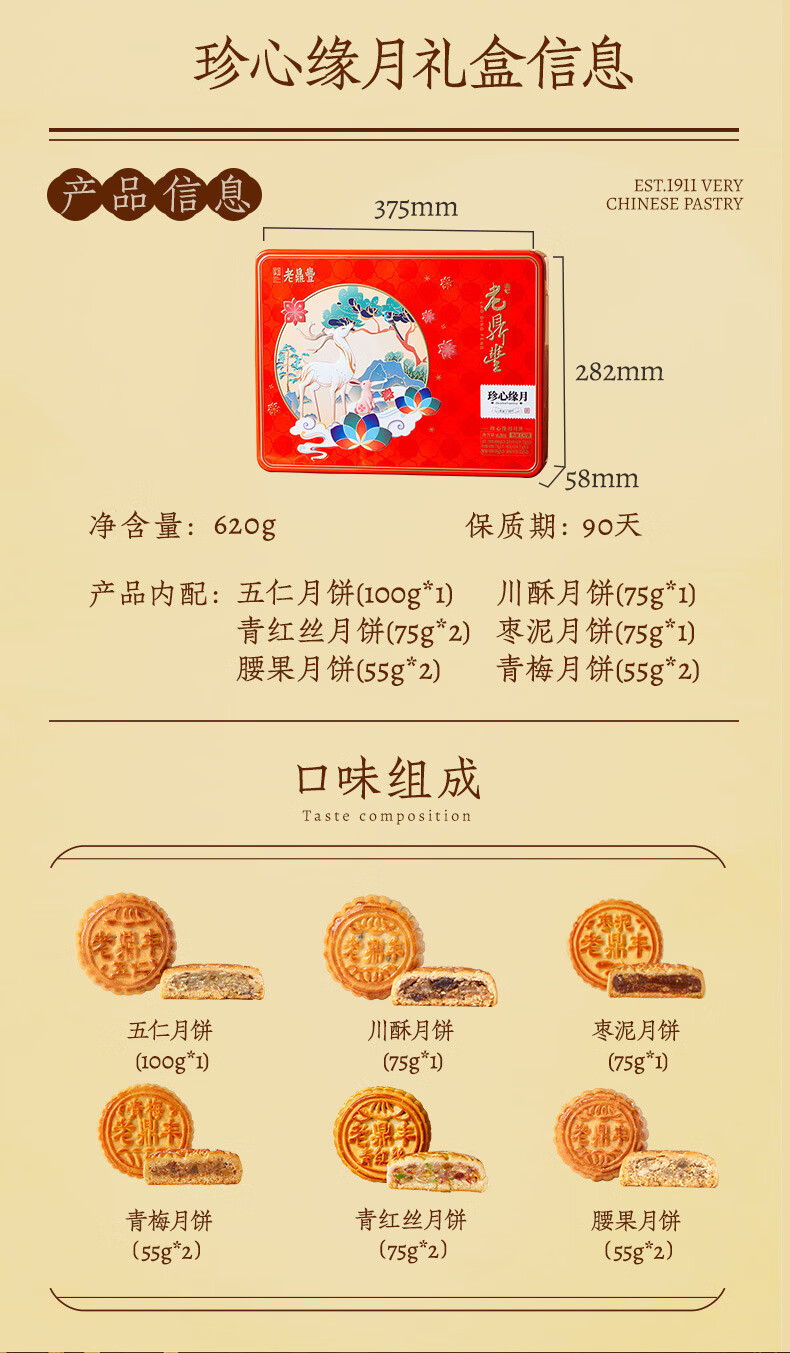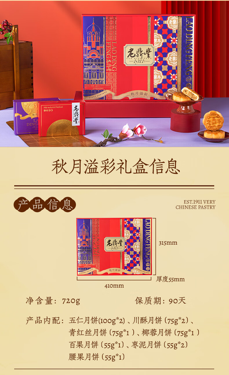 老鼎丰月饼礼盒 中秋月饼大礼包中华老字号糕点中秋礼盒员工福利团购 【皓月千里】(12饼6味)600g