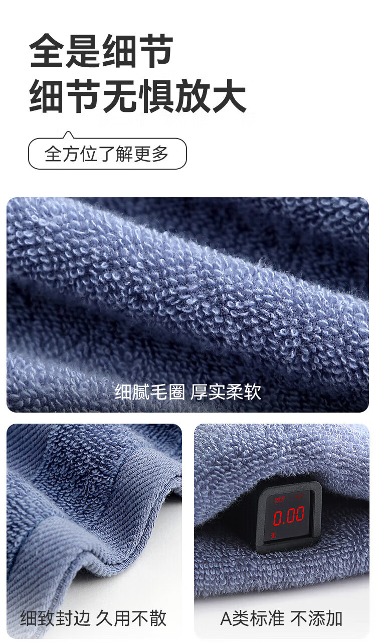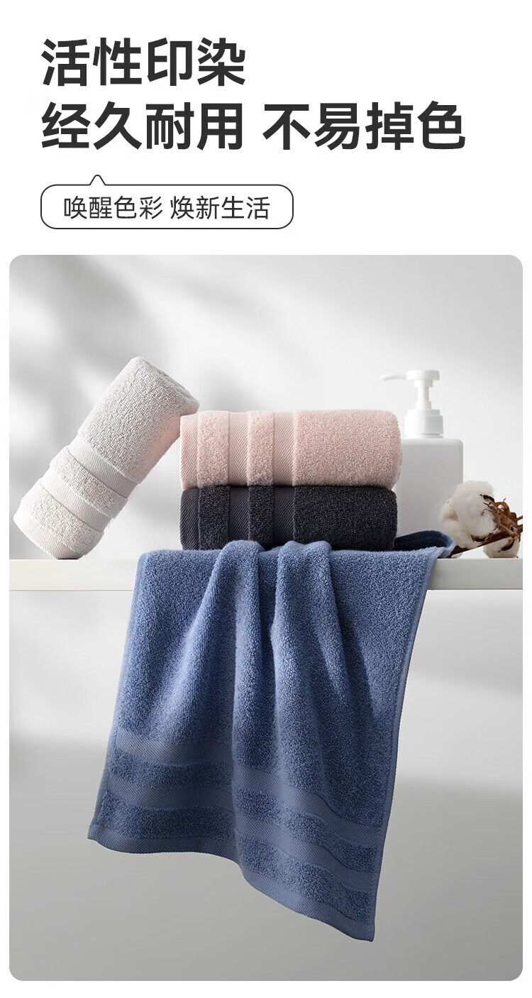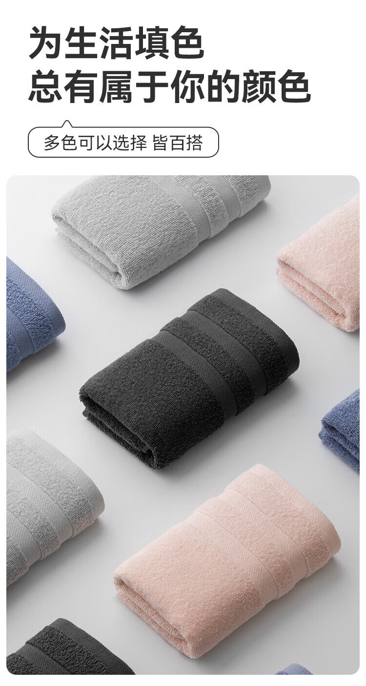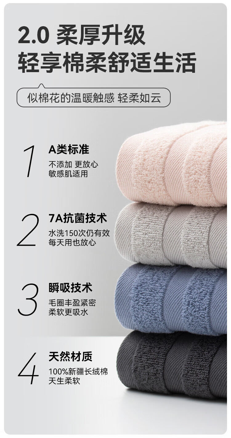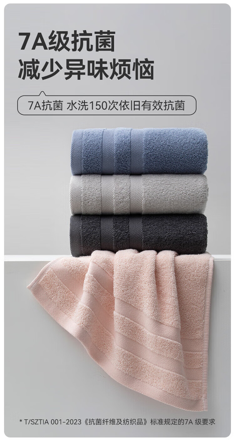 三利毛巾 7A纯棉抗菌毛巾加厚柔软顺滑吸水速干成人男女家用擦脸巾 粉色+浅灰色 2条