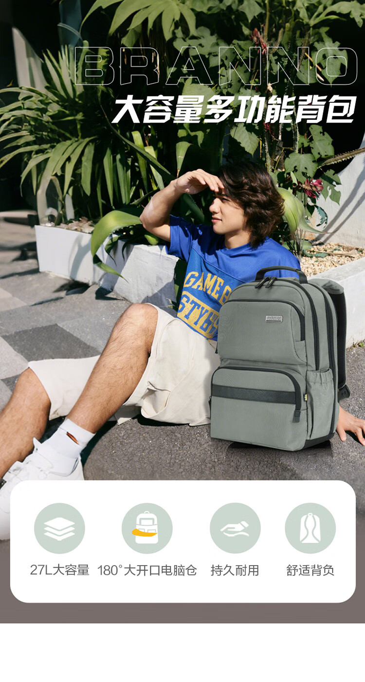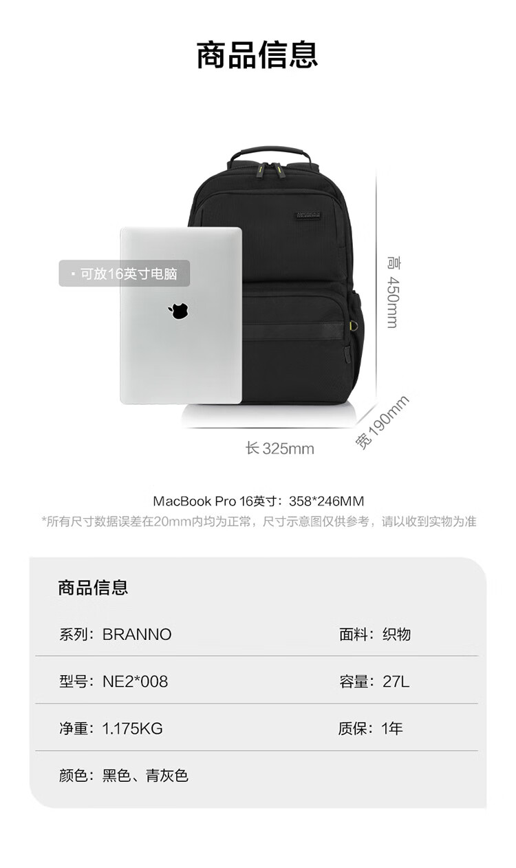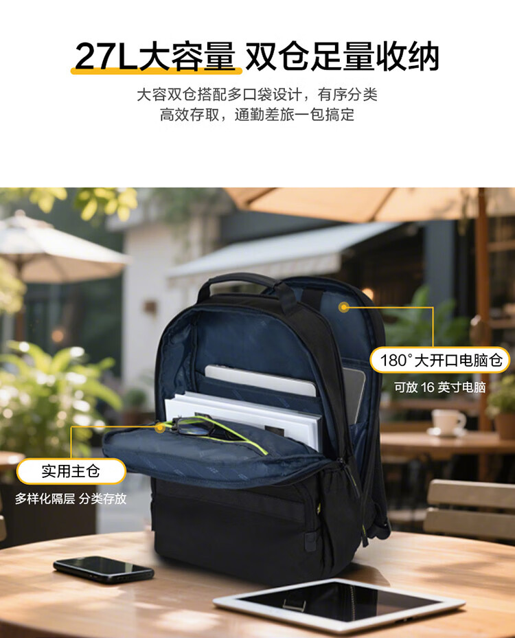 美旅箱包时尚双肩包男女高颜值通勤背包多功能电脑包NE2黑色