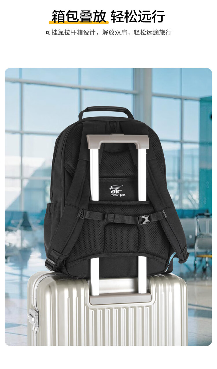 施爱格双肩包男士背包大容量时尚休闲旅行包电脑包初中高中大学生书包女 黑色
