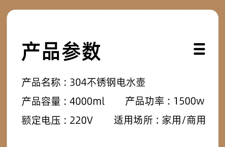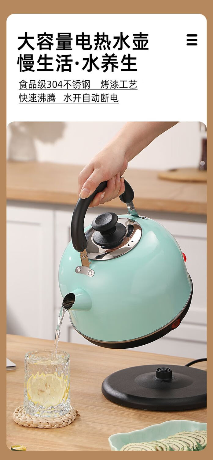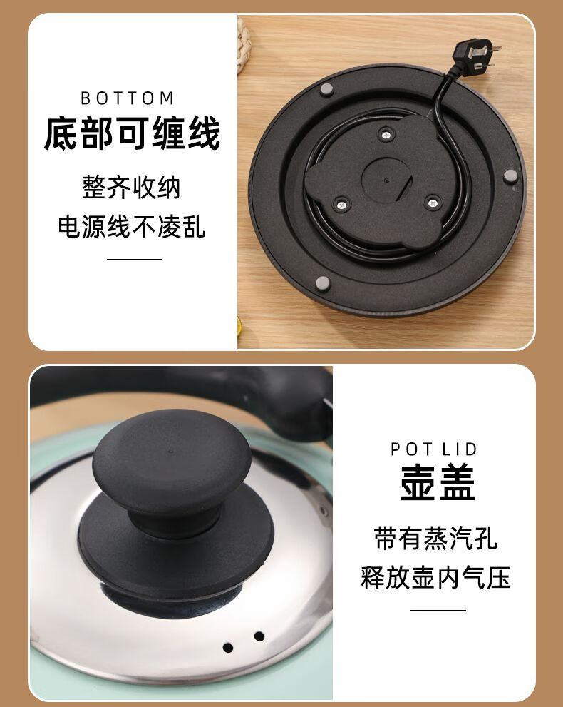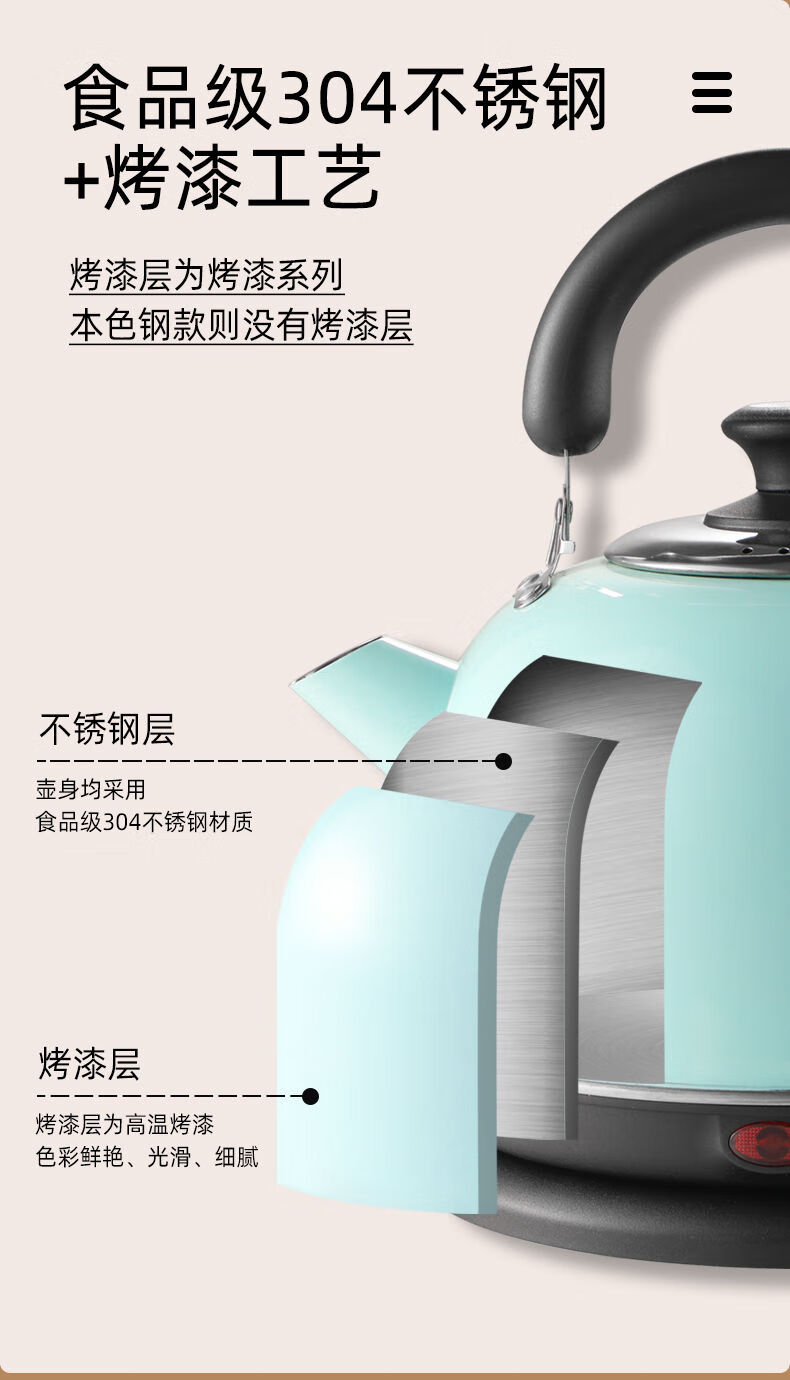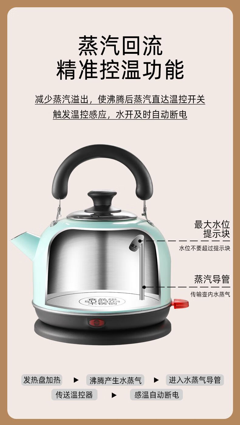 宝丽尊304电热水壶大容量不锈钢水壶家用开水壶自动断电分体式烧水壶 3L 象牙白-分离底座【304内胆】 【品牌保证】材质加厚升级款【国标三芯铜】
