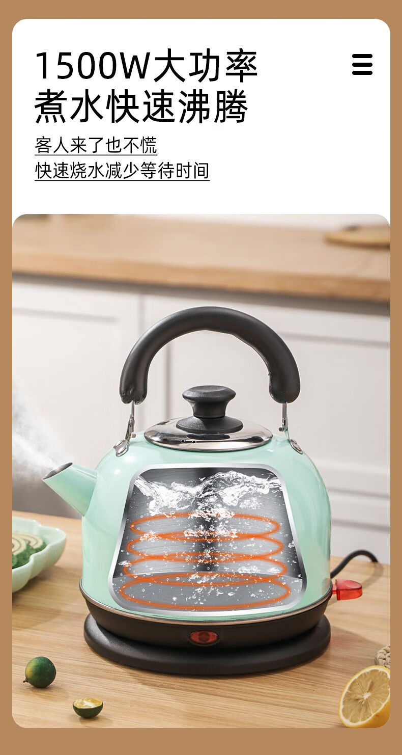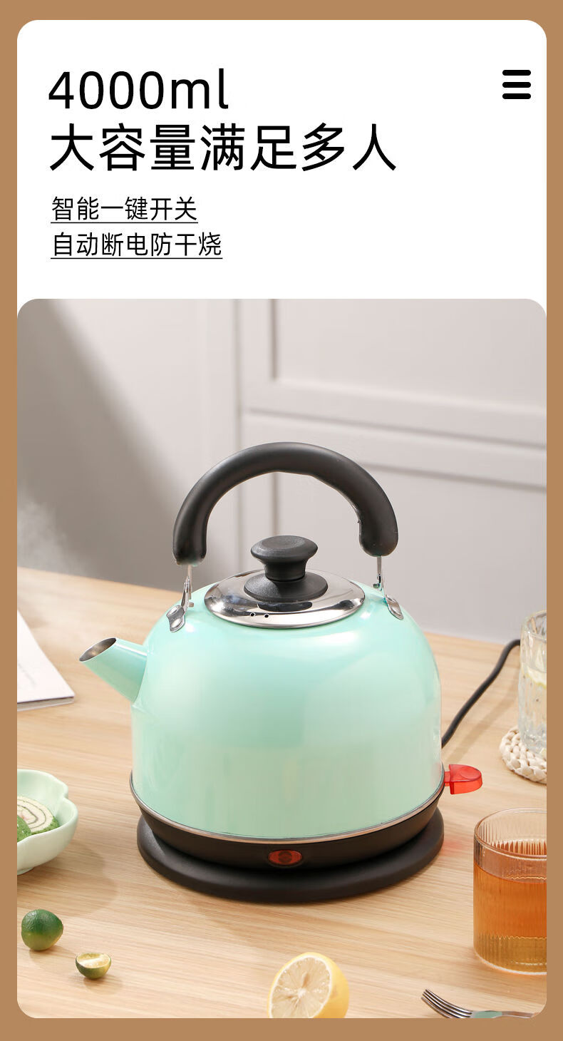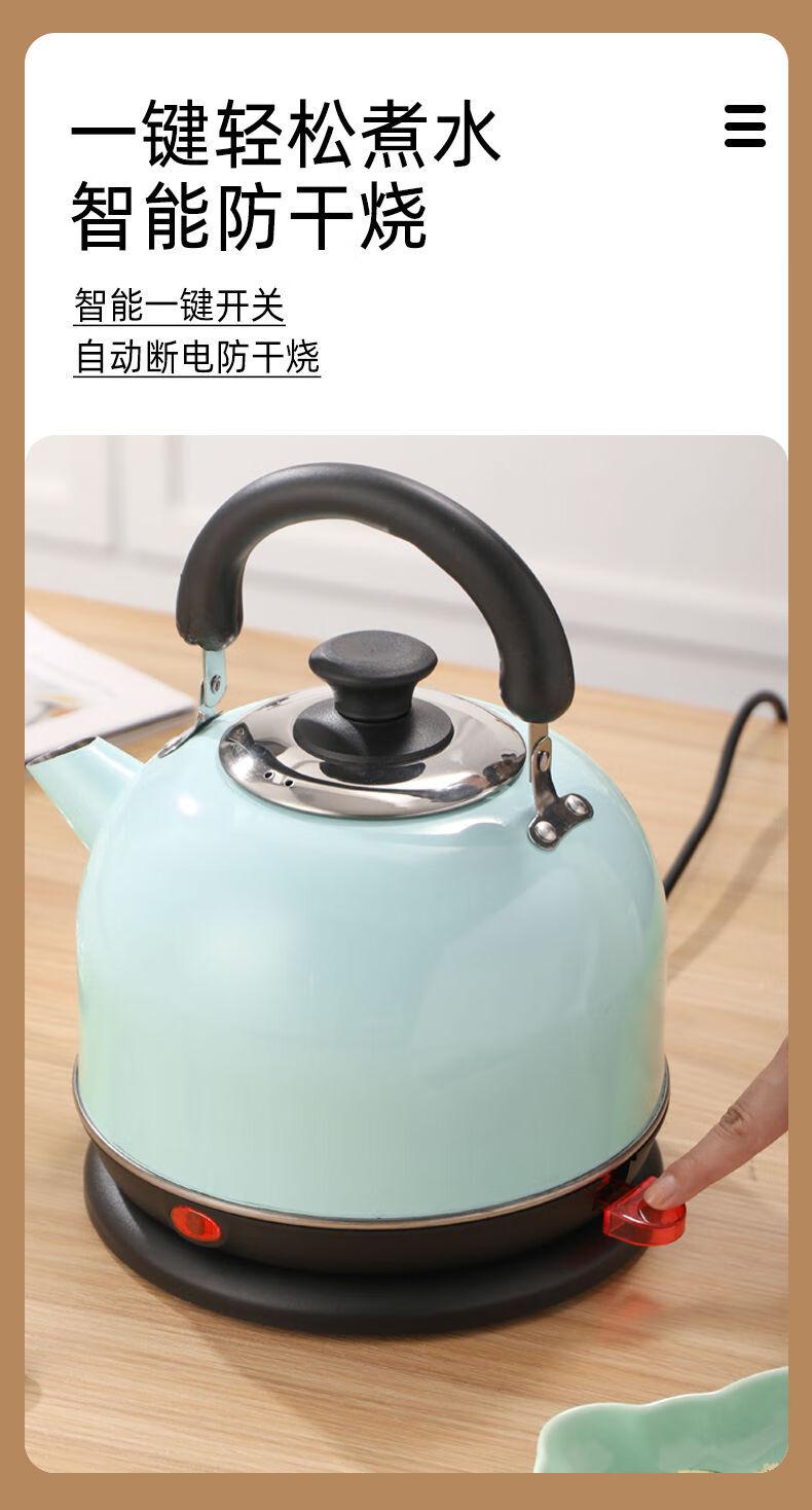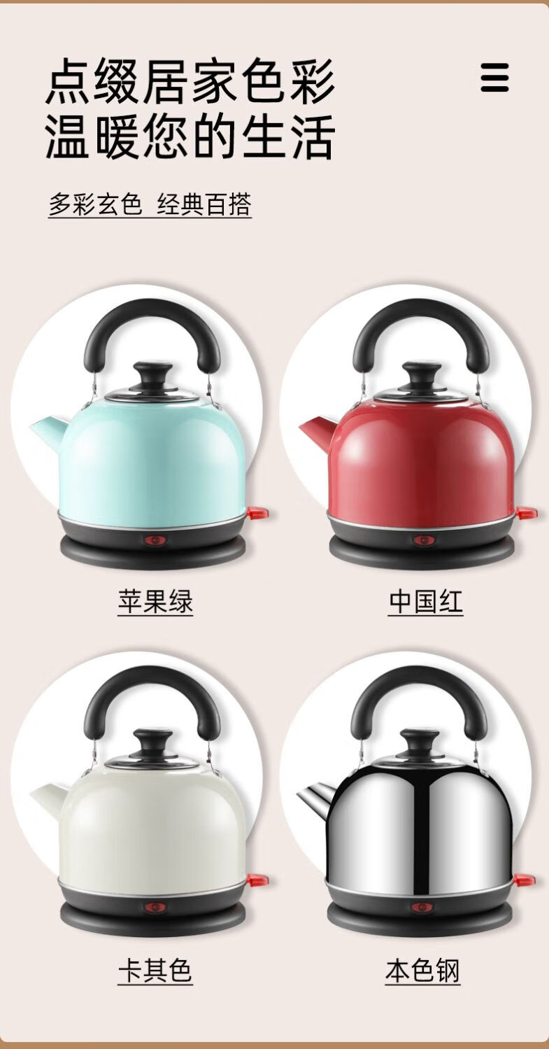 宝丽尊304电热水壶大容量不锈钢水壶家用开水壶自动断电分体式烧水壶 3L 象牙白-分离底座【304内胆】 【品牌保证】材质加厚升级款【国标三芯铜】
