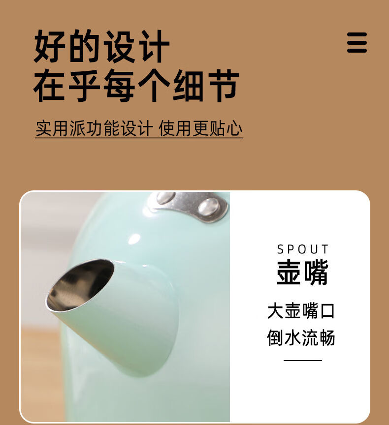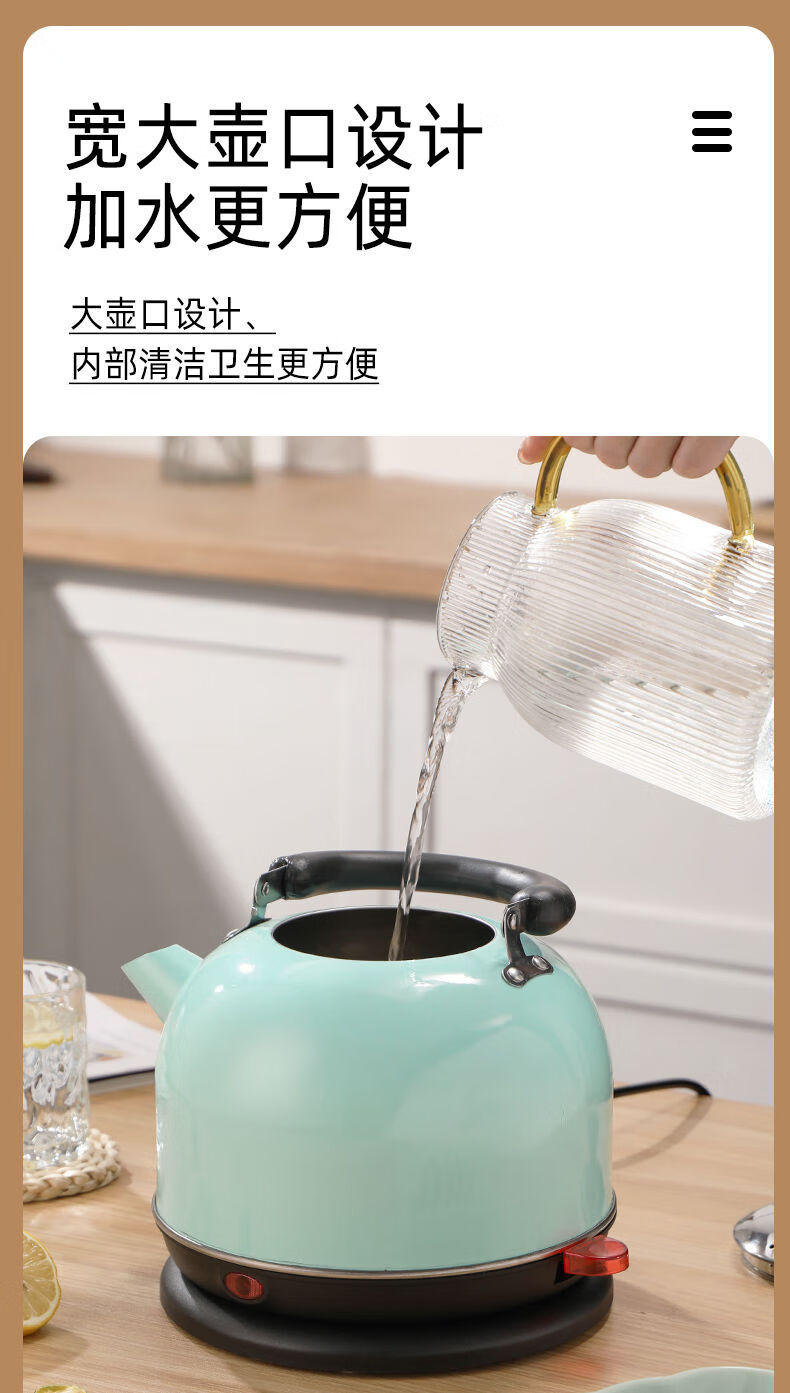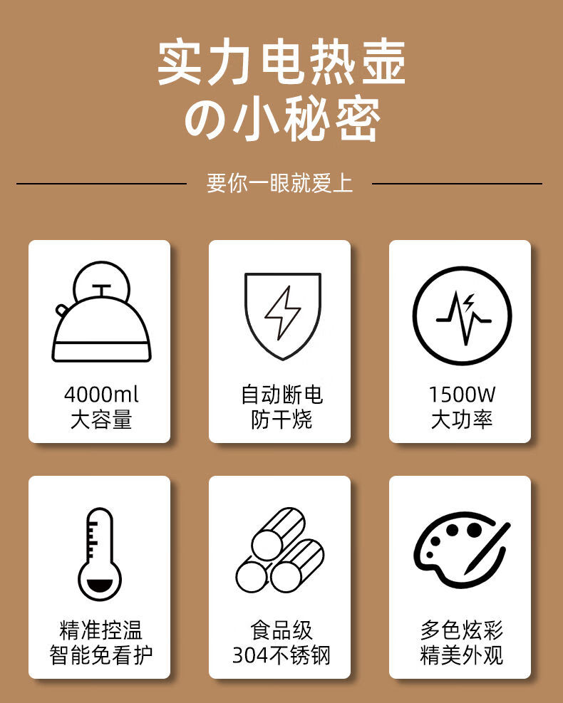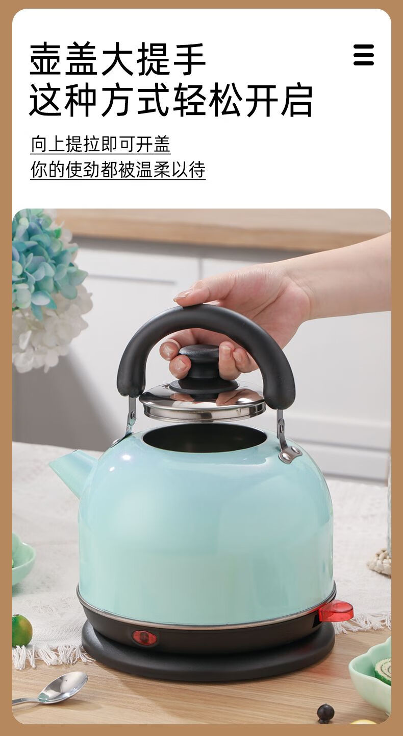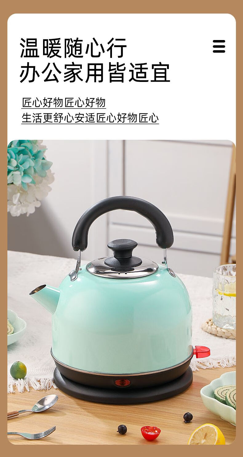 宝丽尊304电热水壶大容量不锈钢水壶家用开水壶自动断电分体式烧水壶 3L 象牙白-分离底座【304内胆】 【品牌保证】材质加厚升级款【国标三芯铜】