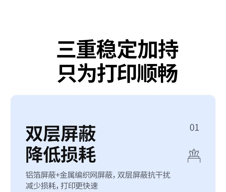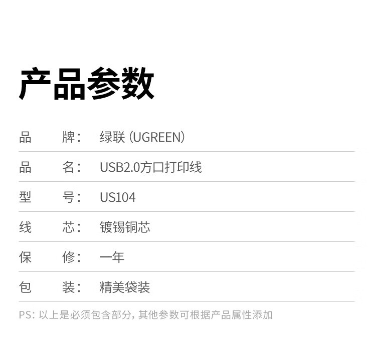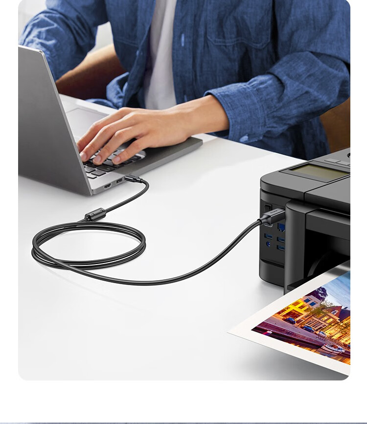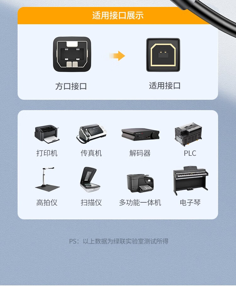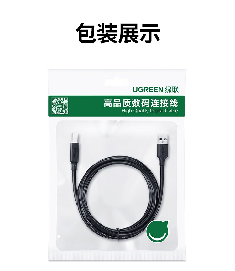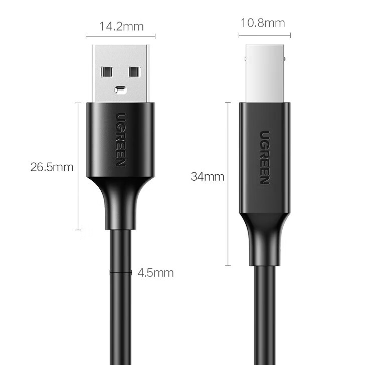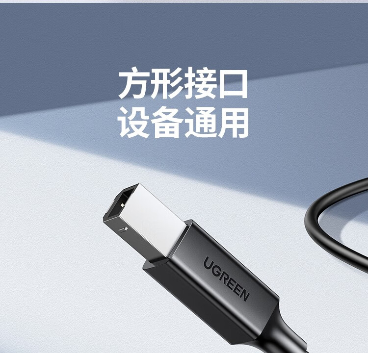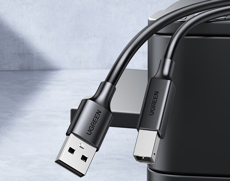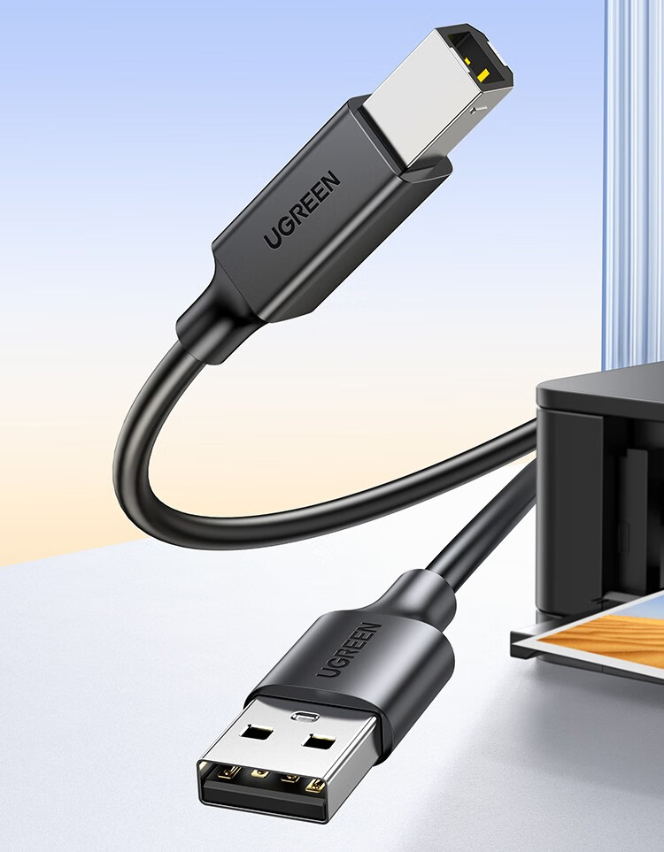 绿联【精选】 USB打印机线 A公对B公USB2.0方口接头高速打印电脑连接 0.5米 黑色