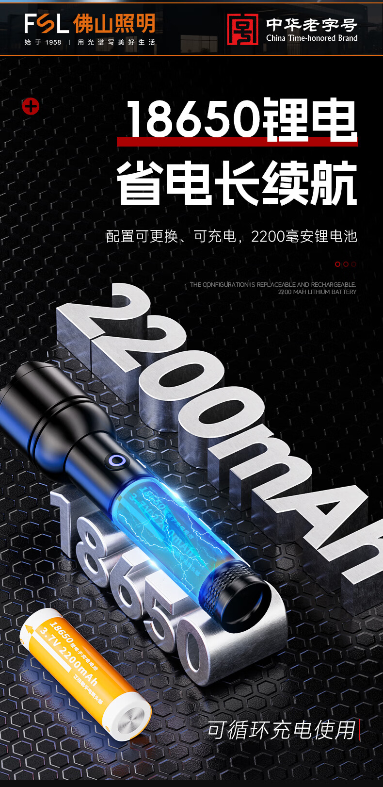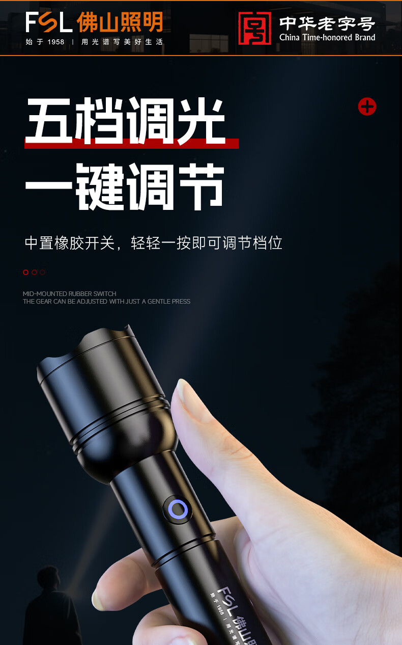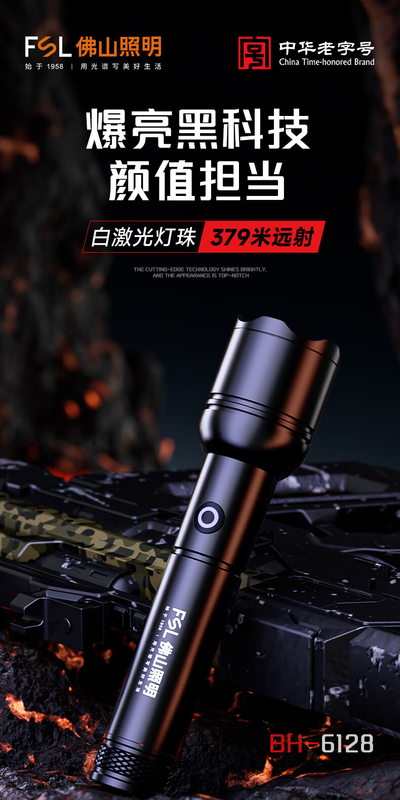 FSL 佛山照明手电筒强光超亮充电长续航变焦远射小型巡逻应急led灯 【豪华款】12W白激光-4小时续航