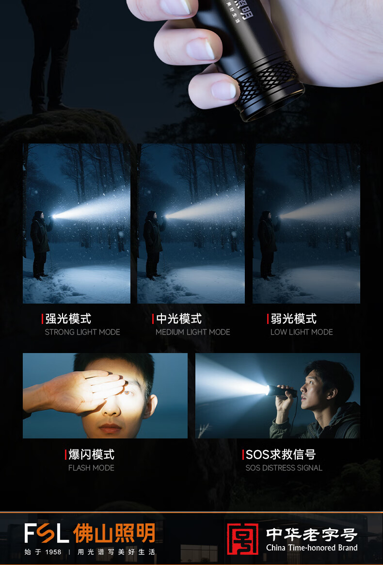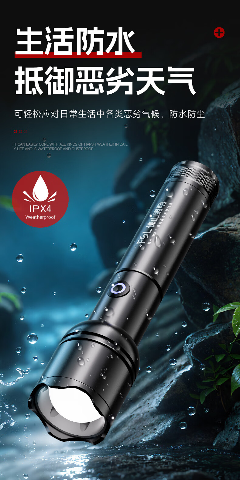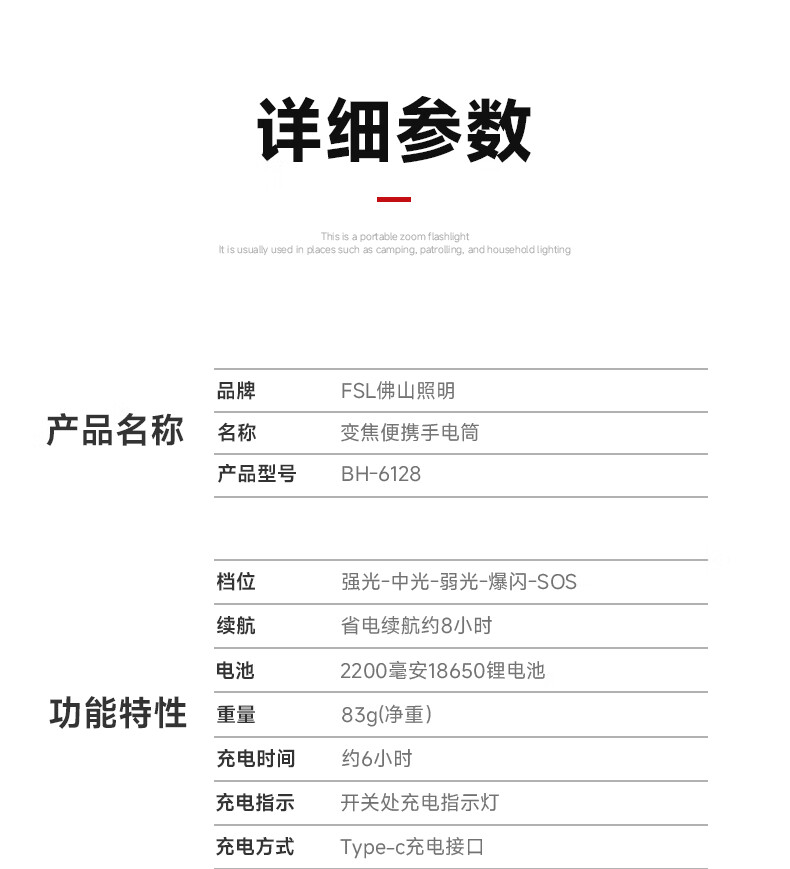 FSL 佛山照明手电筒强光超亮充电长续航变焦远射小型巡逻应急led灯 【豪华款】12W白激光-4小时续航