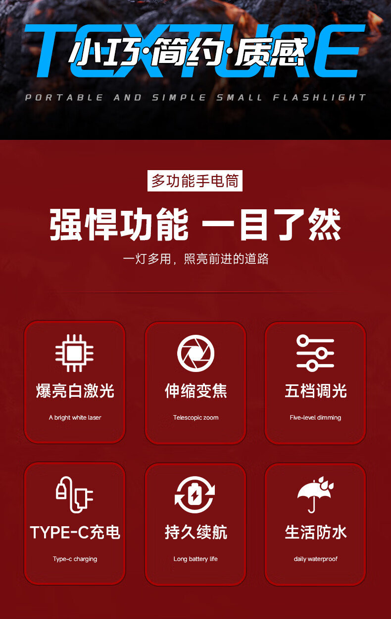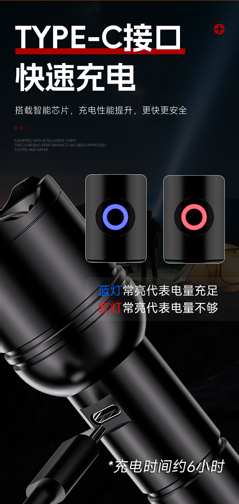 天火手电筒至臻苍龙强光超亮变焦远射超长续航充电军户外野外生存专用 【5000毫安*1】IPX4防水丨配燃火聚焦头