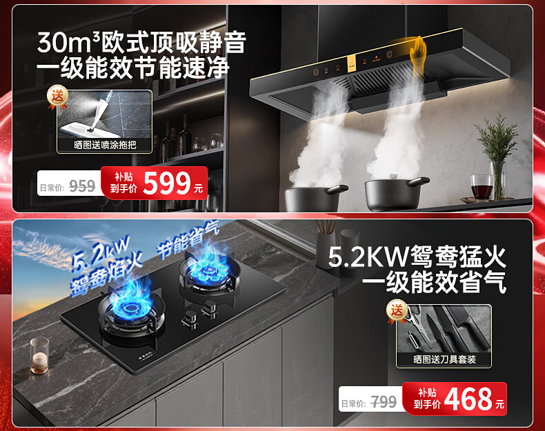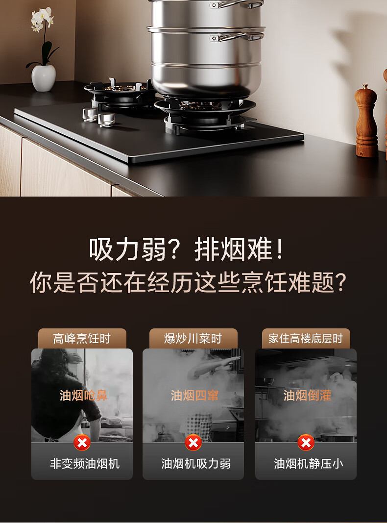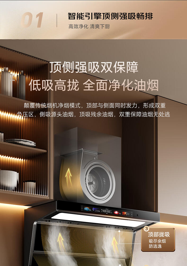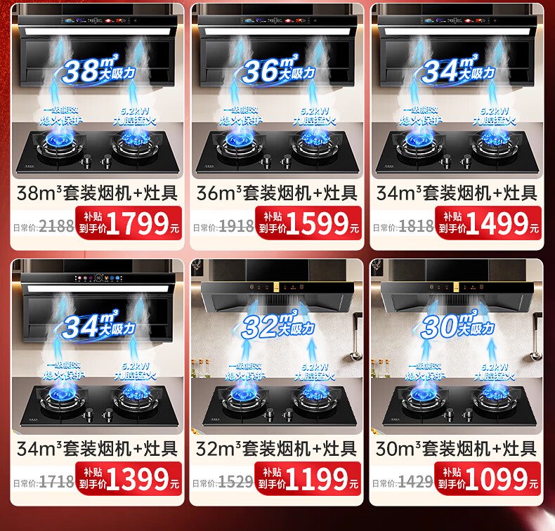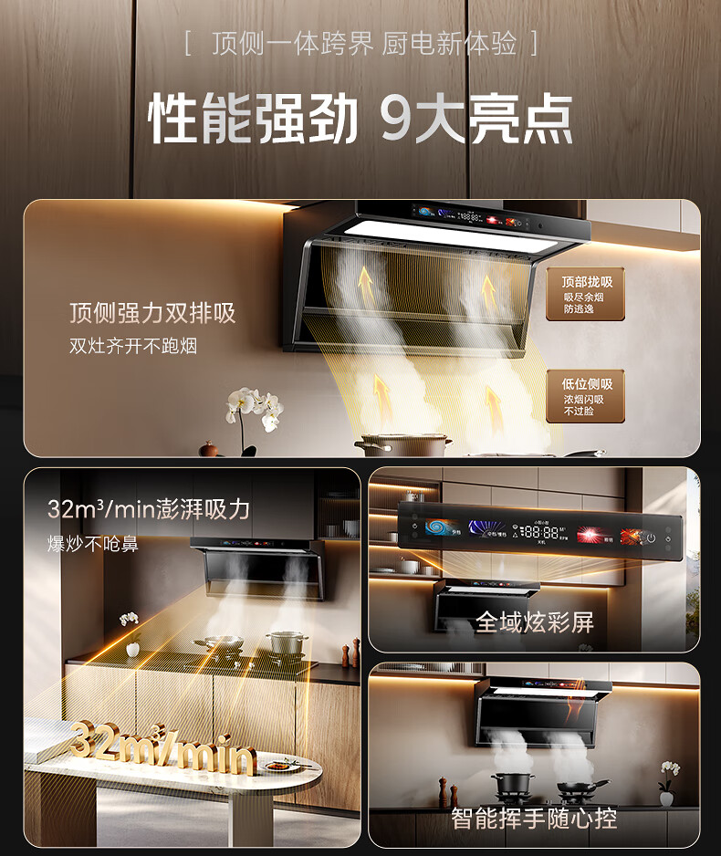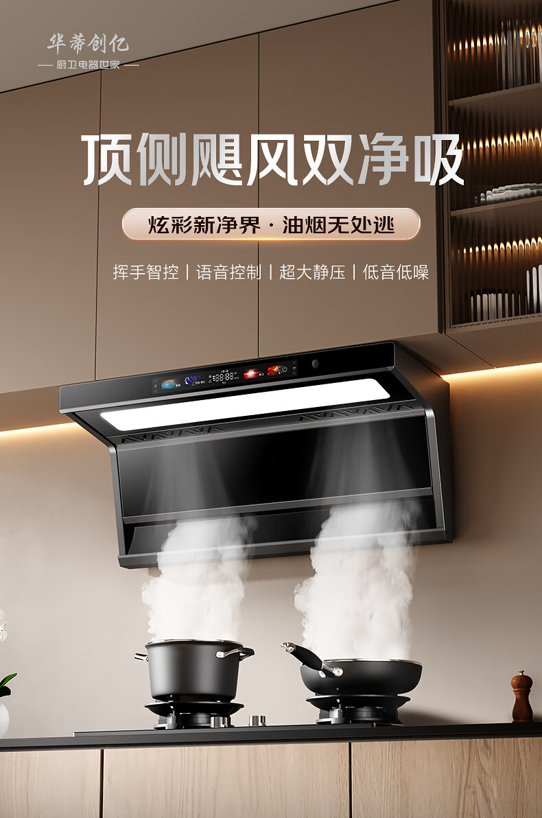 华蒂创亿【免费上门安装】抽油烟机灶具套装家用大吸力静音一级能效吸油烟机顶侧双吸自清洁燃气灶烟机套装 【天然气套装30m³】90六键大灯+5.2KW灶具